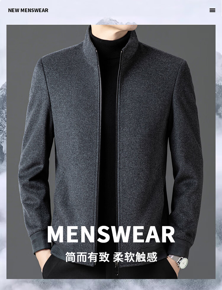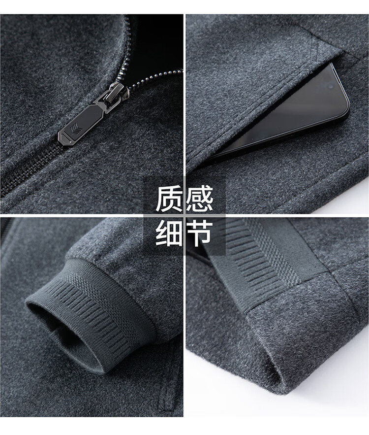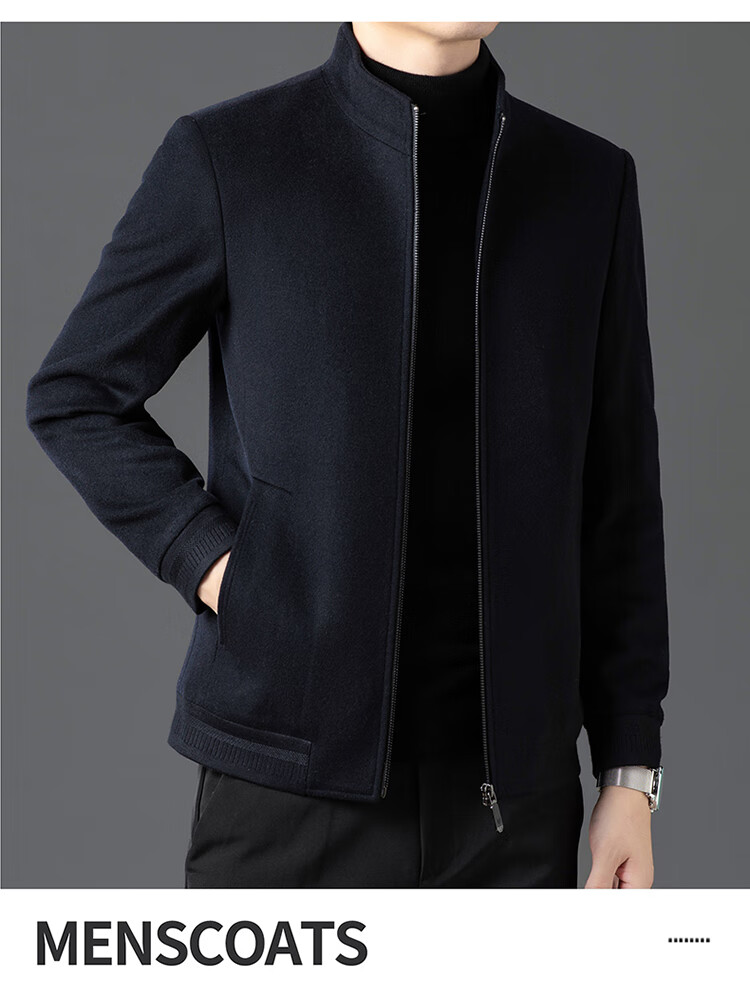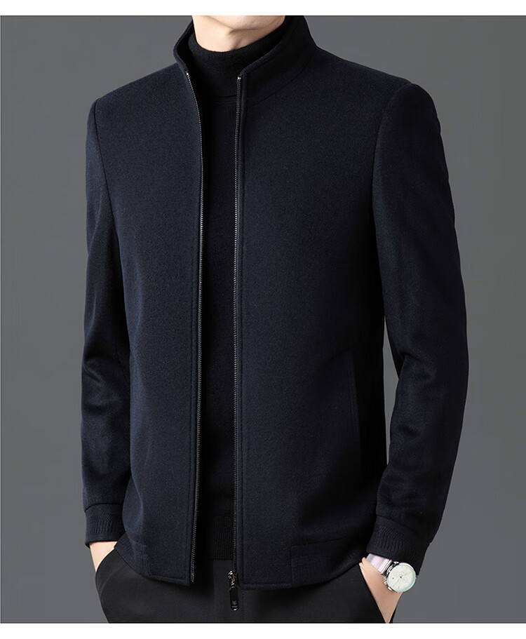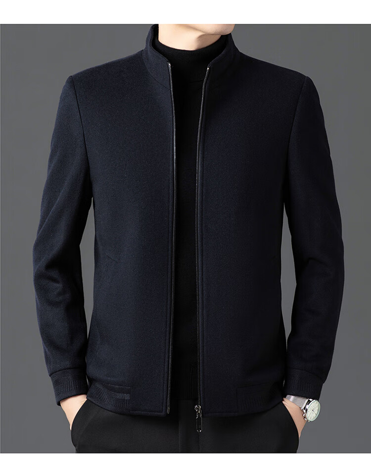 Pierre Cardin high-end woolen jacket men's 2025 autumn and winter new business casual middle-aged stand-collar executive jacket gray high-end quality 3XL 190 165-180Jin Jin equals 0.5 kg