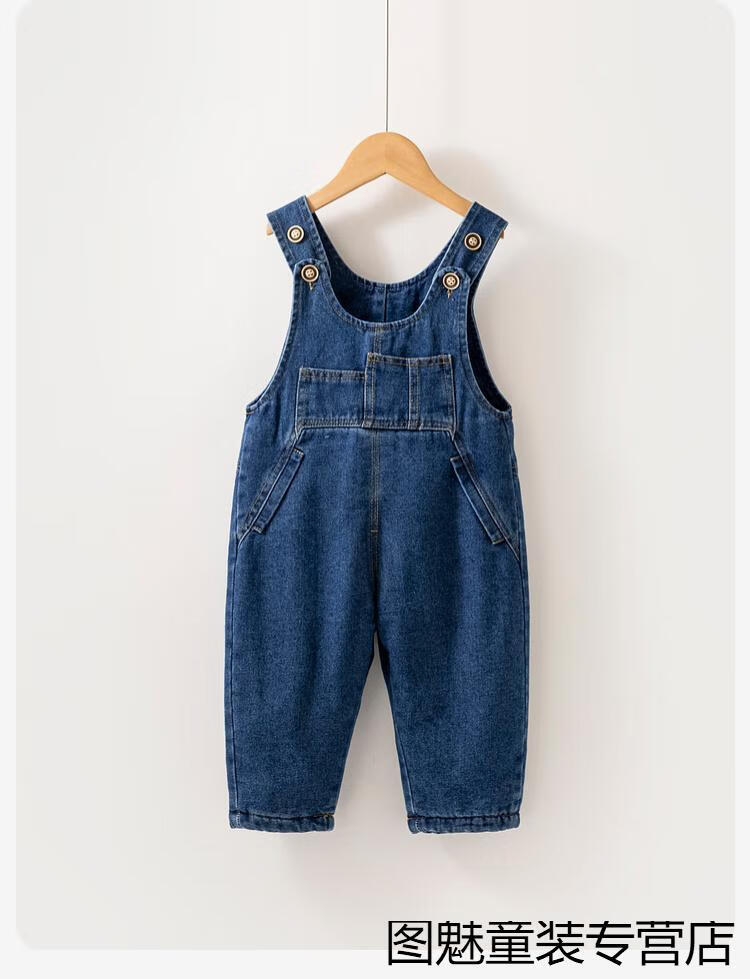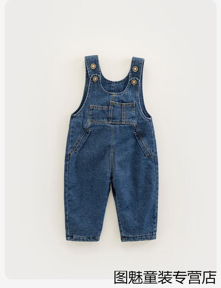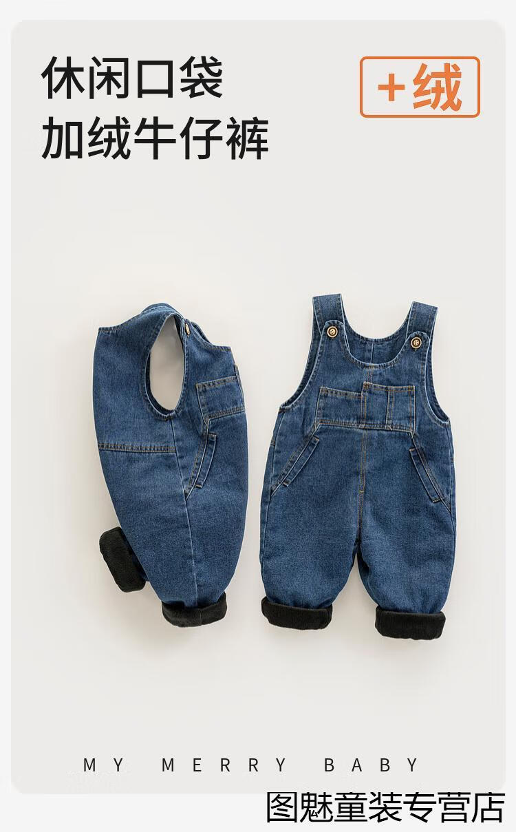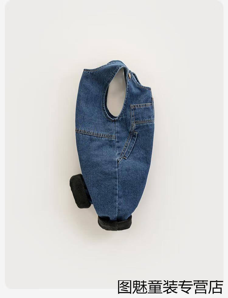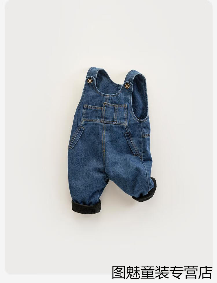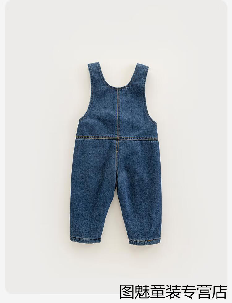 G.DUCKKIDS baby soft denim overalls plus velvet winter overalls for boys and girls thickened velvet outer wear one-piece baby pants blue plus velvet thickening 110 cm