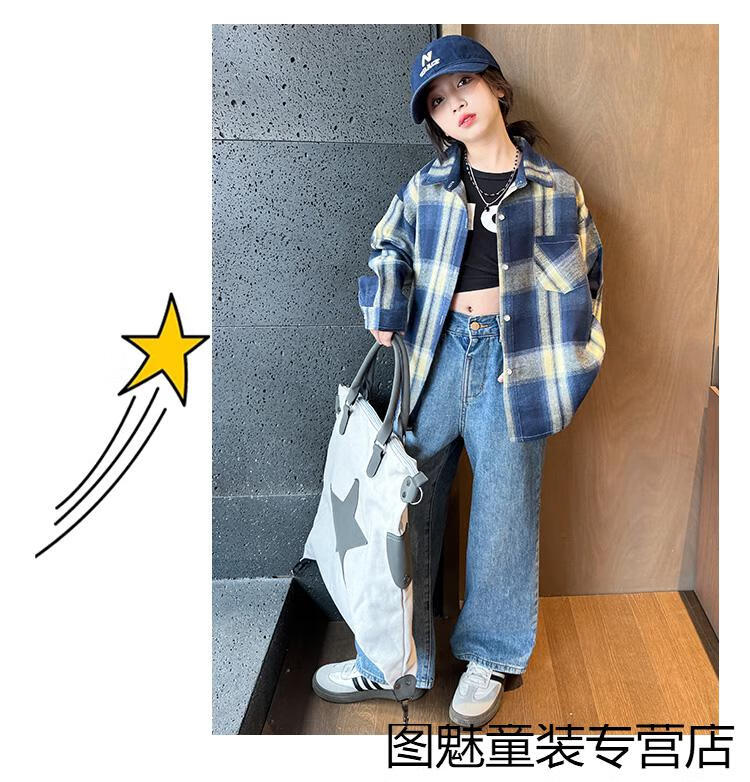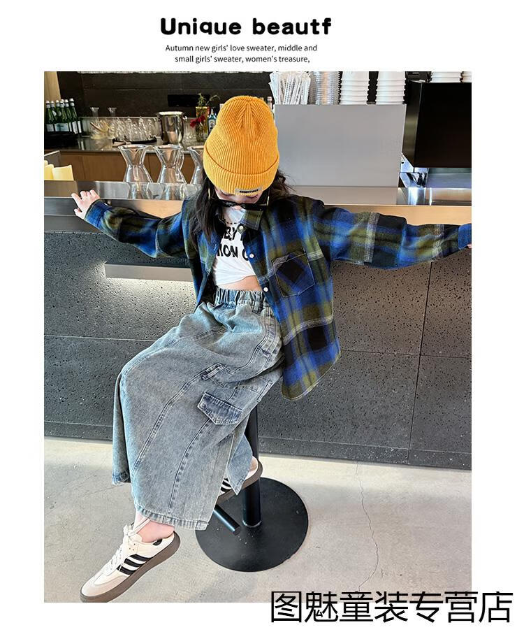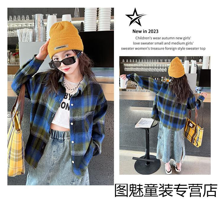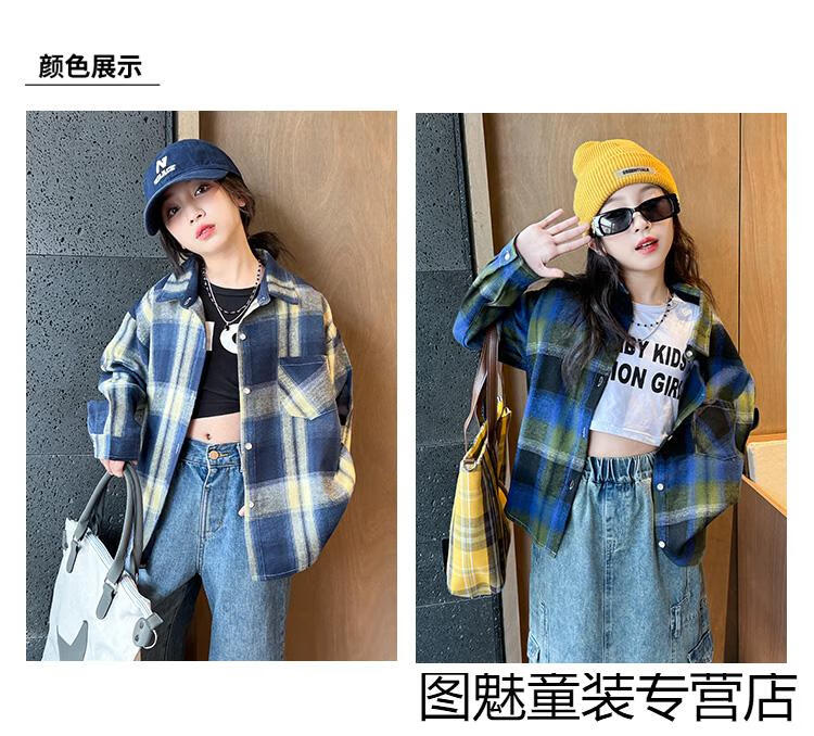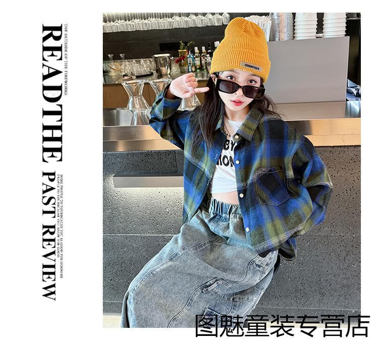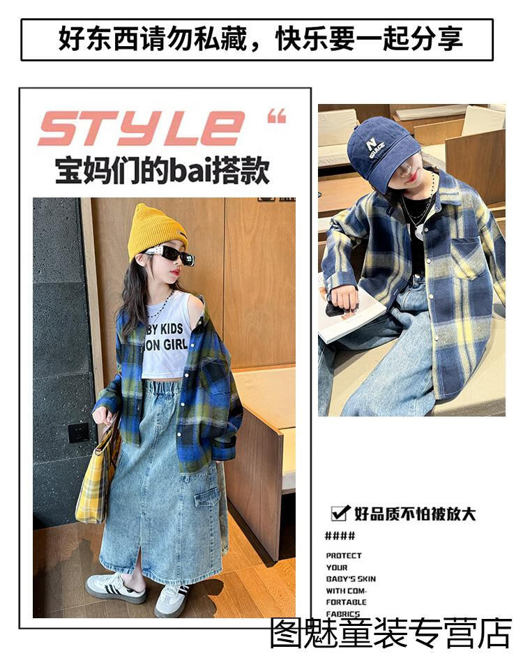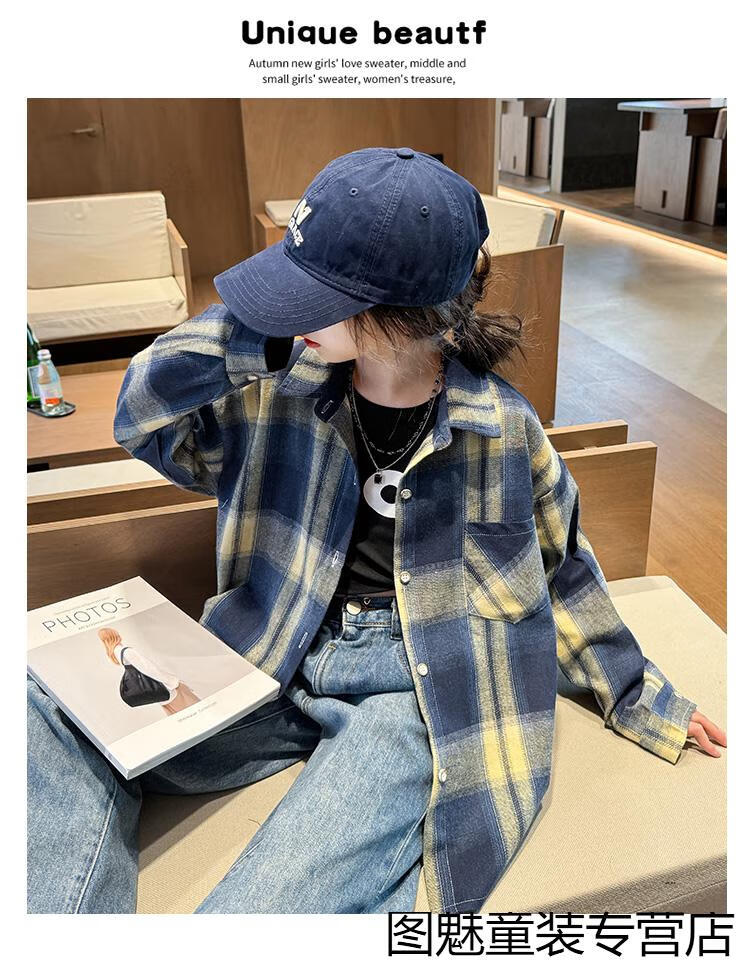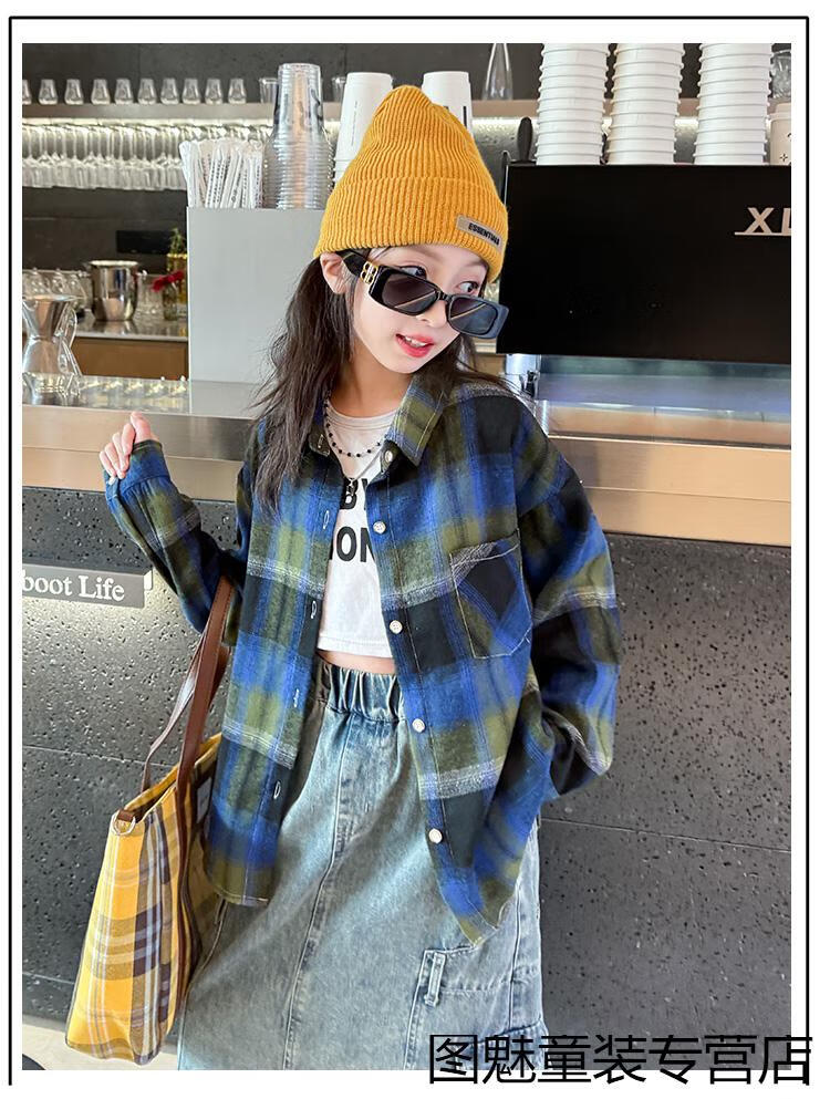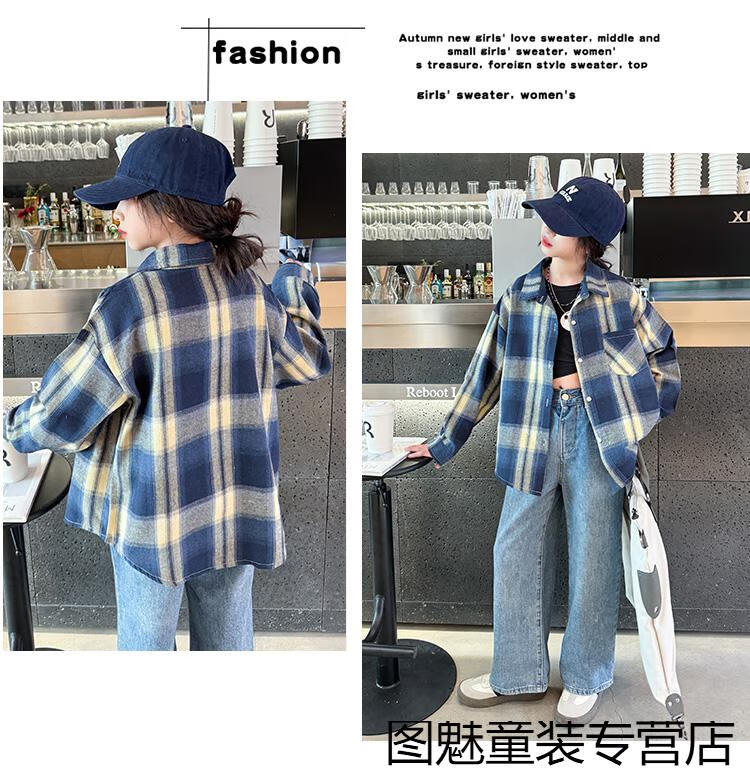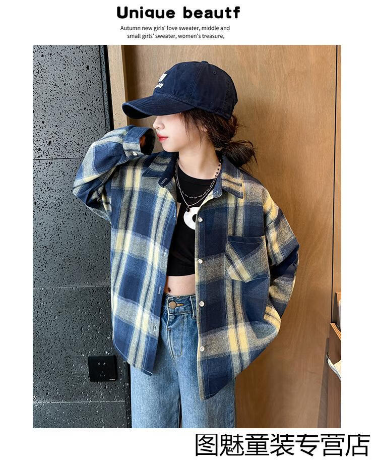 G.duck girls plaid long-sleeved shirt autumn and winter velvet thickening medium and large children's clothing bottoming shirt children's shirt jacket pink 2811 150 cm recommended height 140-150