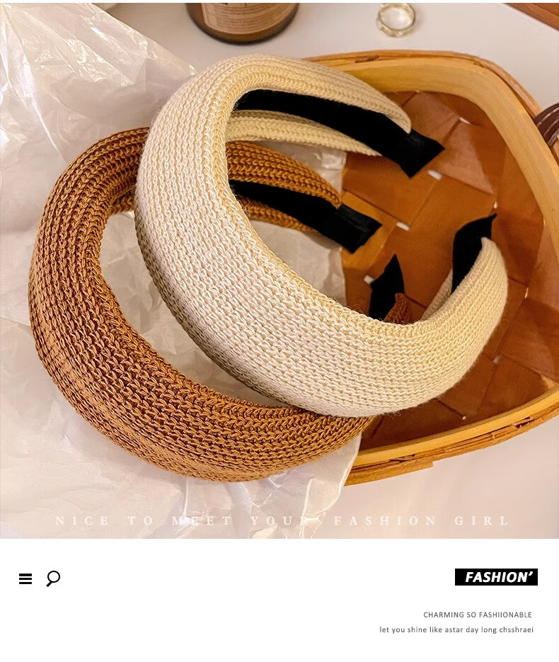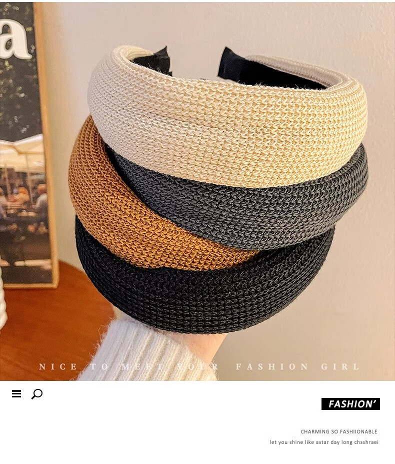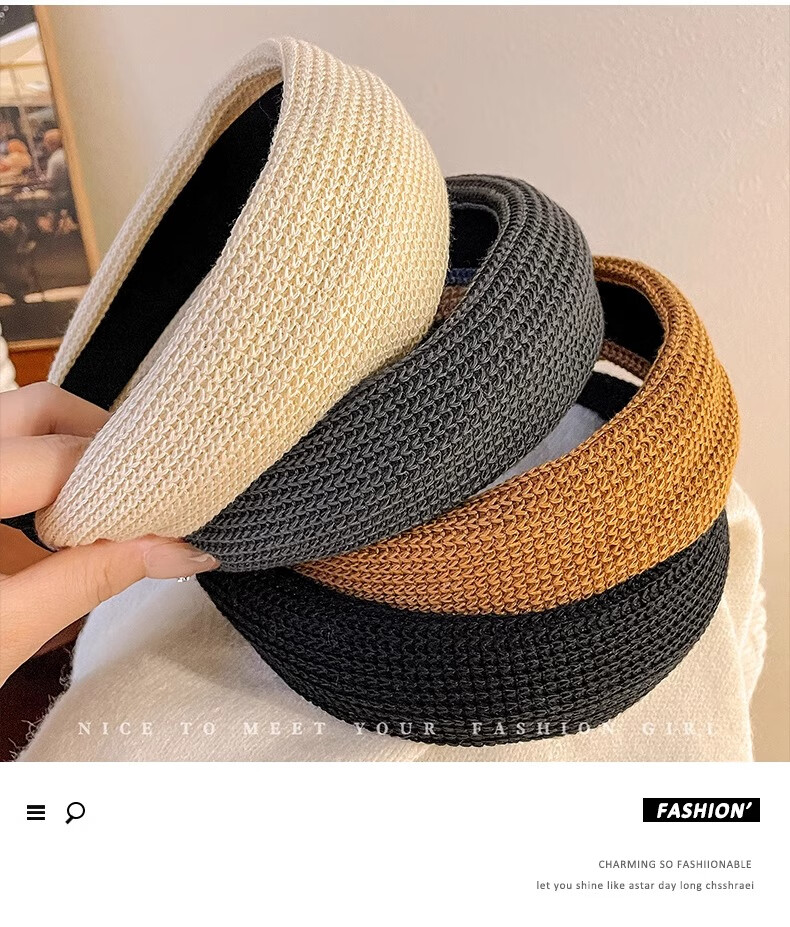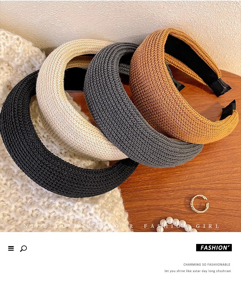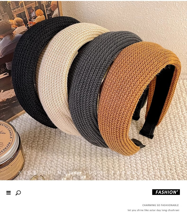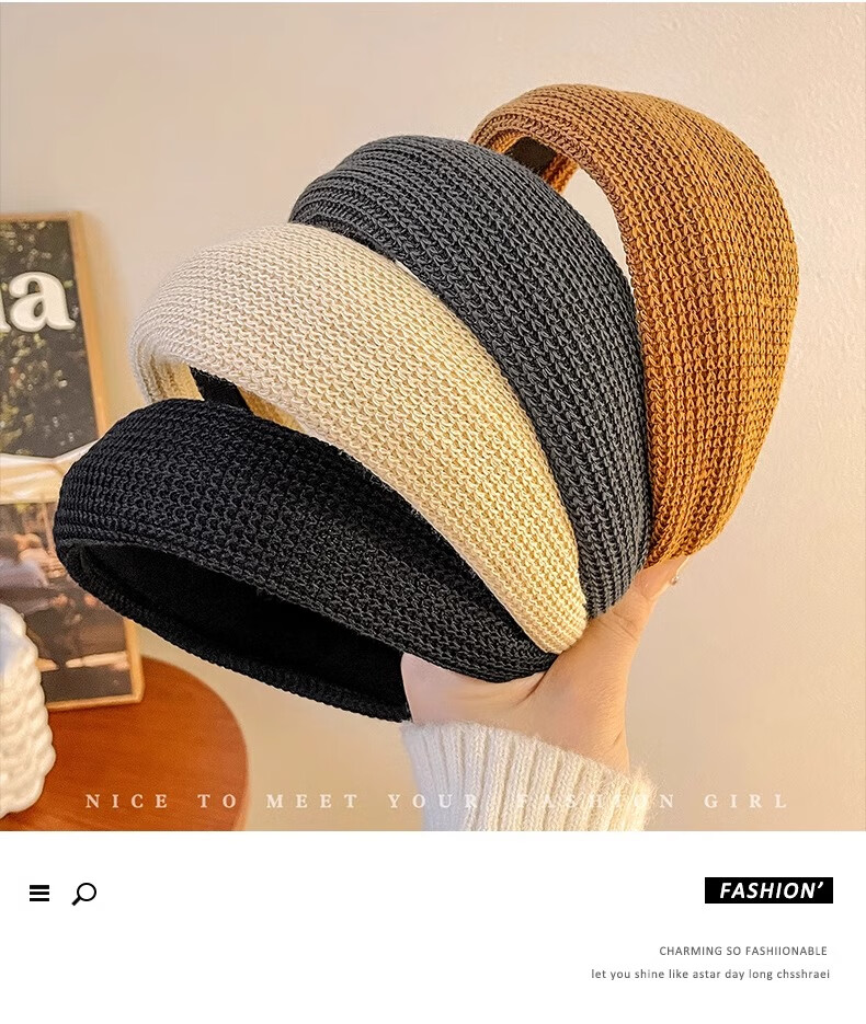 Danqin Zhao Liying's same style solid color knitted wide-brimmed headband for women, retro face wash and hair press headband, versatile hair bundle headband for going out, same style as Zhao Liying's gray