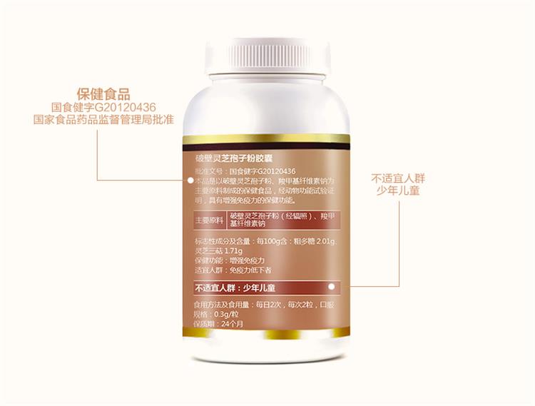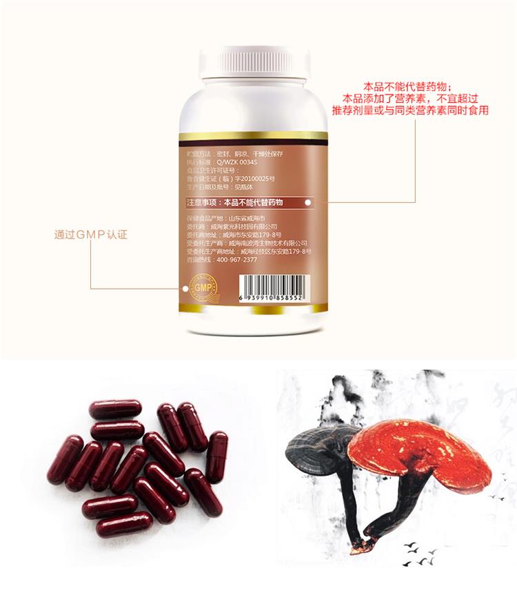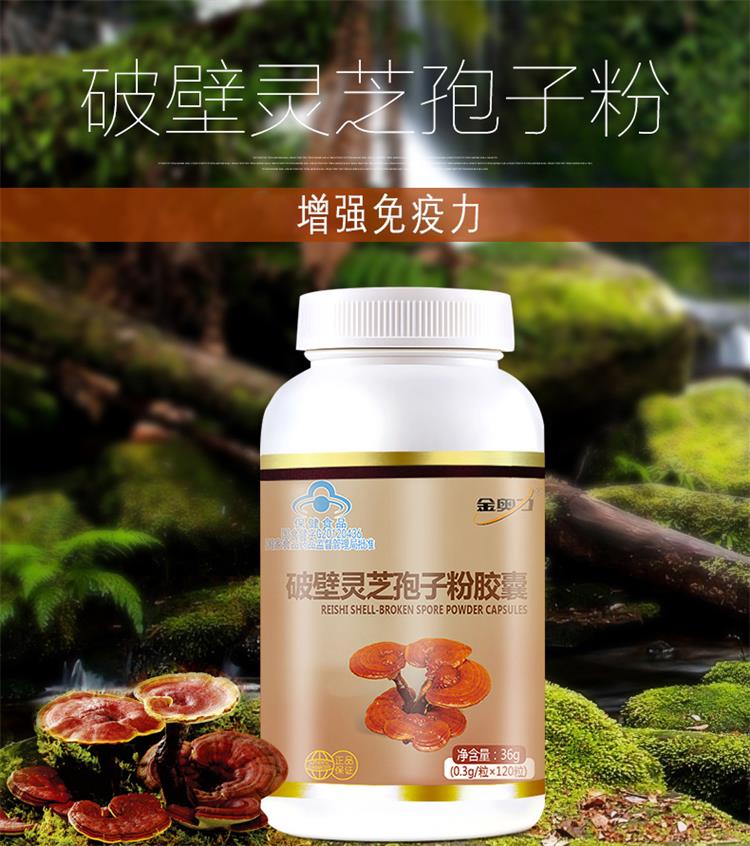 Капсулы с порошком спор ганодермы Weihai Purple Light Broken для людей среднего и пожилого возраста для повышения послеоперационного иммунитета и посещения медицинских товаров для повышения иммунитета у женщин и взрослых. Эссенция спорового масла красной ганодермы. Golden Power Ganoderma Spore Powder 60 капсул x 2 флакона