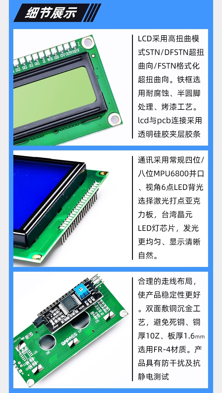 USBDM LCD1602/12864 LCD display with backlight STM32 display smart device LCD screen LCD1602 LCD screen-5V blue screen (pin row soldered)