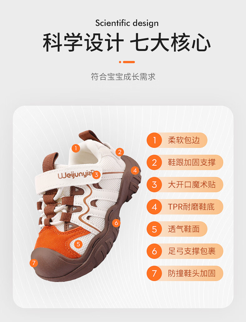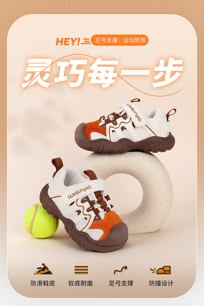Weijun Yizu children's sports shoes, boys' shoes, baby's new spring and autumn casual girls' functional shoes, lightweight running shoes, children's shoes, beige 27 #inner length 16, suitable for feet around 15cm long