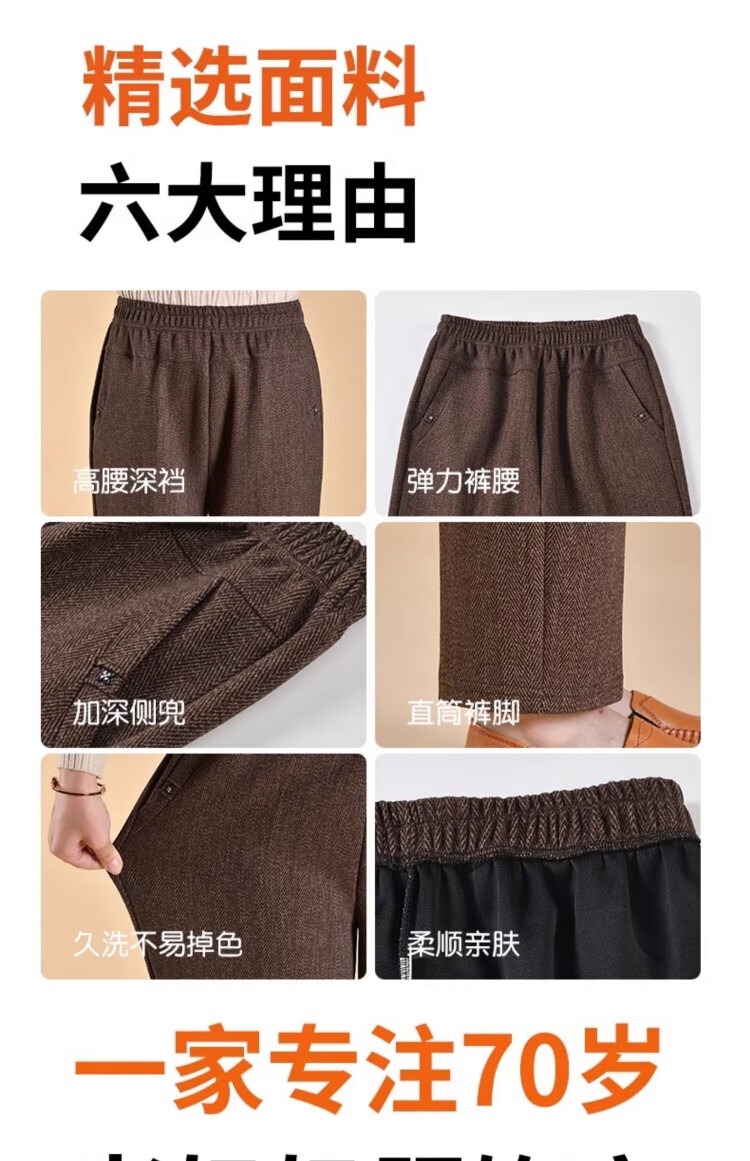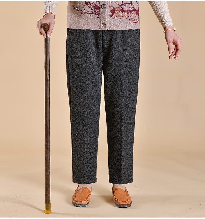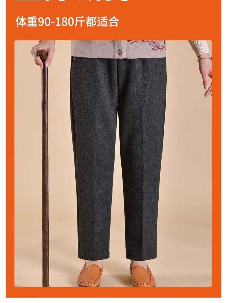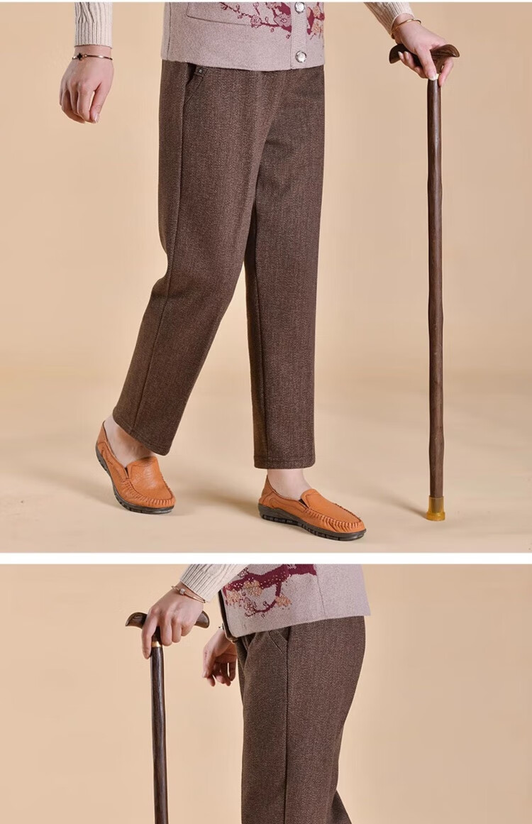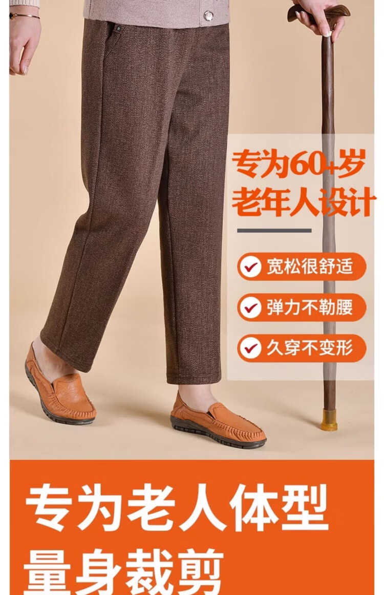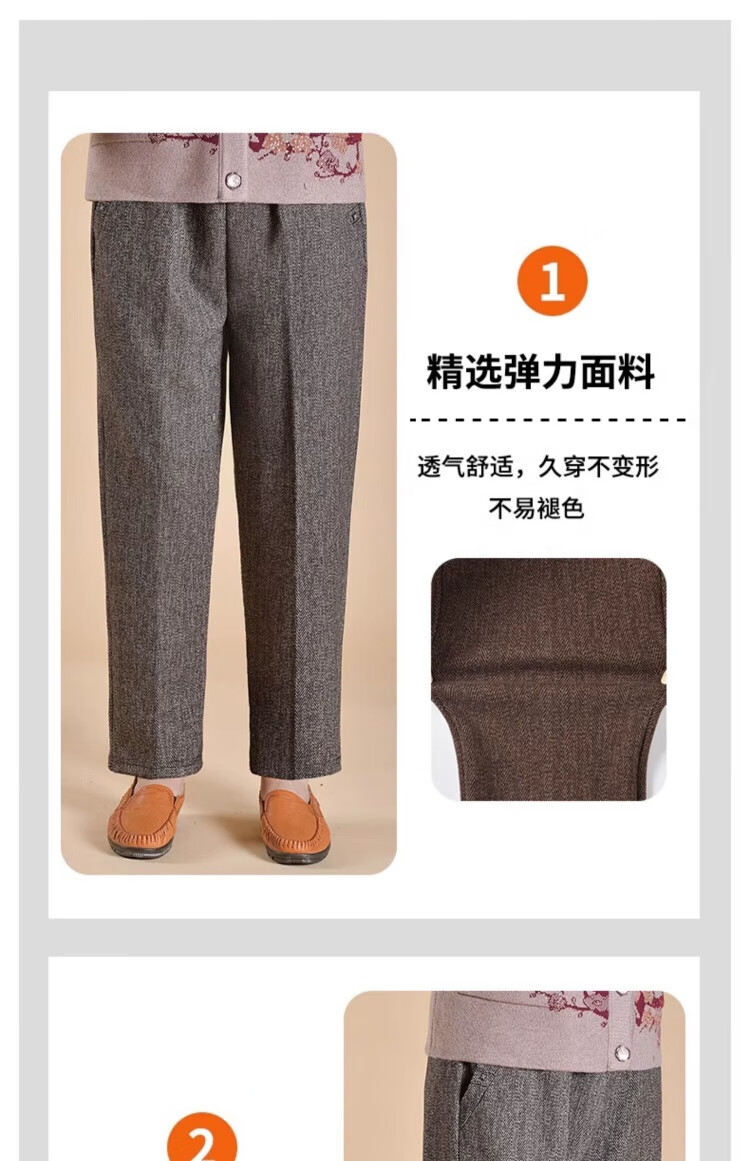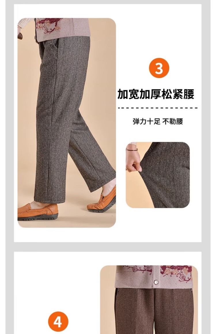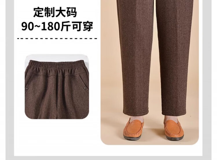 Yu Zhaolin middle-aged and elderly women's pants mother's wear spring, autumn and winter loose plus velvet old lady pants elastic waist straight 60-year-old grandma pants khaki-winter plus velvet 4XL recommended 135-150Jin Jin equals 0.5 kg