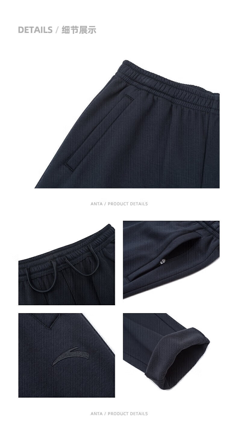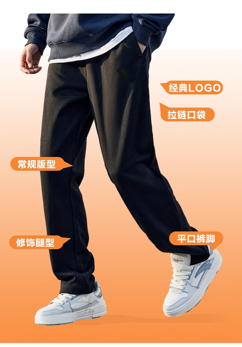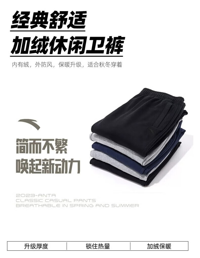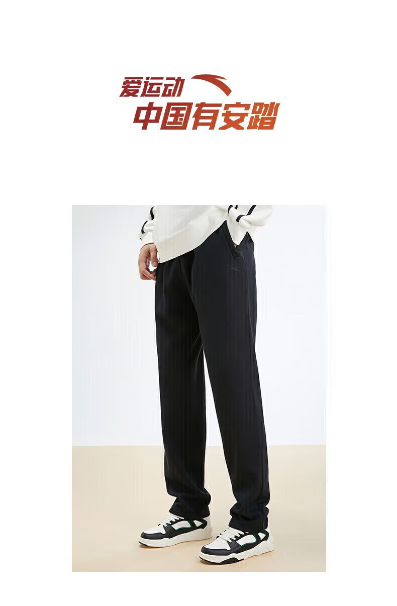 ANTA Velvet Sports Pants Men's Pants Autumn and Winter Knitted Warm Loose Straight Sweatpants Casual Pants Men's Running Pants -1 Basic Black/Straight Velvet Style L (175) Suitable for 120-140 Jin Jin equals 0.5 kg