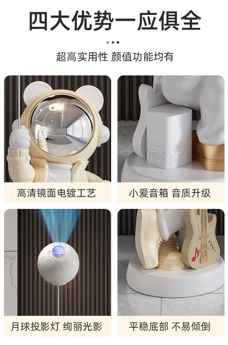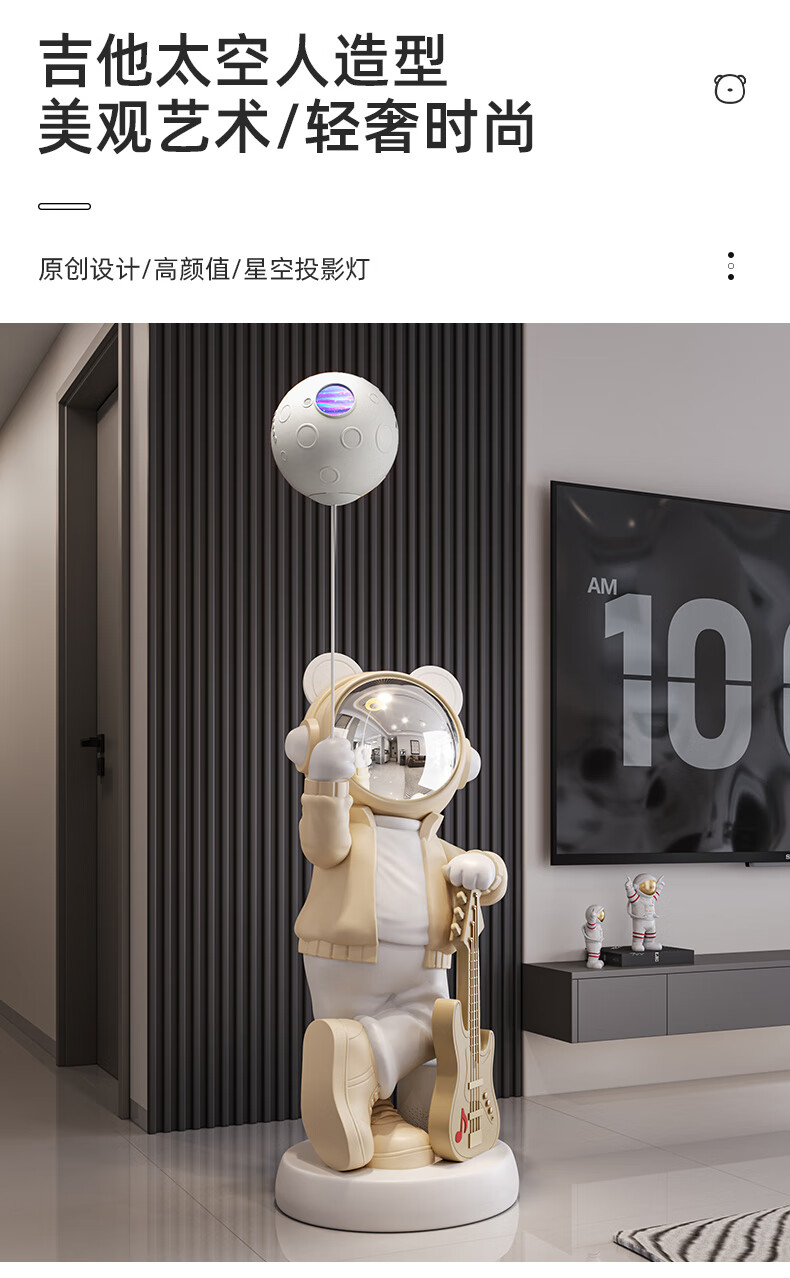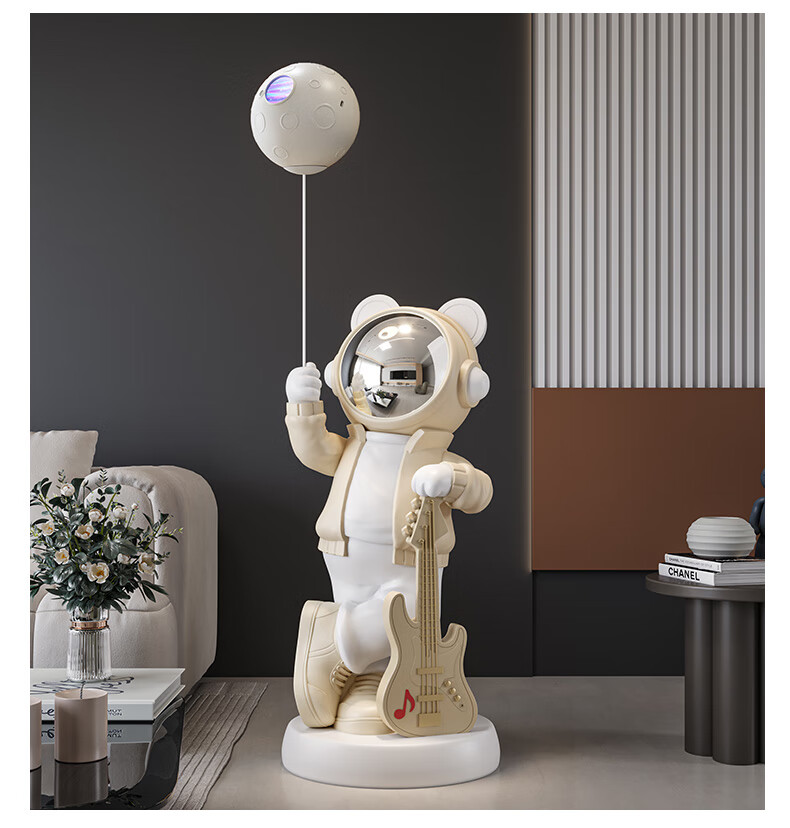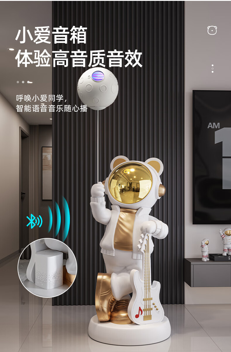 British Intelligent Xiaoai Speaker Large Floor Standing Astronaut Ornament Living Room TV Cabinet Next to Sofa Housewarming Gift Beige Xiaoai Speaker + Projector Lamp