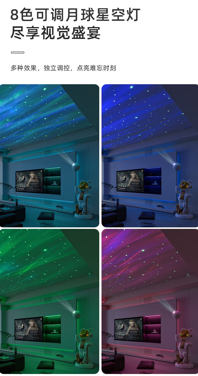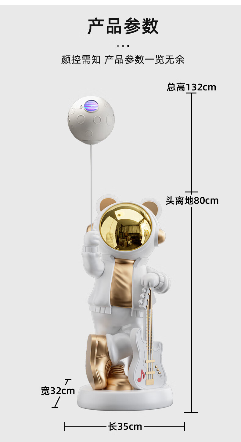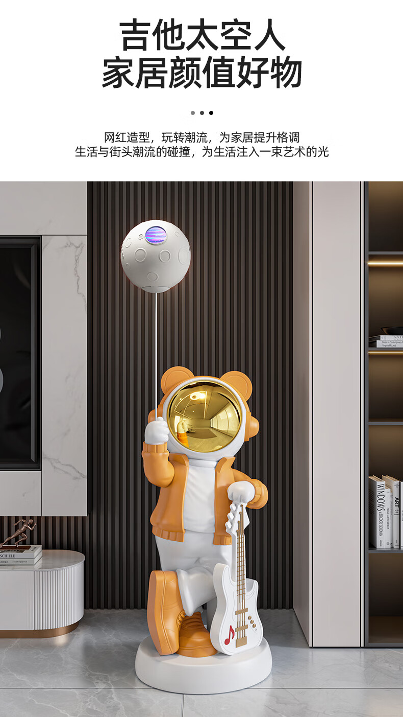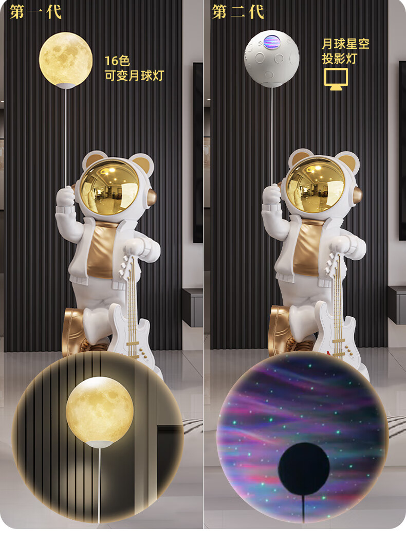 British Intelligent Xiaoai Speaker Large Floor Standing Astronaut Ornament Living Room TV Cabinet Next to Sofa Housewarming Gift Beige Xiaoai Speaker + Projector Lamp