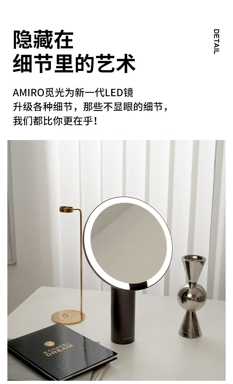 AMIROAMIRO makeup mirror with light led desktop dressing mirror O2 high-definition intelligent fill-in light dormitory beauty mirror small powder mirror Dream Garden gift box