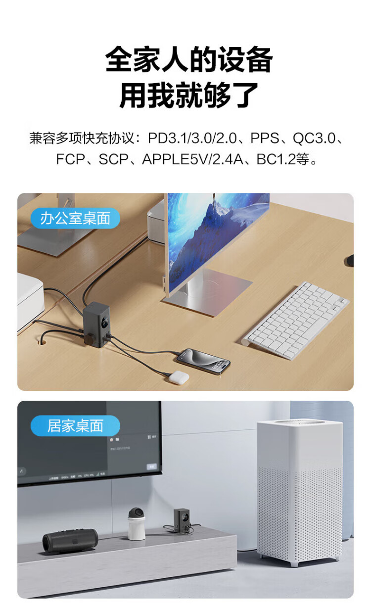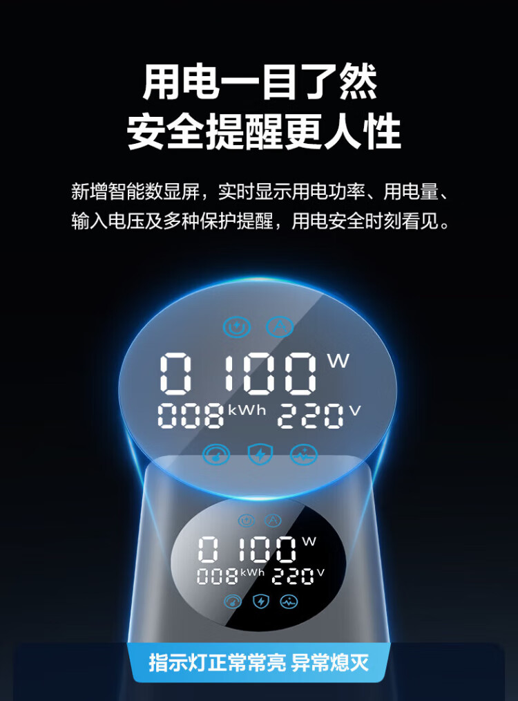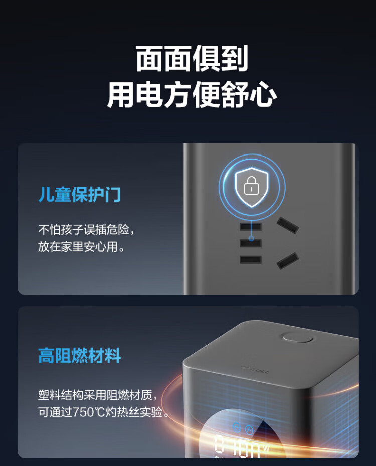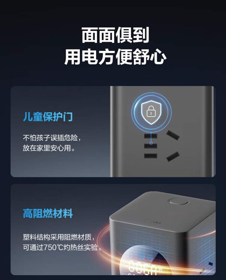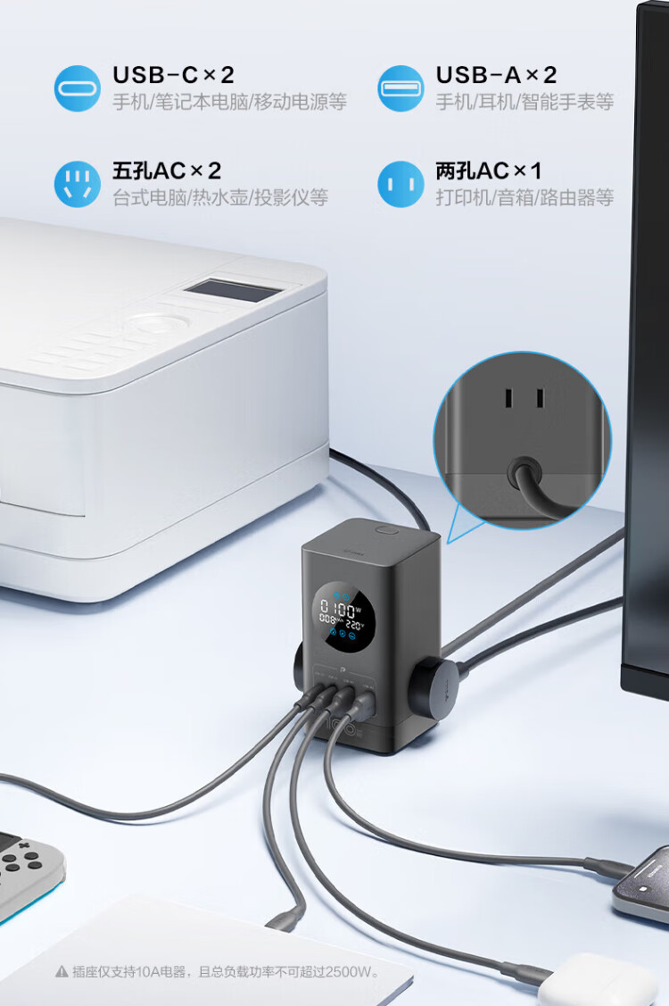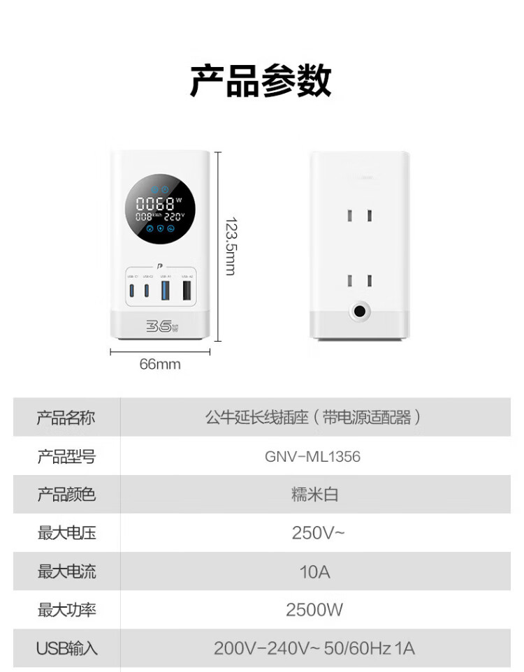 Bull (BULL) gallium nitride vertical fast charging socket smart digital display screen e-sports multi-functional desktop notebook power strip 100W seven-in-one 1.5 meter pebble gray vertical digital display gallium nitride fast charging socket