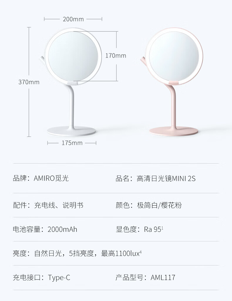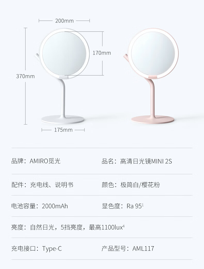 AMIRO vanity mirror with light led desktop vanity mirror mini2s smart fill light beauty mirror for girlfriend and wife minimalist white