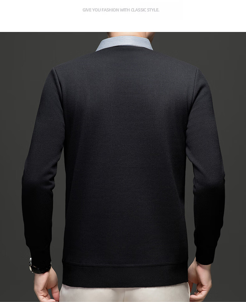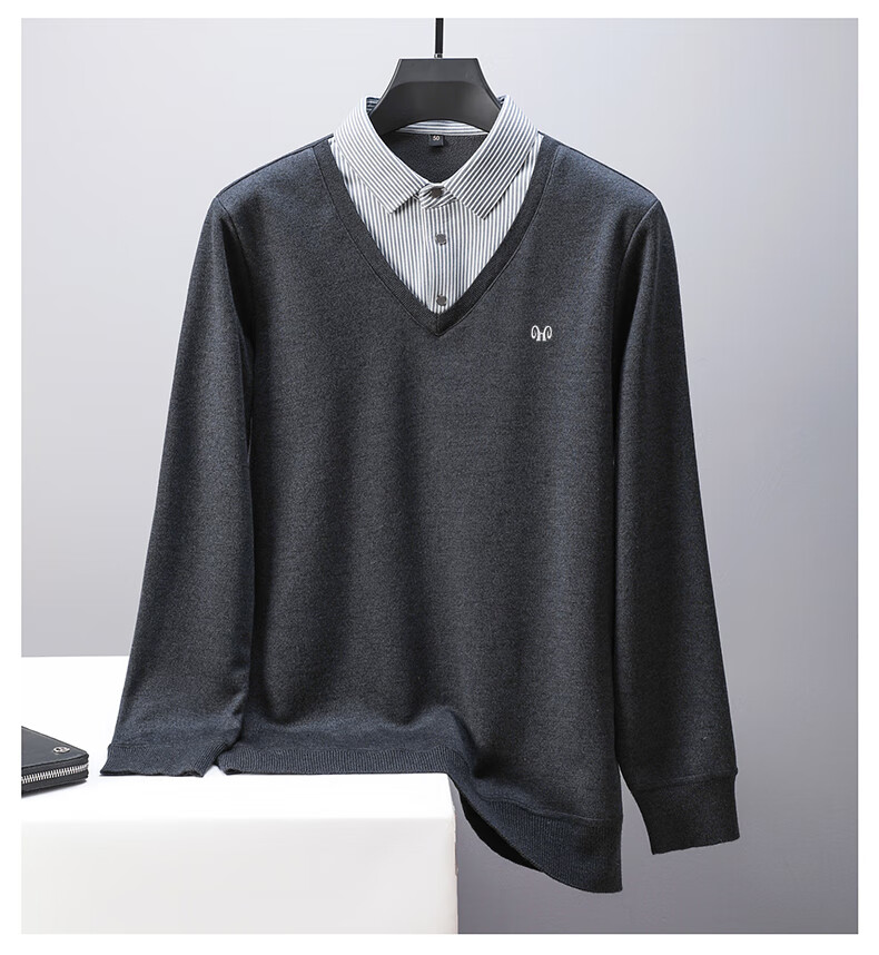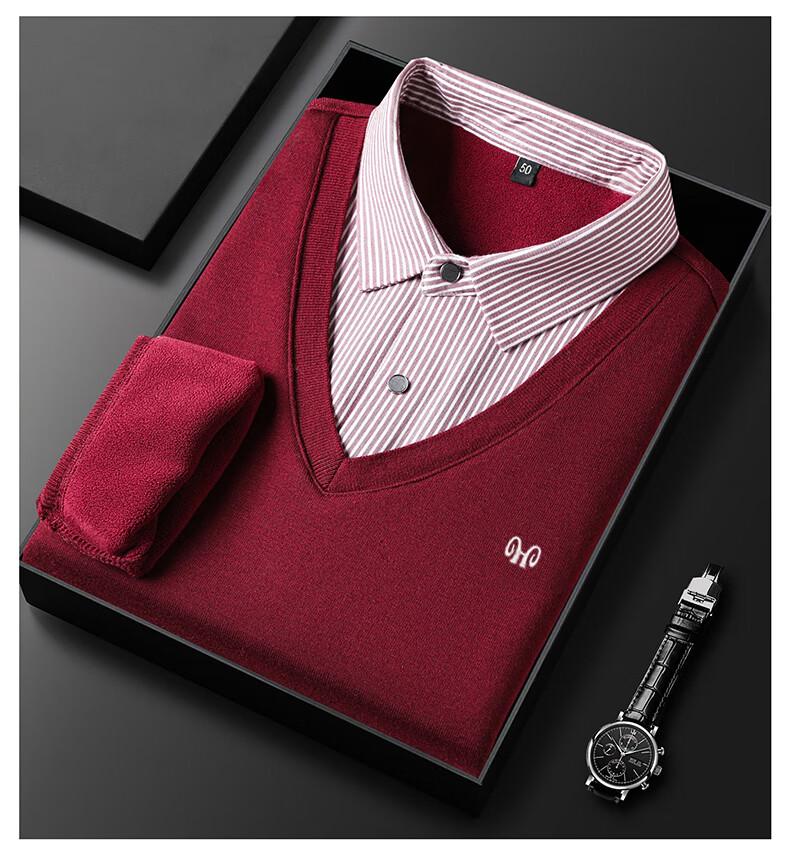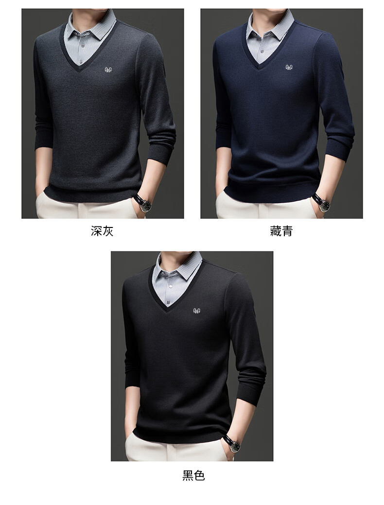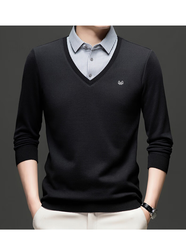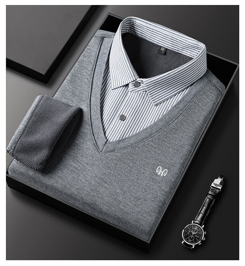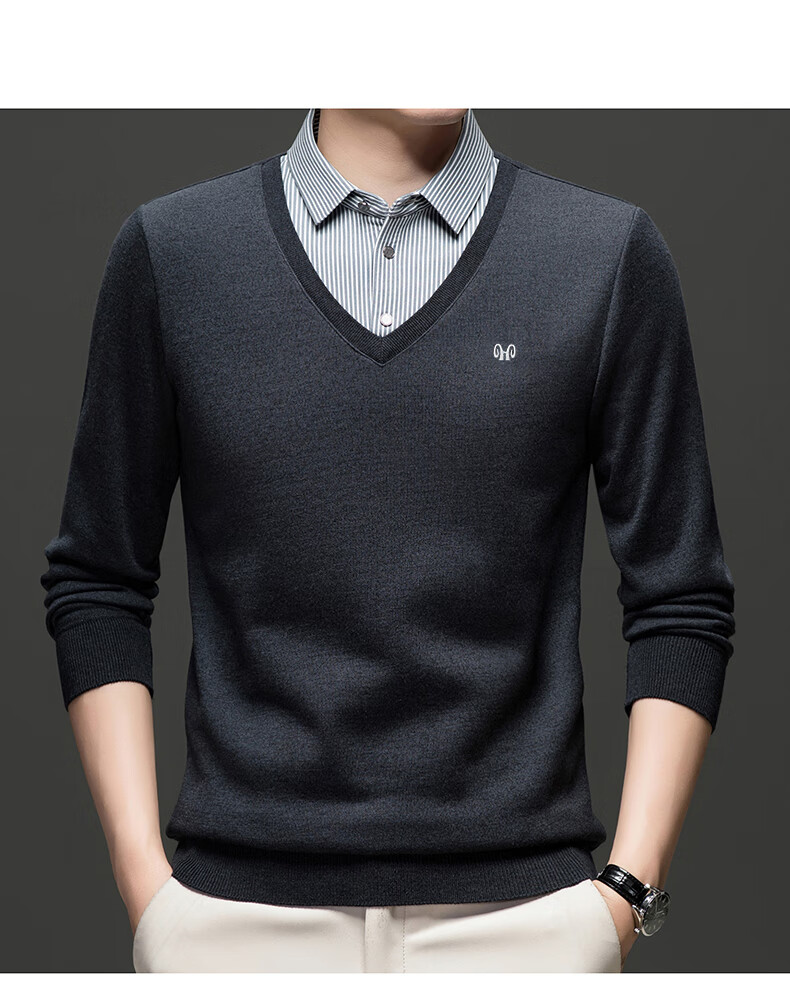 Hengyuanxiang 2025 Autumn and Winter Wool Sweater Men's Shirt Collar Fake Two-Piece Sweater Winter Plush Thickened Warm Knitted Wool Sweater Navy Blue 3XL (185) 160-175Jin Jin equals 0.5 kg
