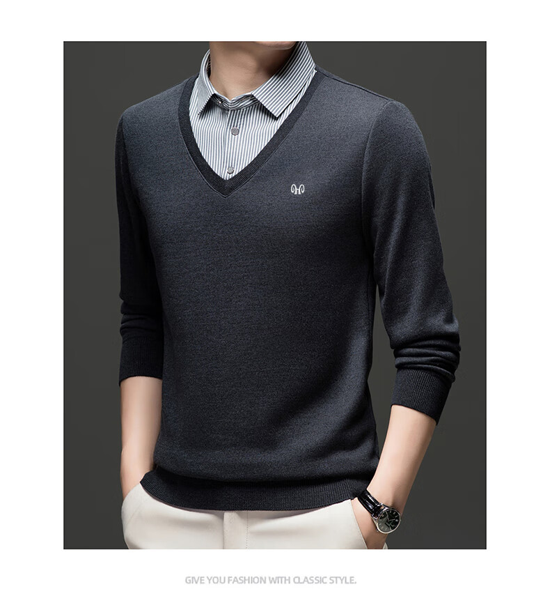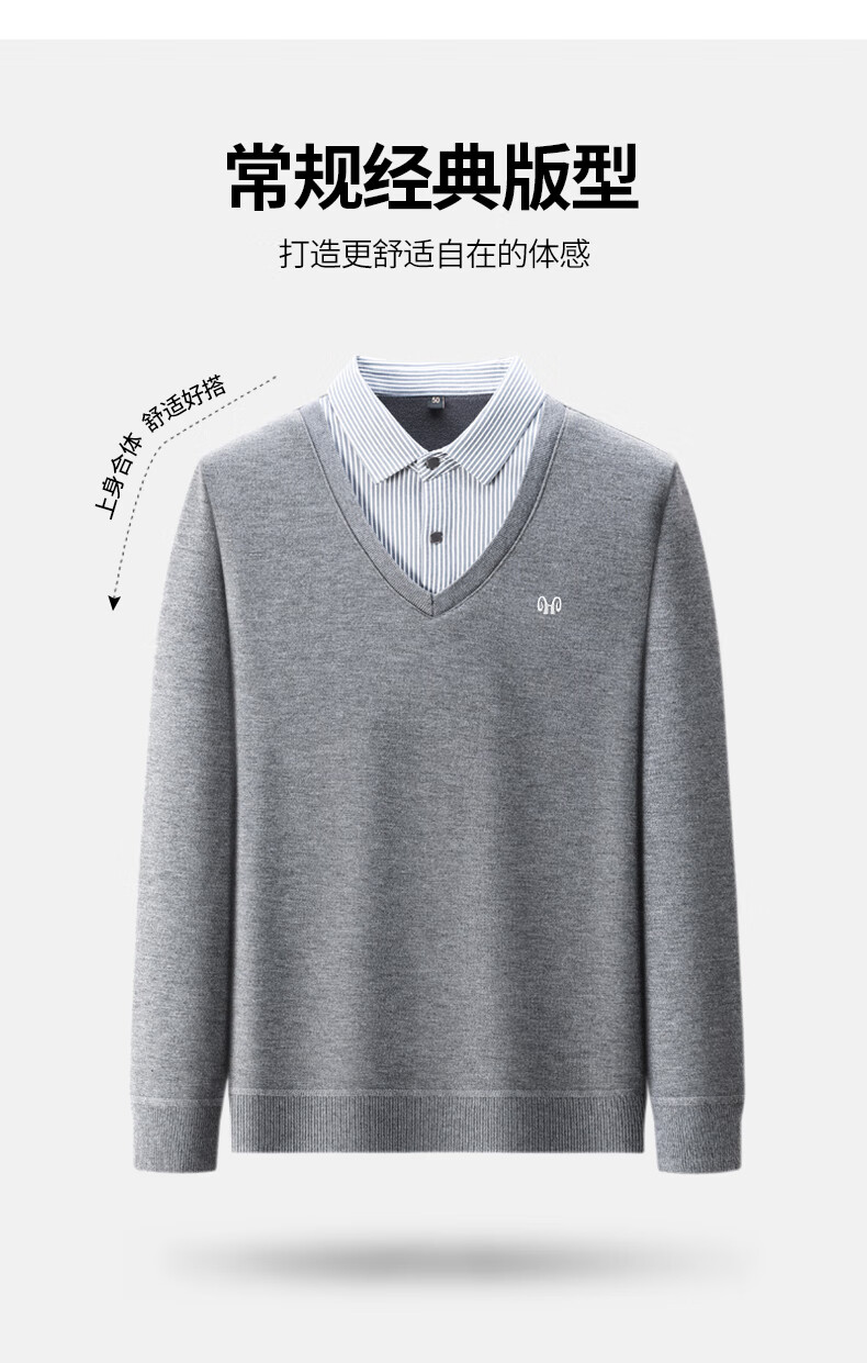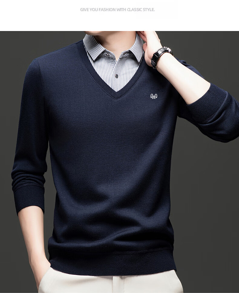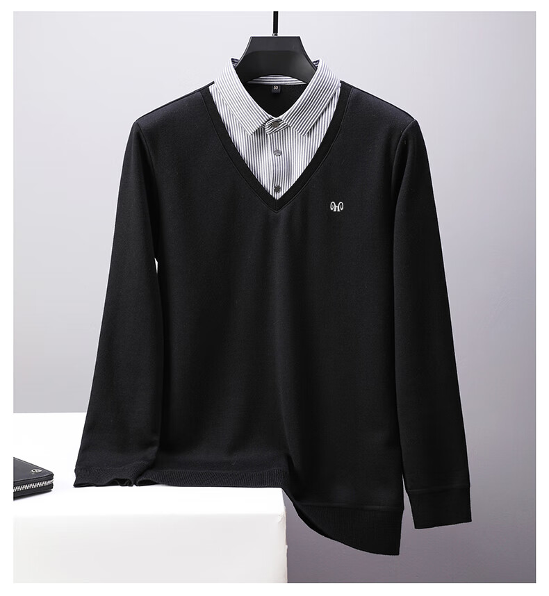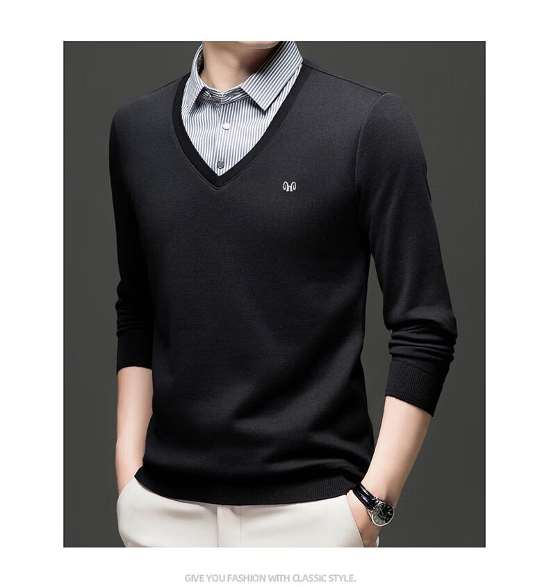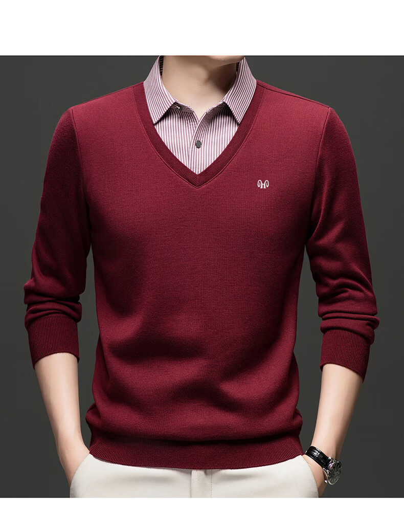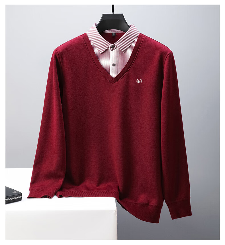 Hengyuanxiang 2025 Autumn and Winter Wool Sweater Men's Shirt Collar Fake Two-Piece Sweater Winter Plush Thickened Warm Knitted Wool Sweater Navy Blue 3XL (185) 160-175Jin Jin equals 0.5 kg
