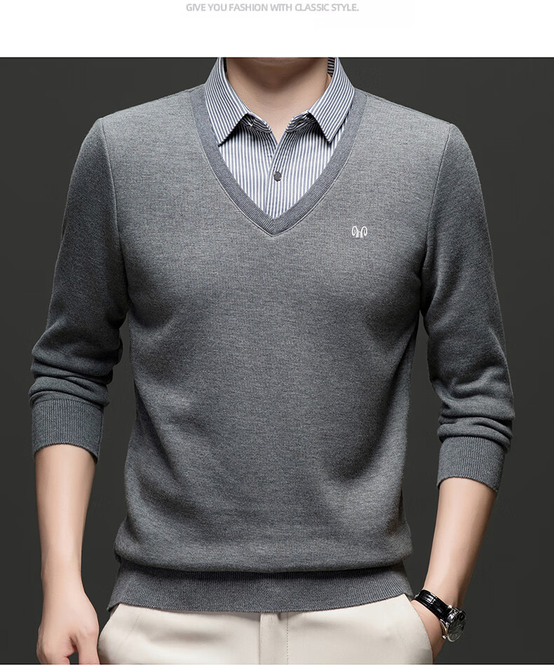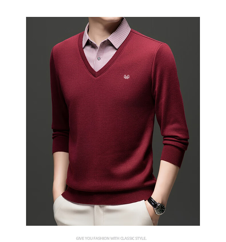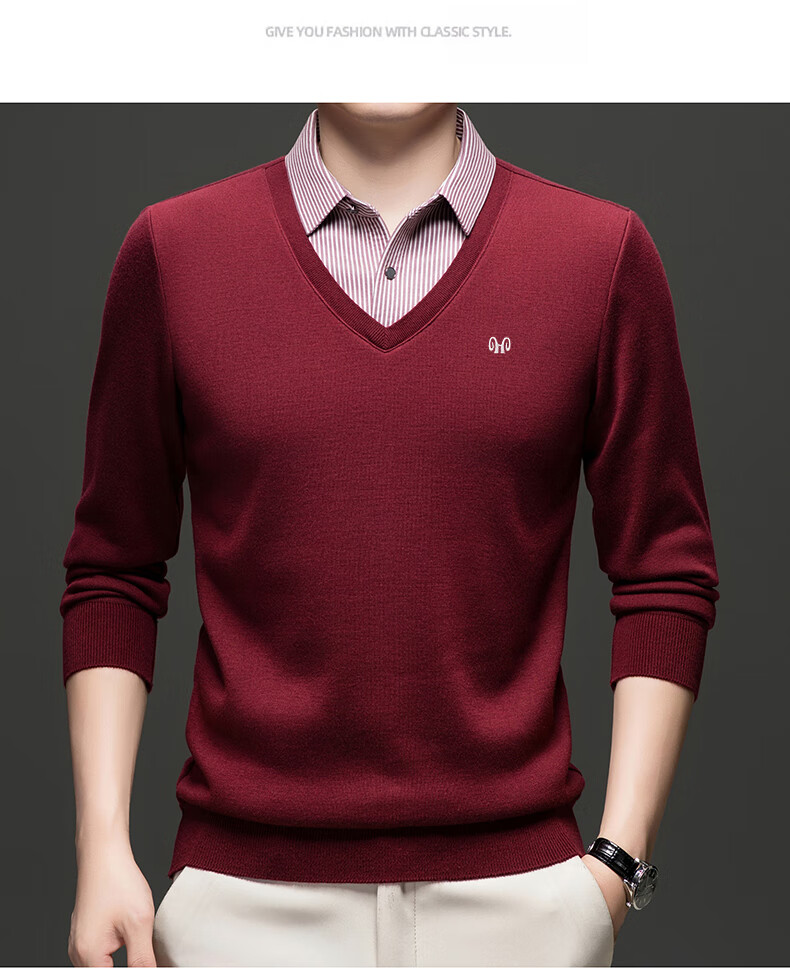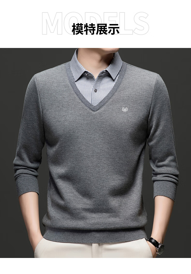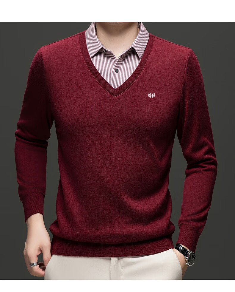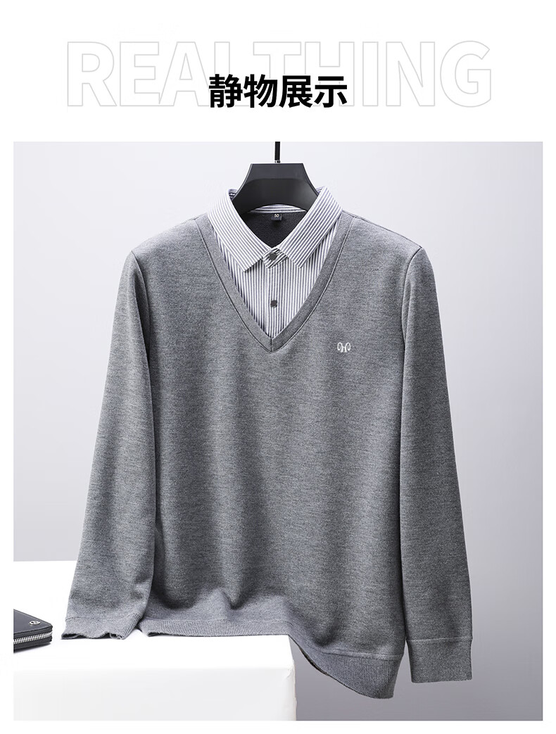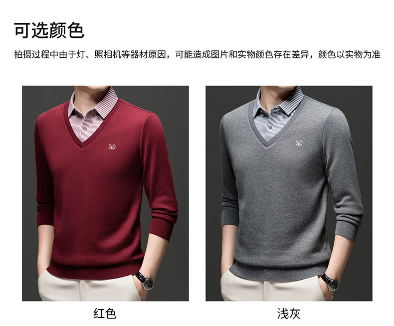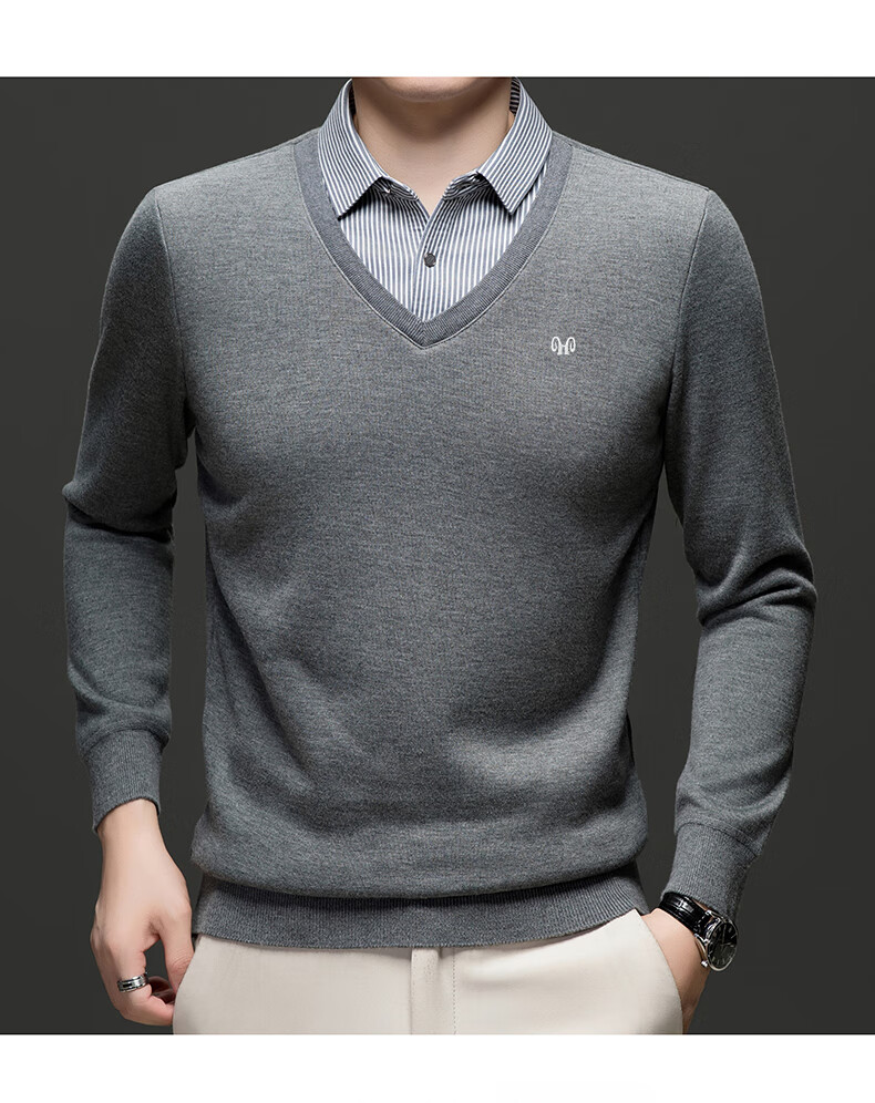Hengyuanxiang 2025 Autumn and Winter Wool Sweater Men's Shirt Collar Fake Two-Piece Sweater Winter Plush Thickened Warm Knitted Wool Sweater Navy Blue 3XL (185) 160-175Jin Jin equals 0.5 kg