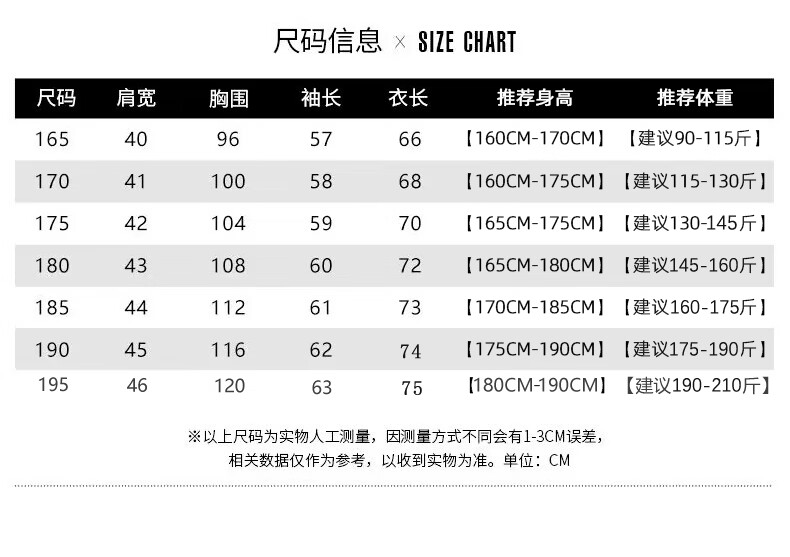 China (cm) 165 / 88-90 170 / 96-98 175 / 108-110 180 / 118-122 185 / 126-130