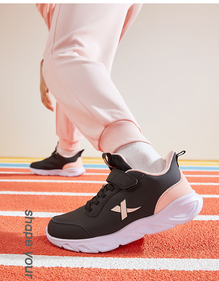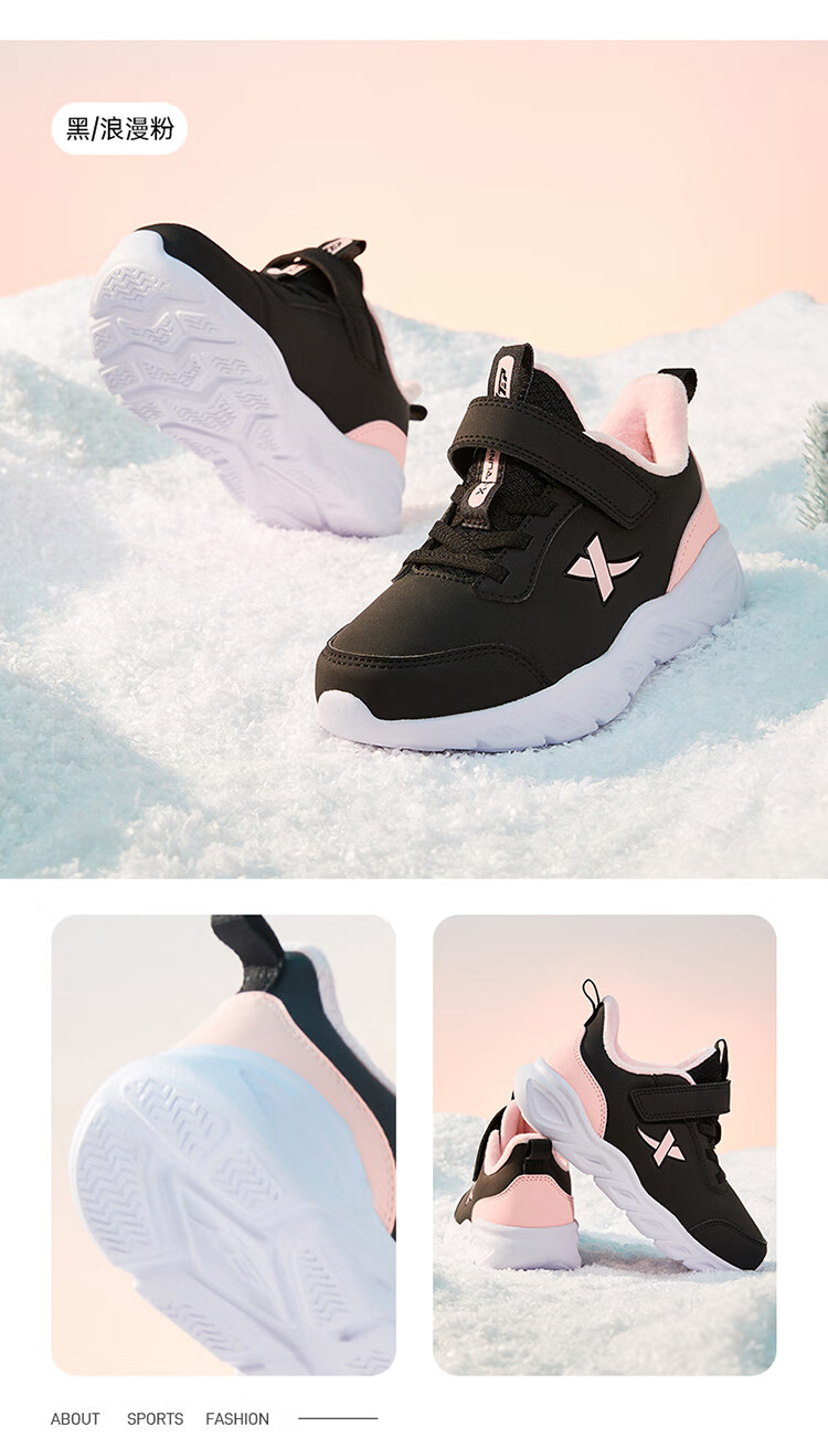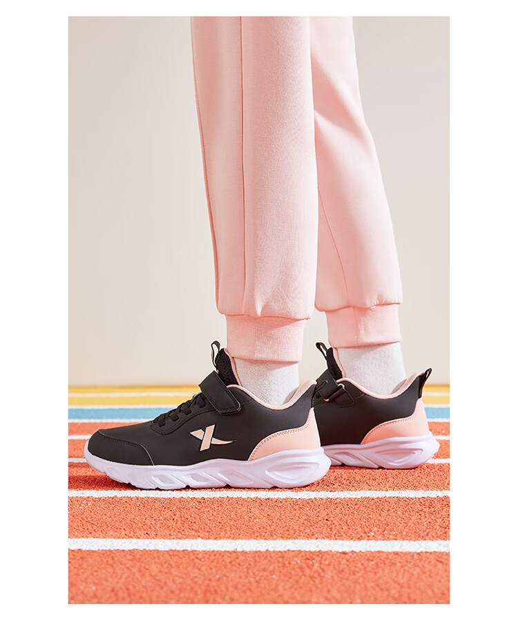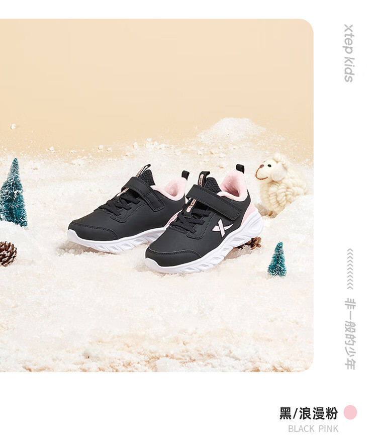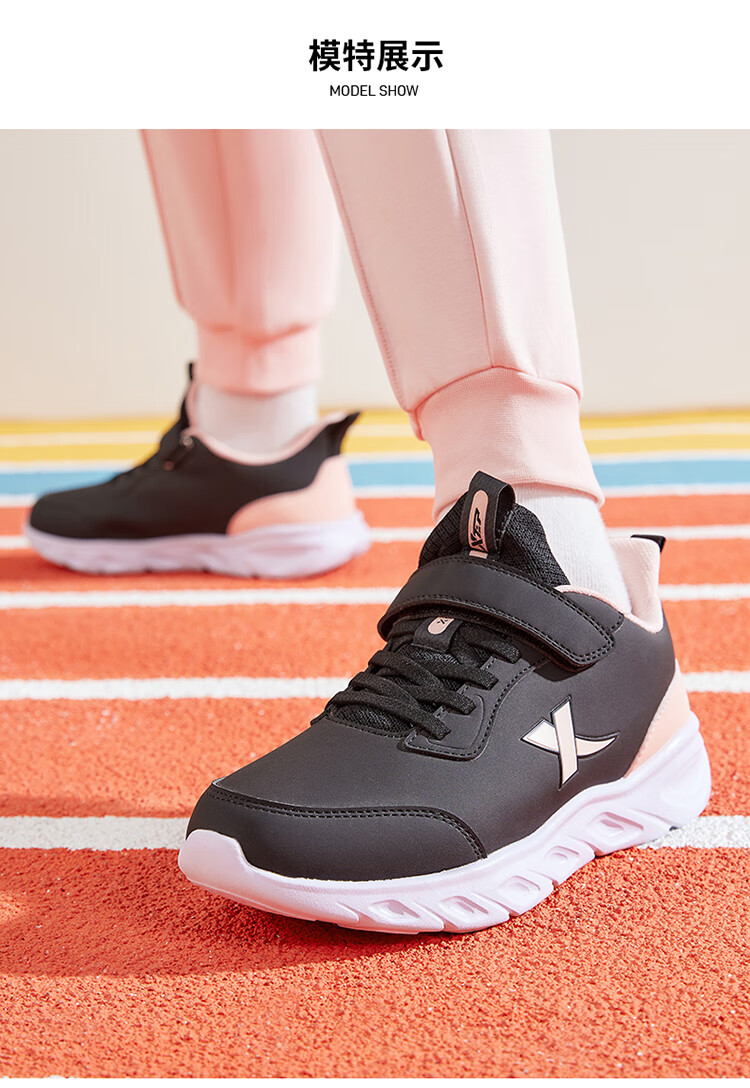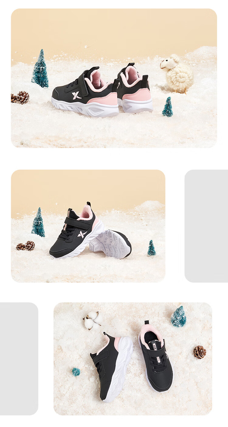 XTEP (XTEP) optionale Samt-Kinderschuhe 2025 Frühling und Herbst Jungen- und Mädchensportschuhe kleine, mittlere und große Kinderlaufschuhe Schwarz/Romantisches Rosa (Samt) 35