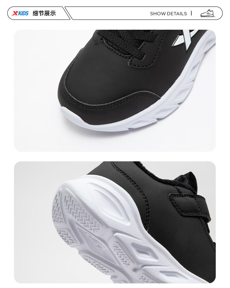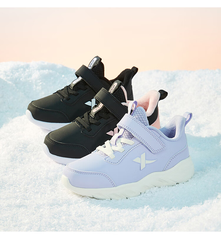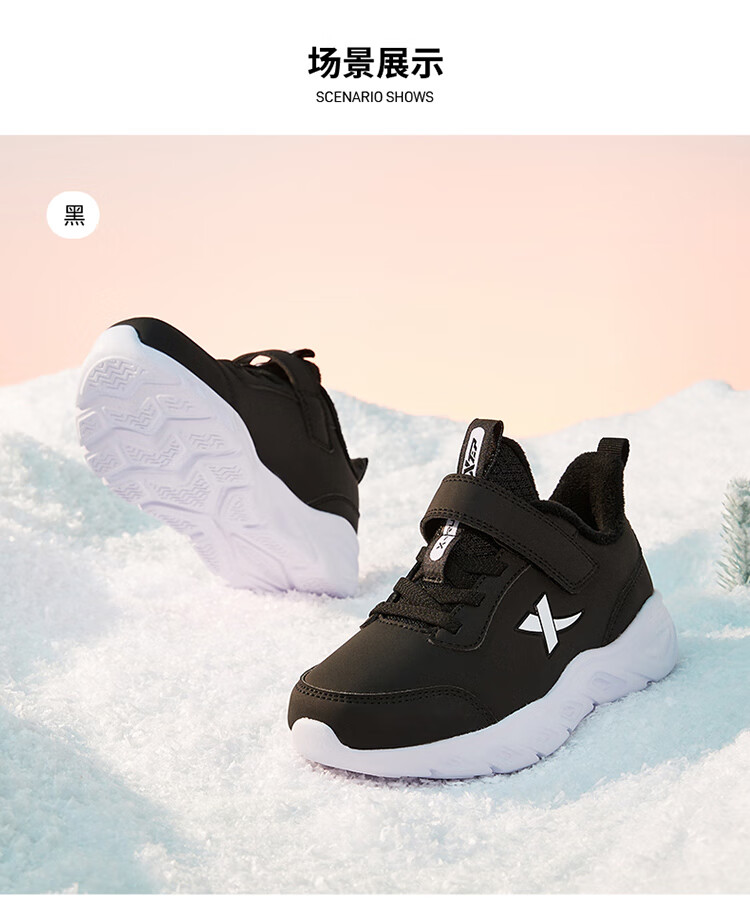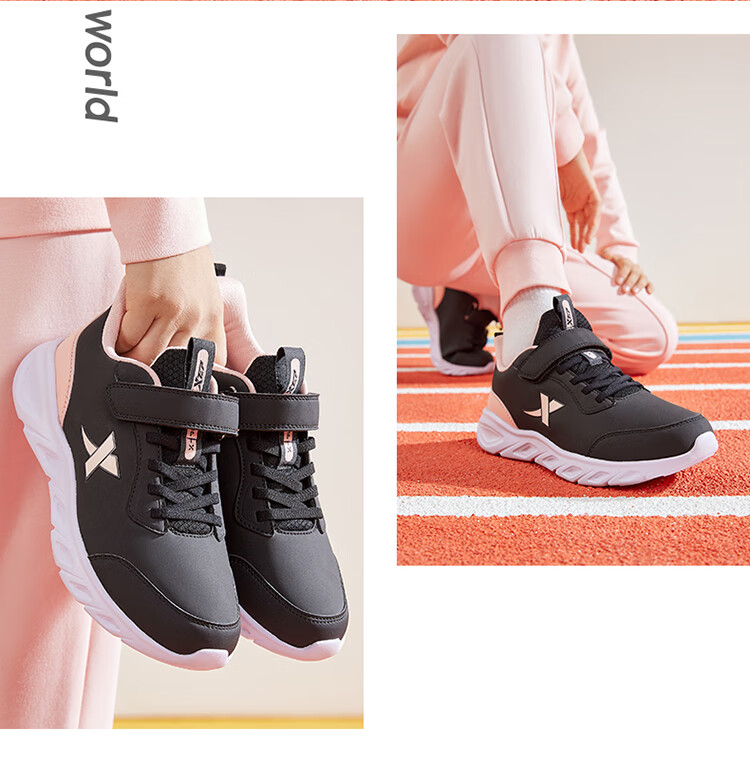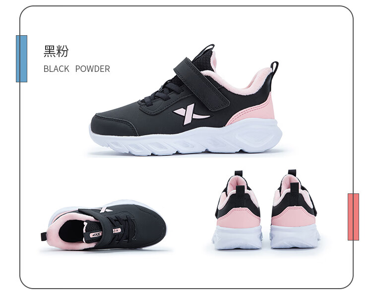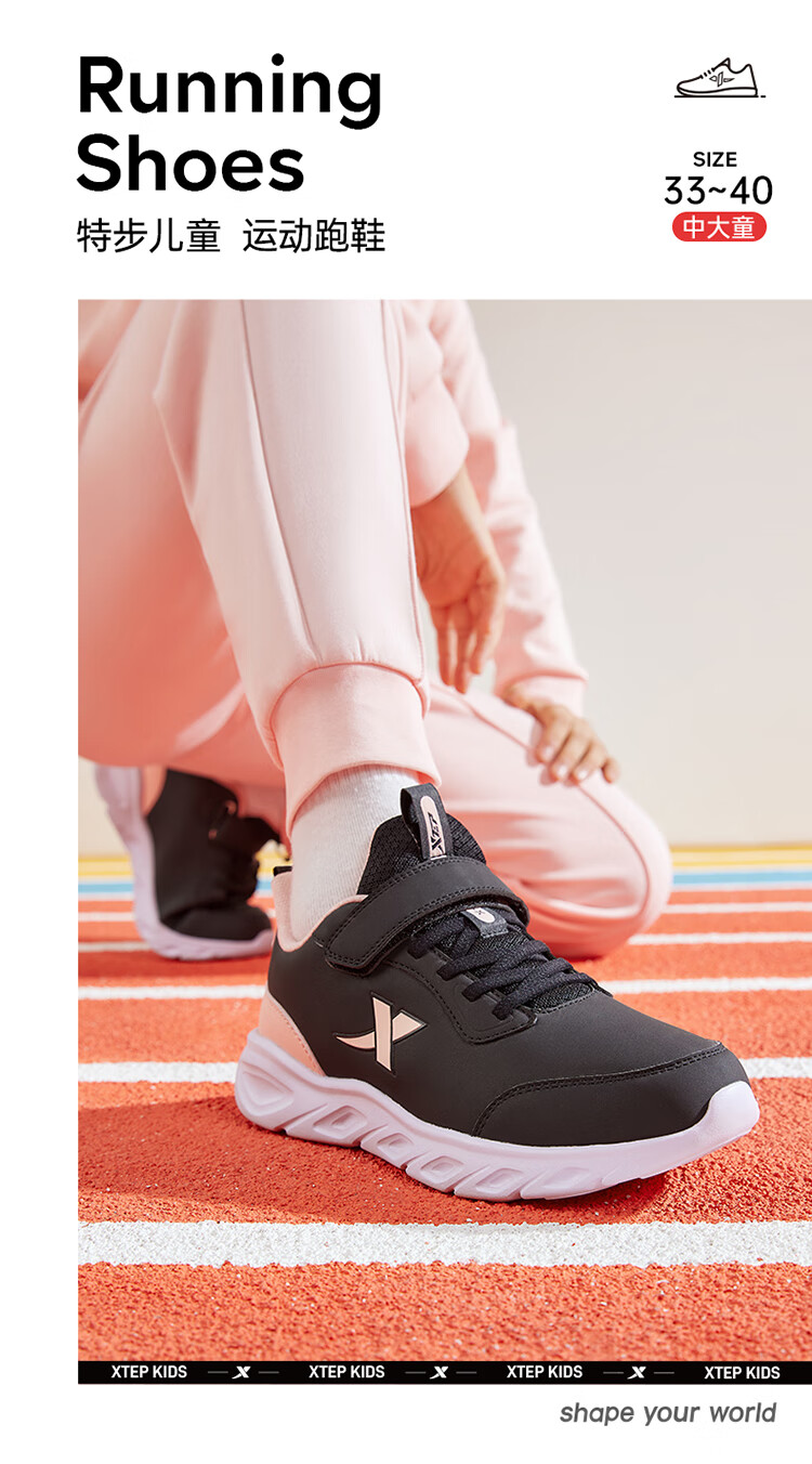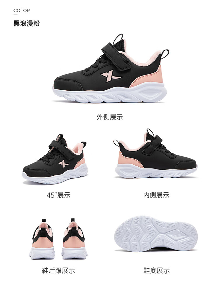 XTEP (XTEP) optionale Samt-Kinderschuhe 2025 Frühling und Herbst Jungen- und Mädchensportschuhe kleine, mittlere und große Kinderlaufschuhe Schwarz/Romantisches Rosa (Samt) 35