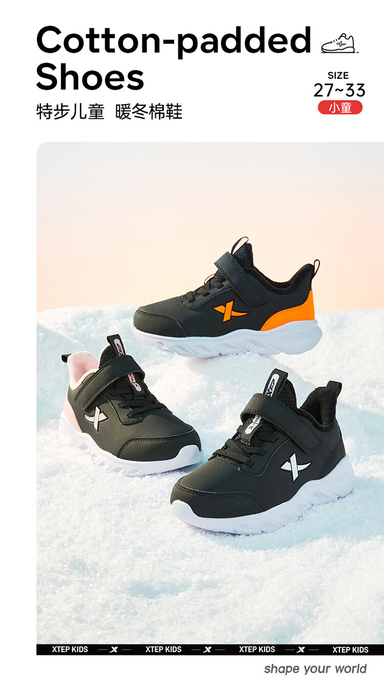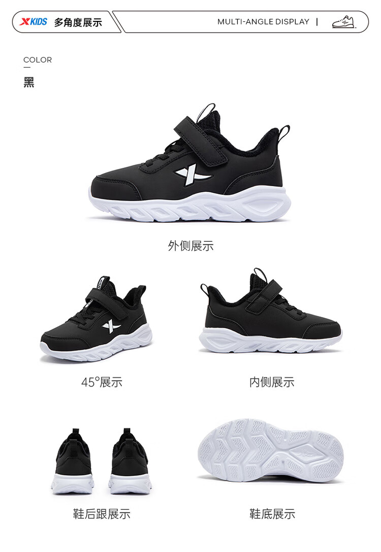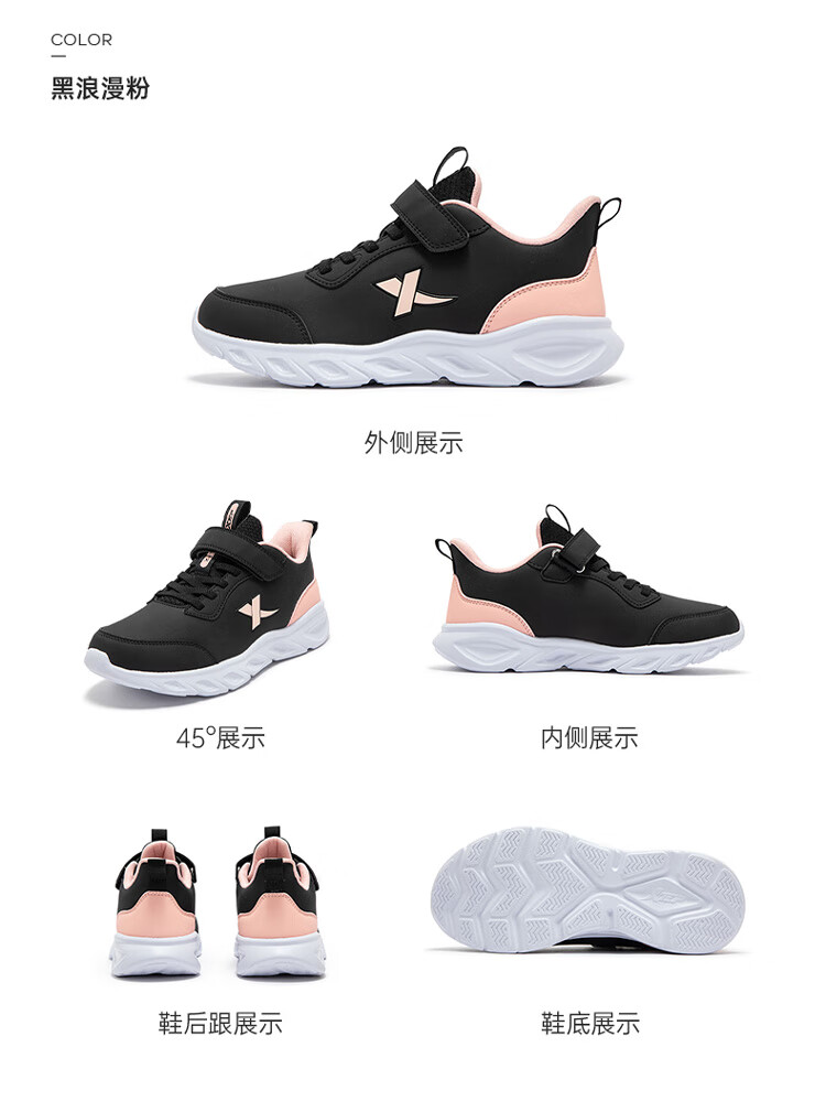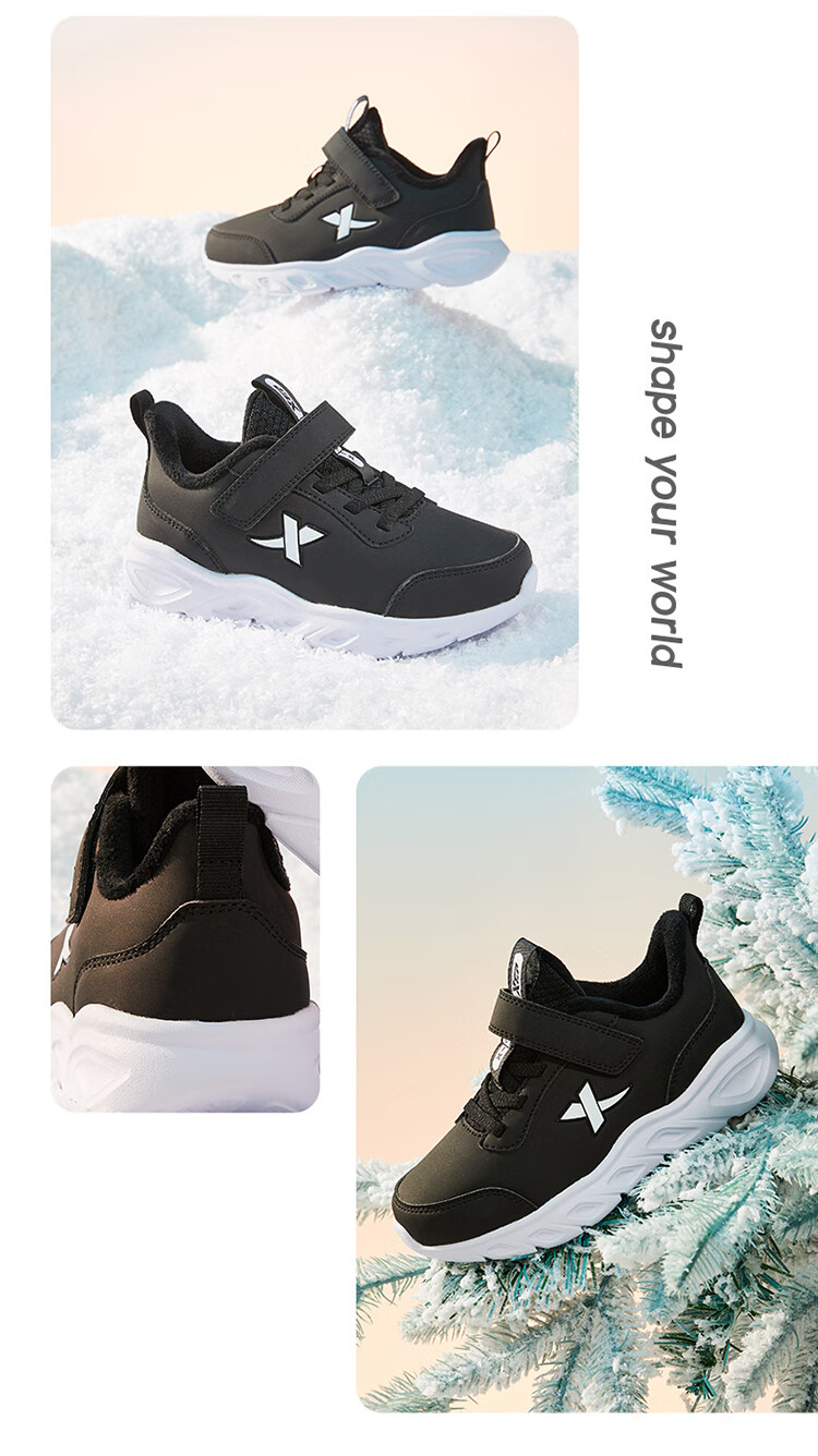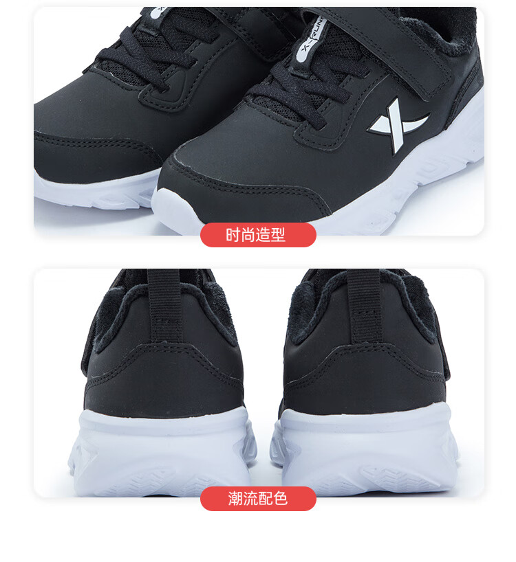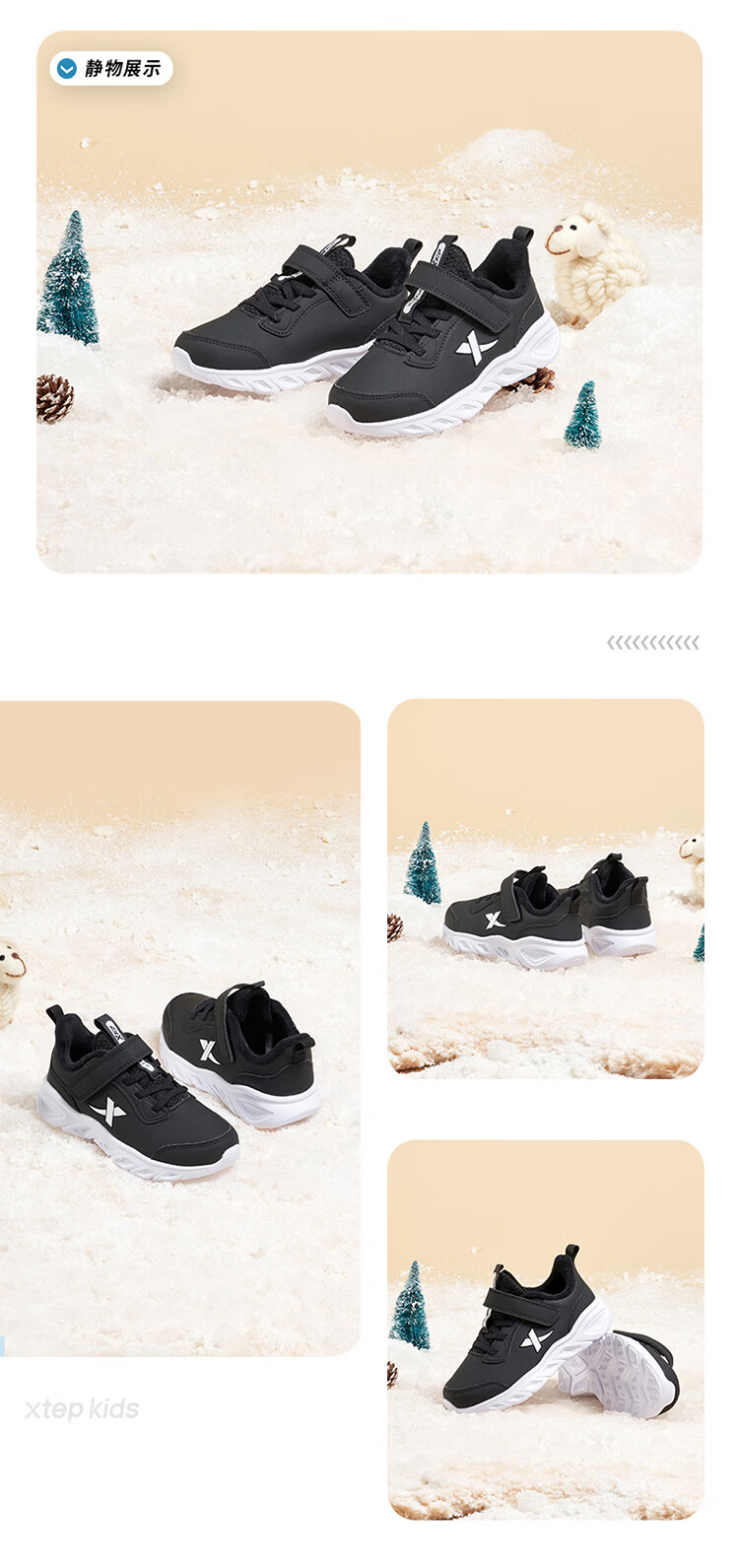 XTEP (XTEP) optionale Samt-Kinderschuhe 2025 Frühling und Herbst Jungen- und Mädchensportschuhe kleine, mittlere und große Kinderlaufschuhe Schwarz/Romantisches Rosa (Samt) 35