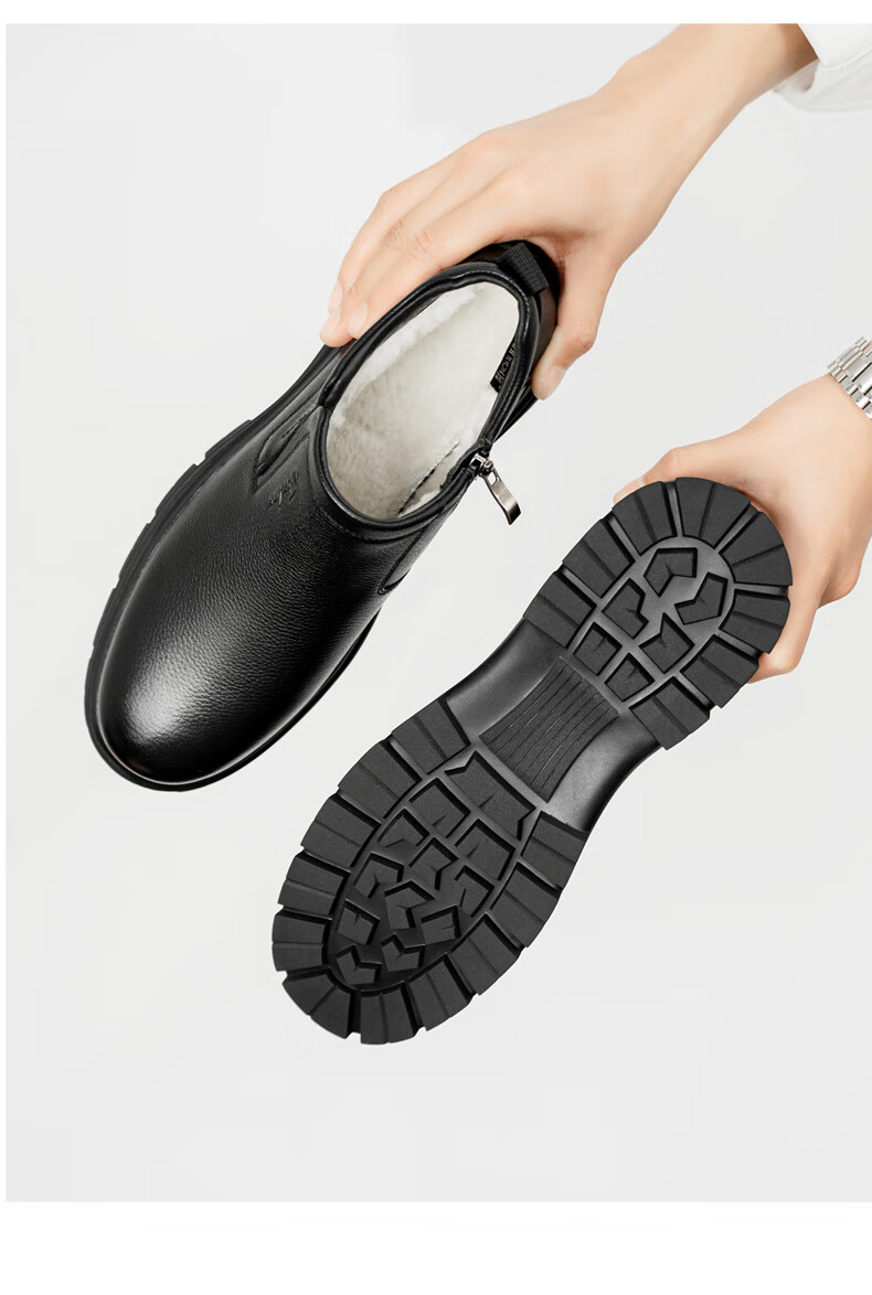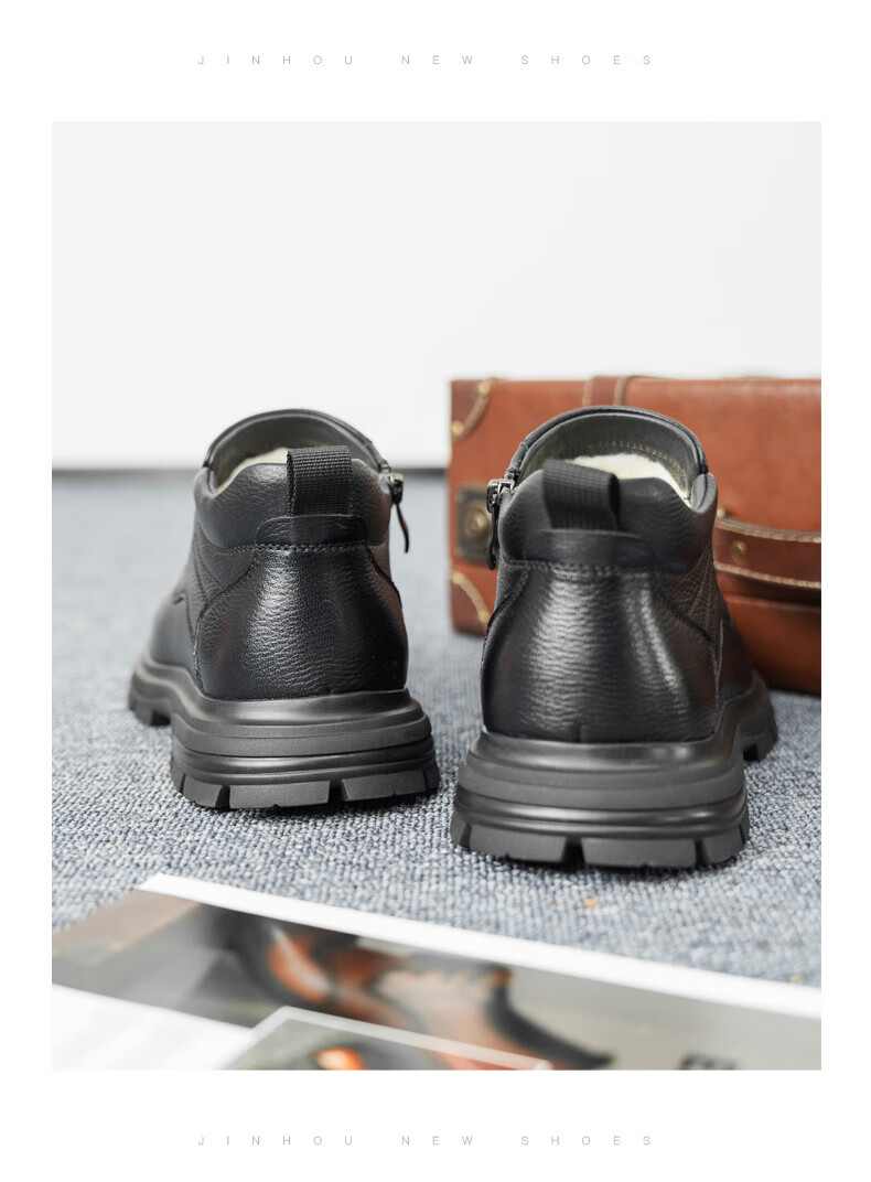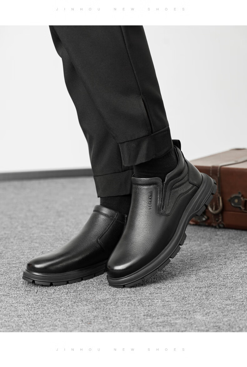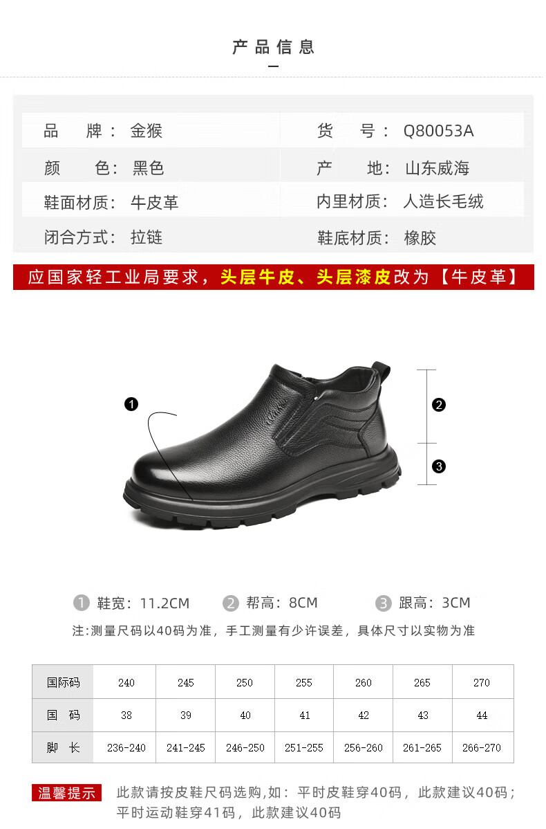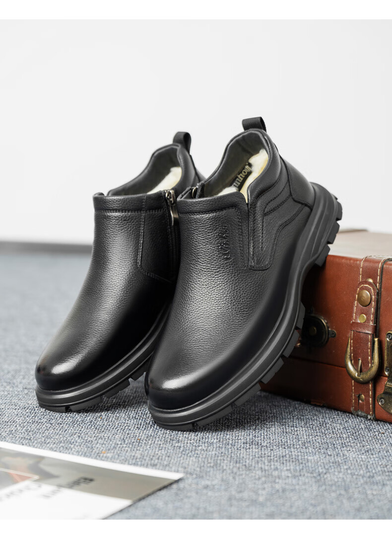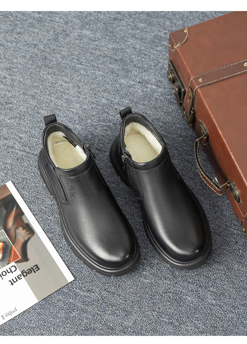 Golden Monkey plus suede leather shoes for men winter new cowhide business casual shoes warm side zipper dad shoes black 42