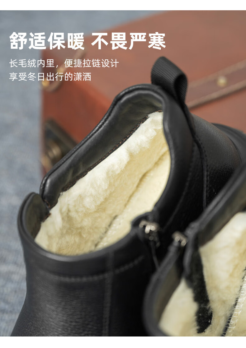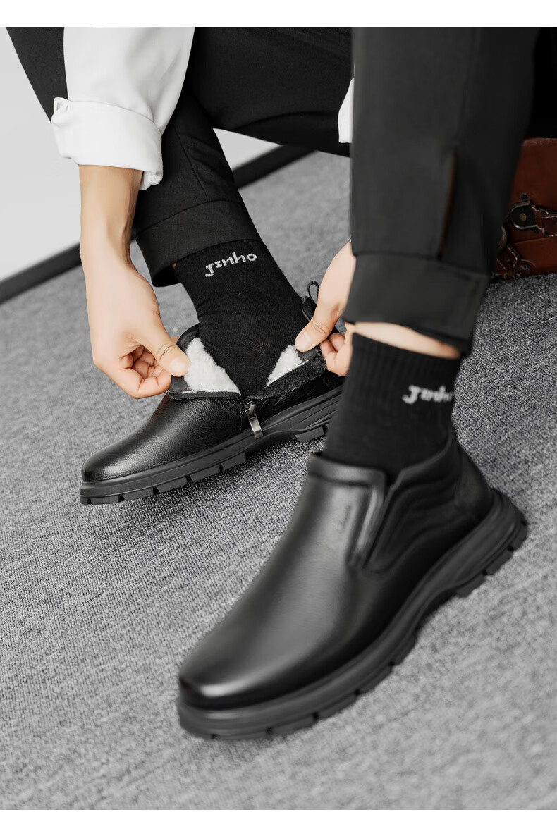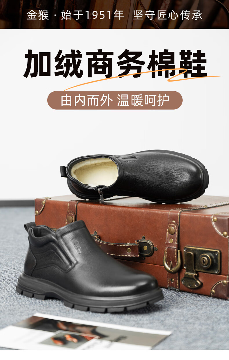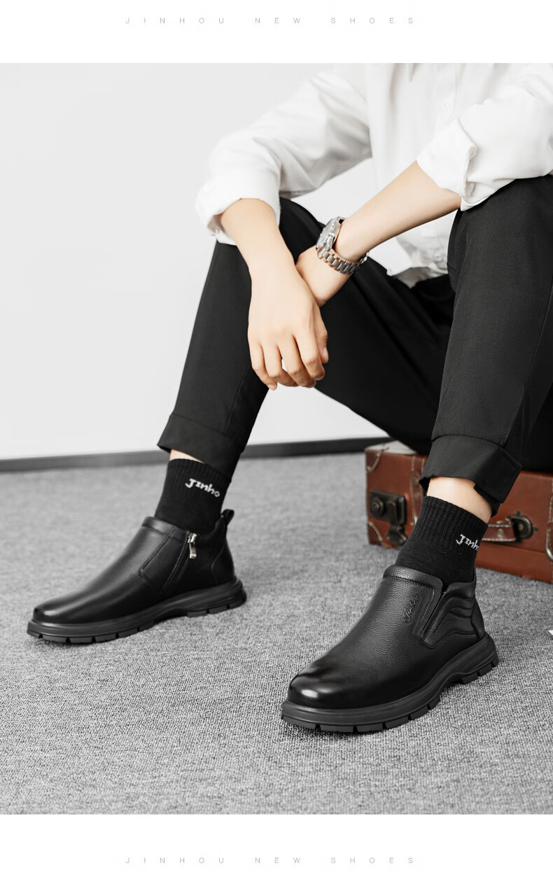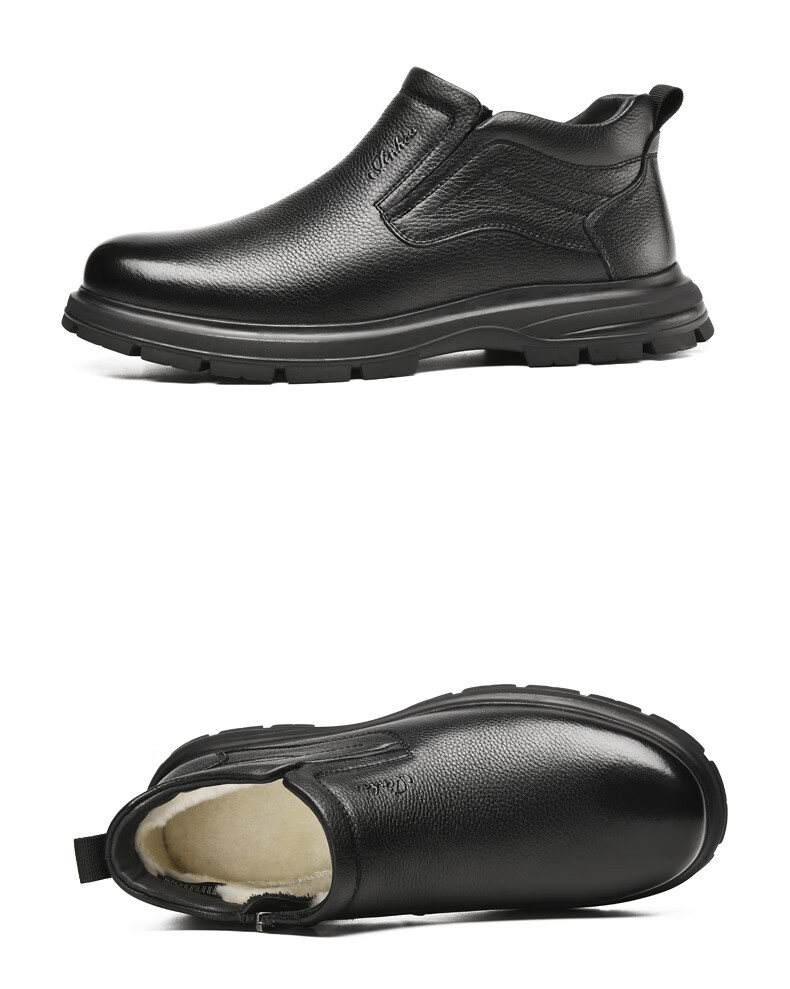 Golden Monkey plus suede leather shoes for men winter new cowhide business casual shoes warm side zipper dad shoes black 42