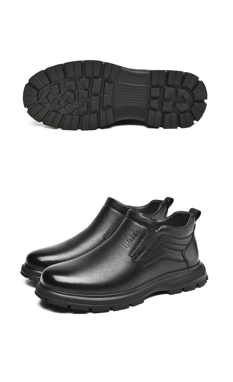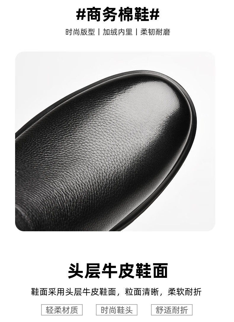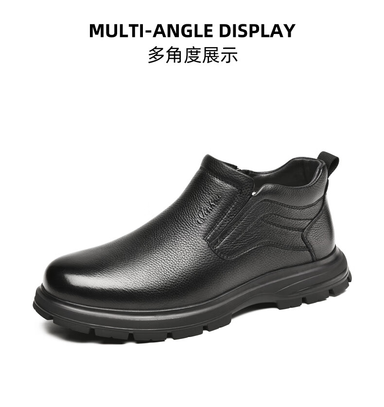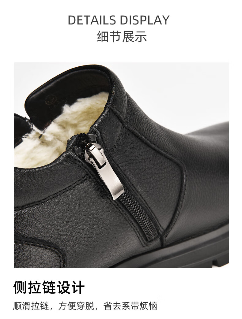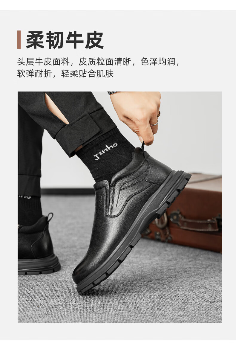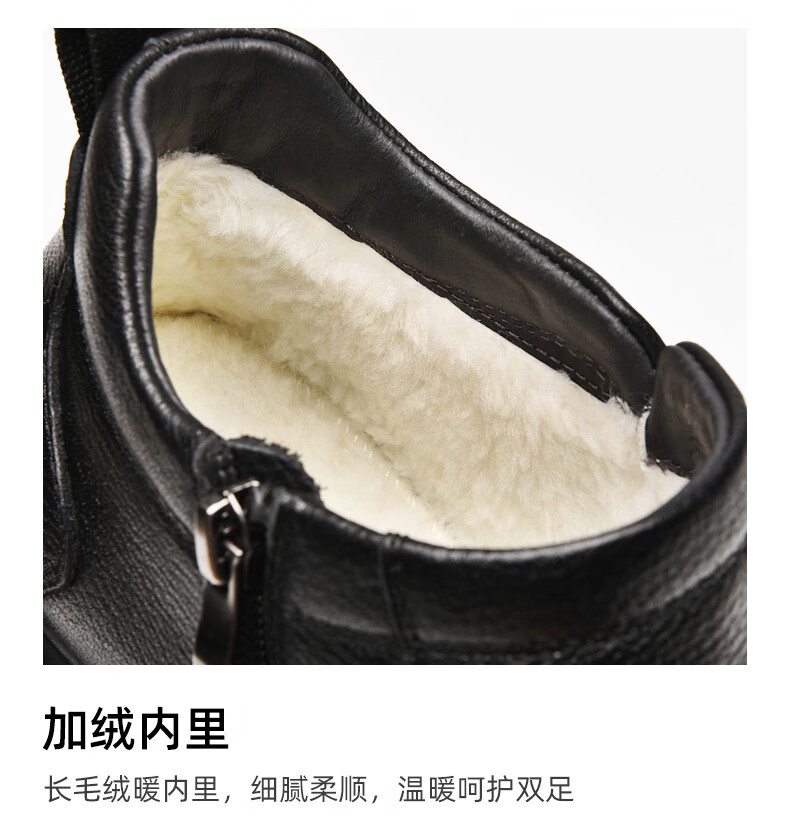 Golden Monkey plus suede leather shoes for men winter new cowhide business casual shoes warm side zipper dad shoes black 42