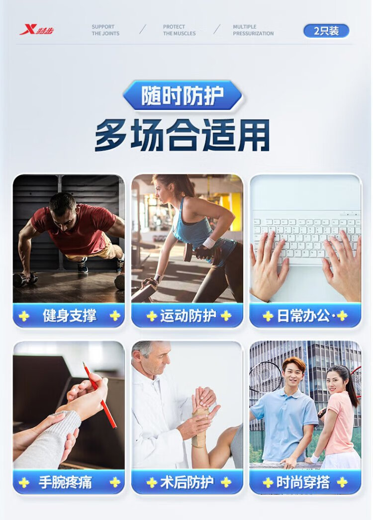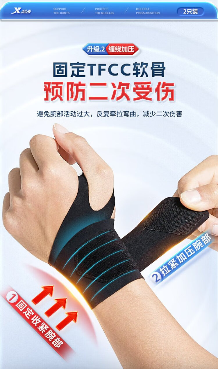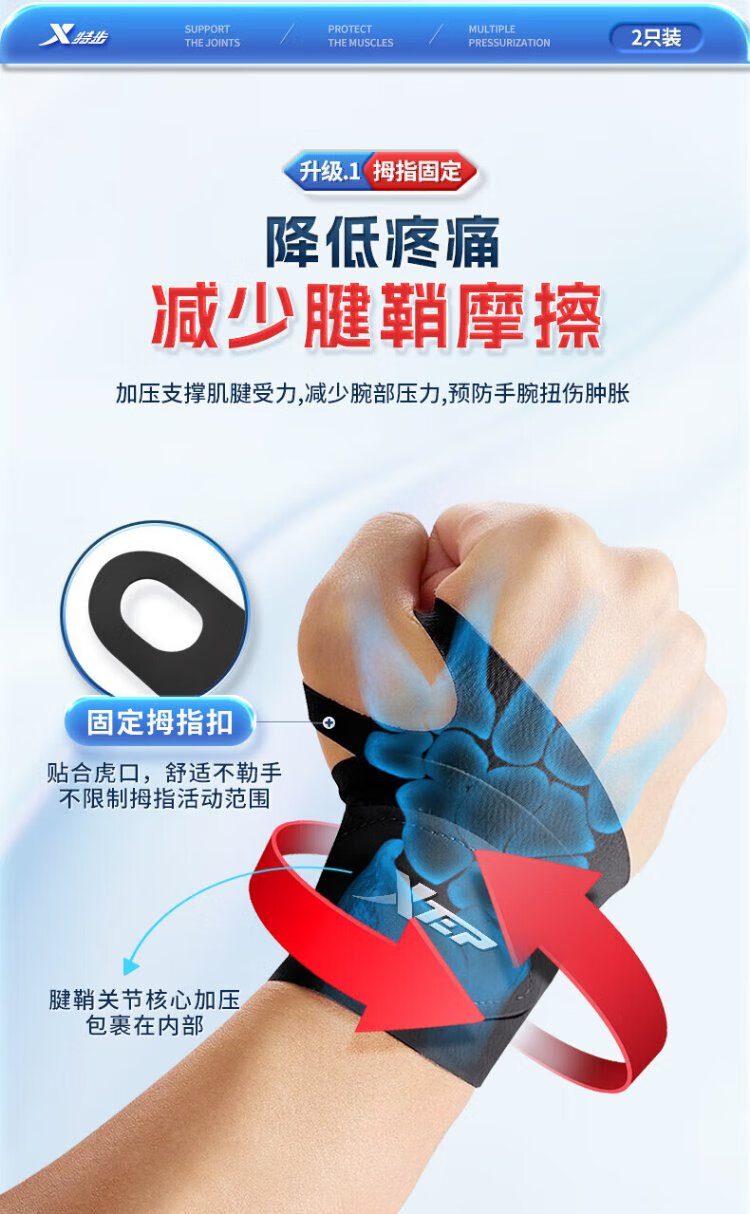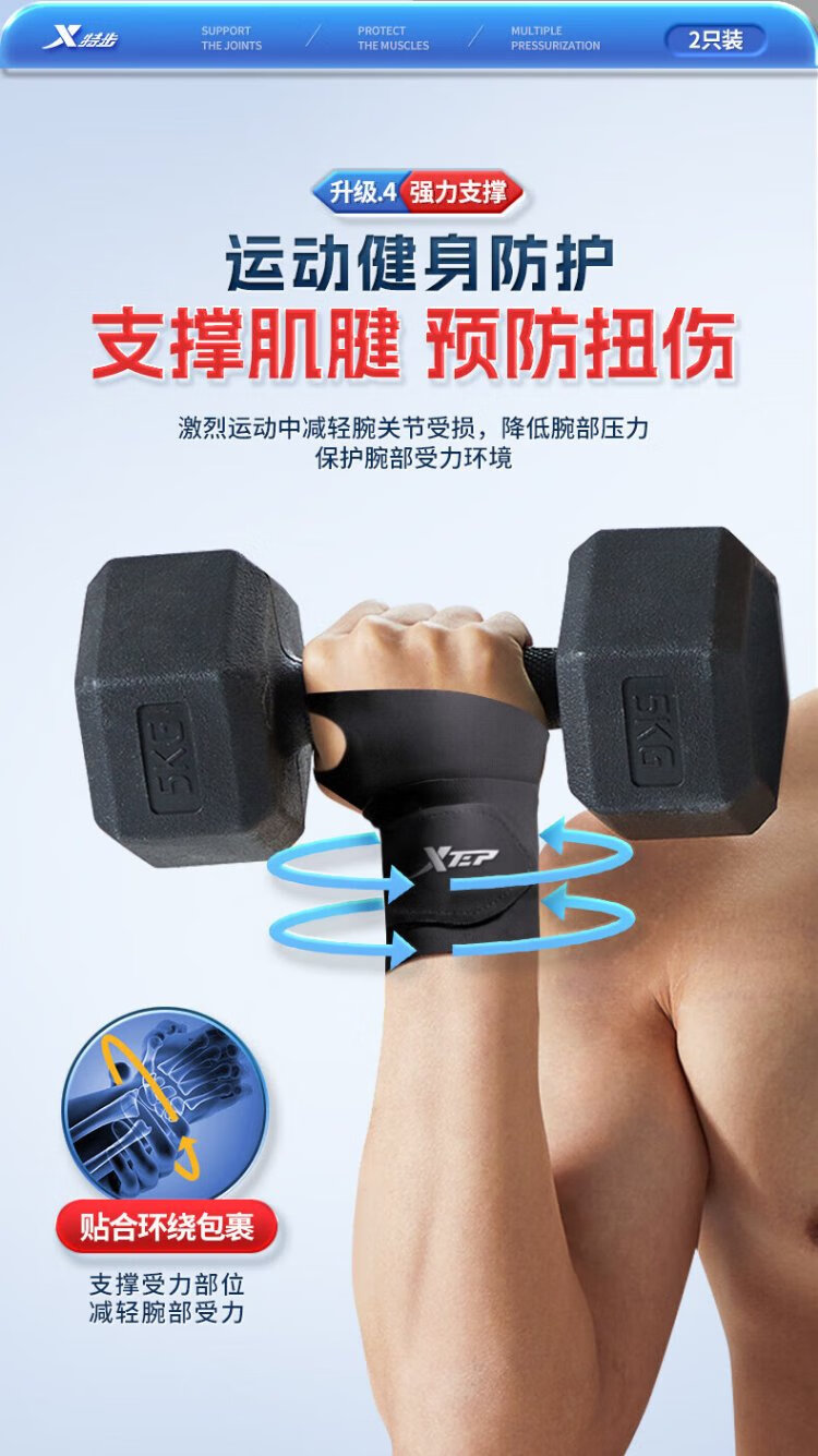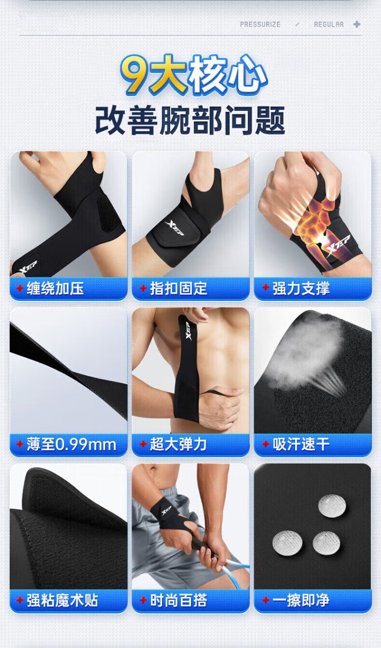 XTEP wristband fitness tfcc tendon sheath and wrist inflammation protective gear anti-sprain tennis basketball volleyball breathable wristband universal left and right light and pressurized fixed support + injury prevention