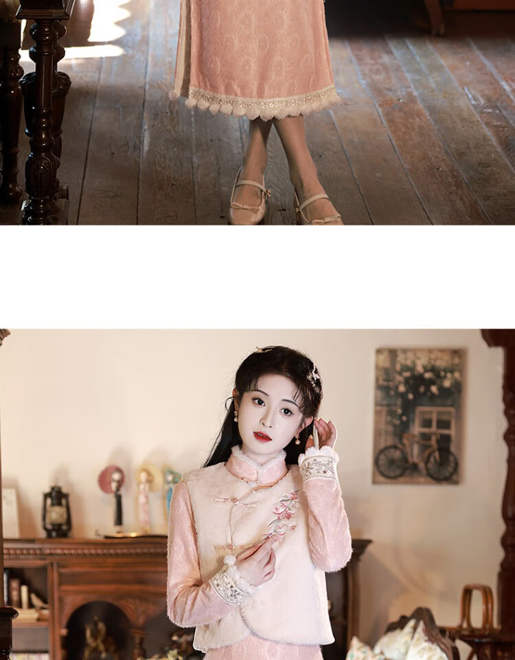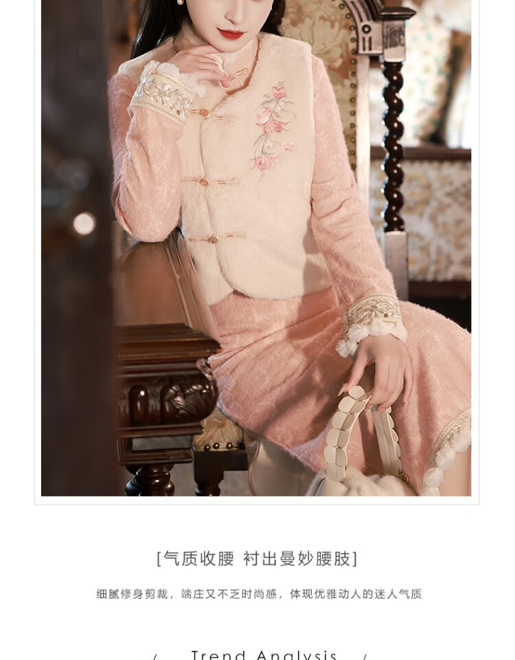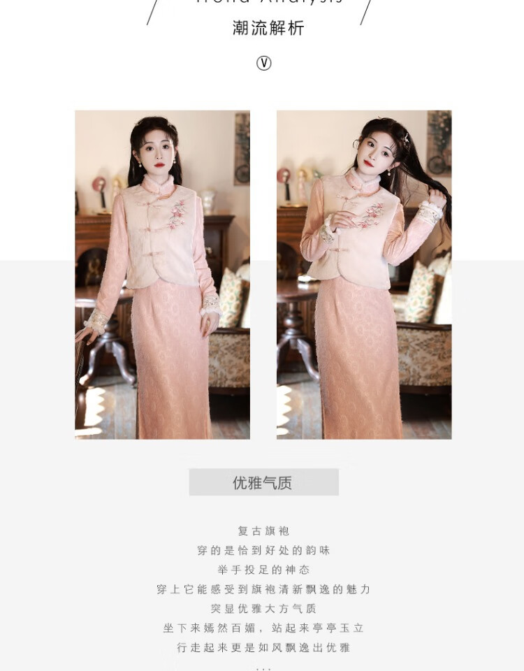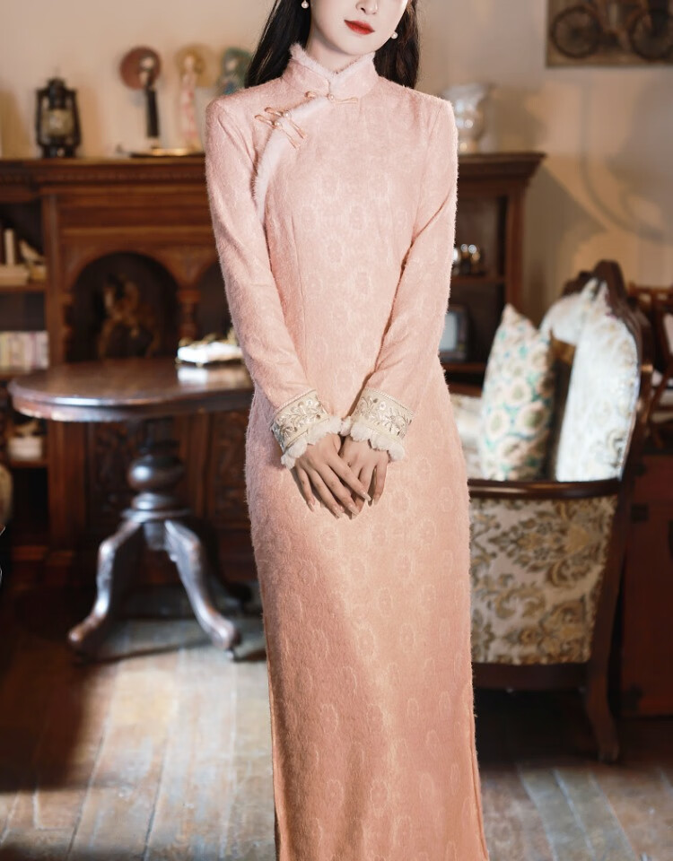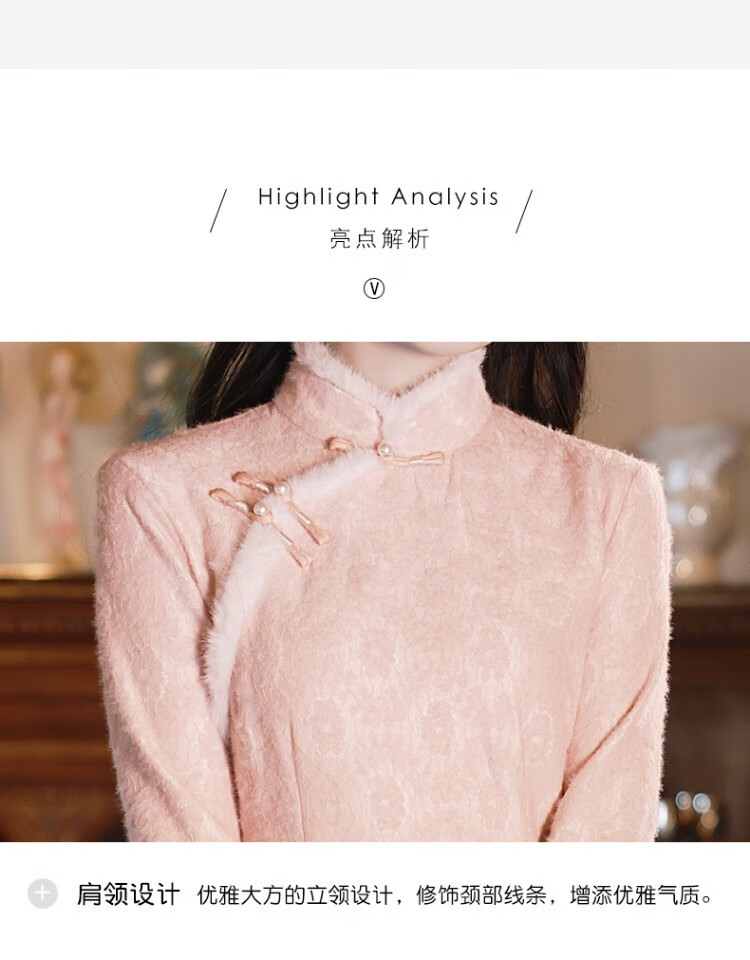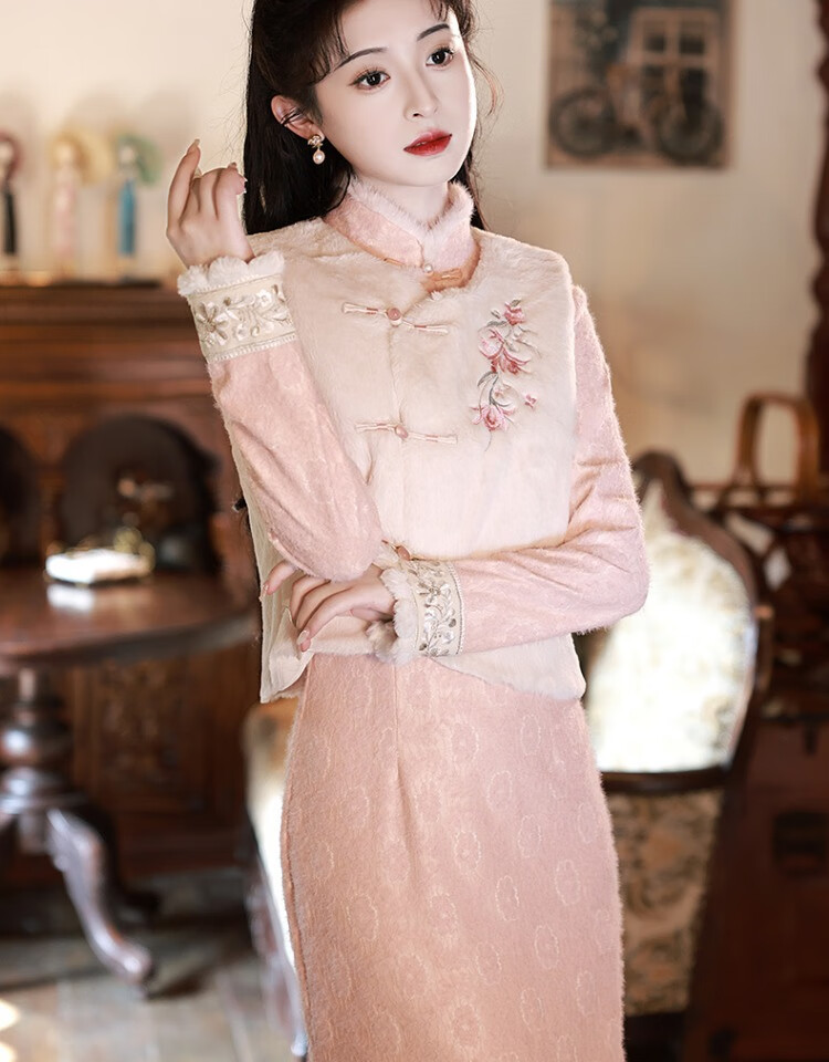 Du Yanzhi pink cheongsam new autumn and winter long-sleeved thickened warm vest suit lady Tang suit new Chinese style winter pink (separate cheongsam) 2XL 120-130Jin Jin equals 0.5kg (1.6m height standard)