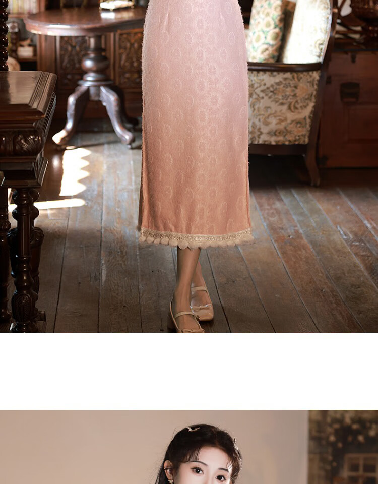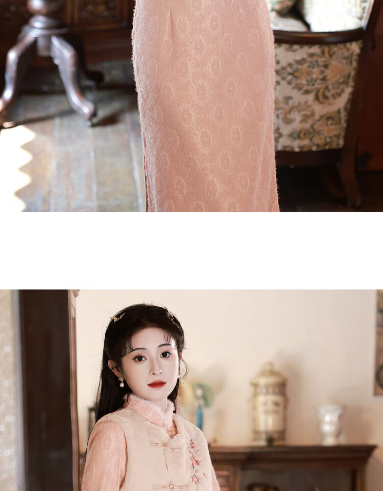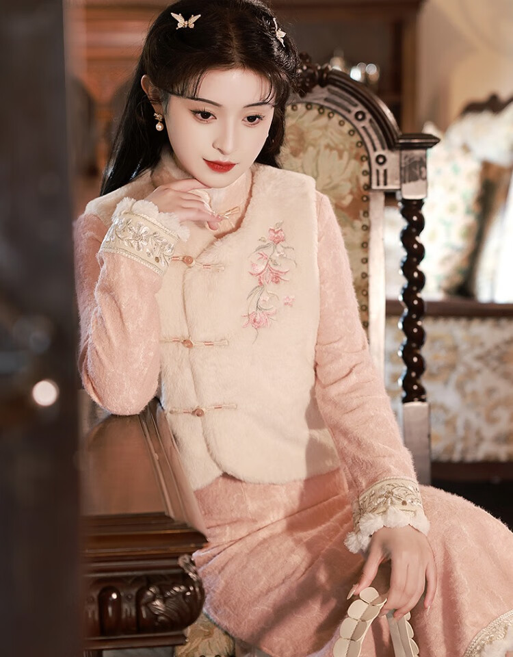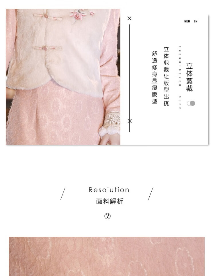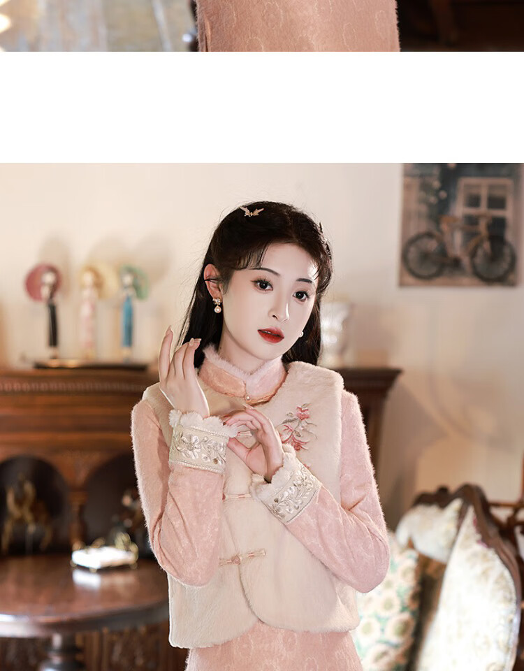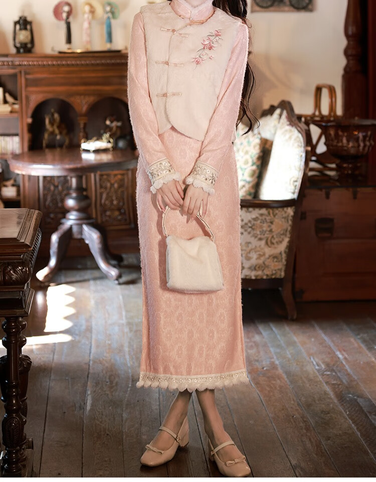 Du Yanzhi pink cheongsam new autumn and winter long-sleeved thickened warm vest suit lady Tang suit new Chinese style winter pink (separate cheongsam) 2XL 120-130Jin Jin equals 0.5kg (1.6m height standard)