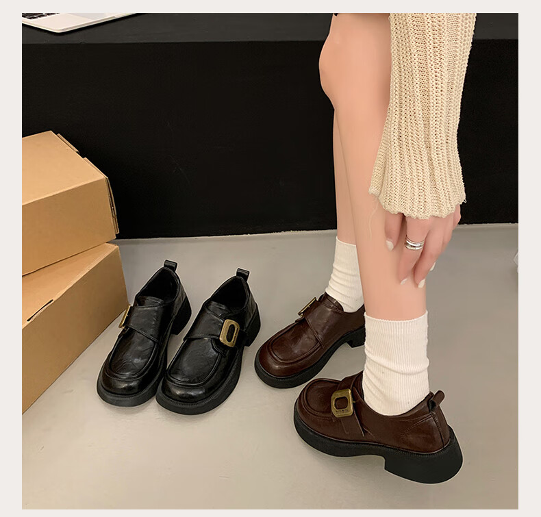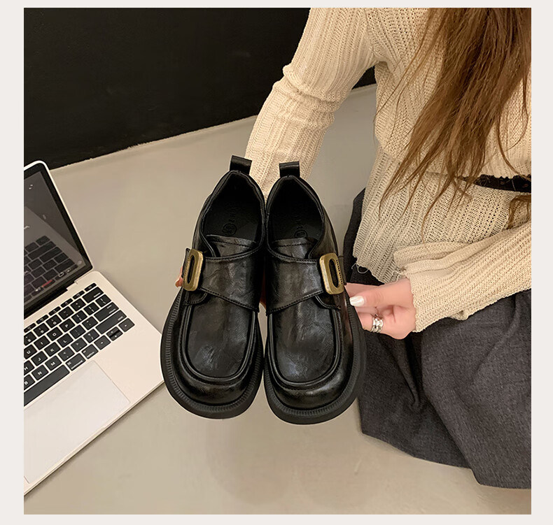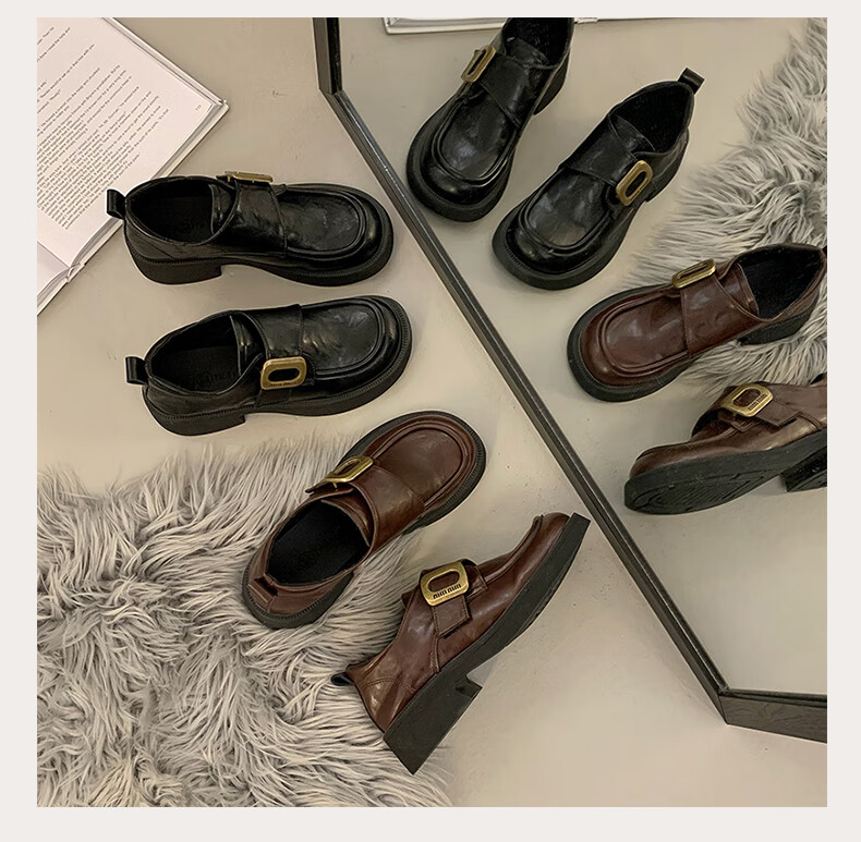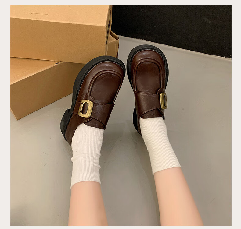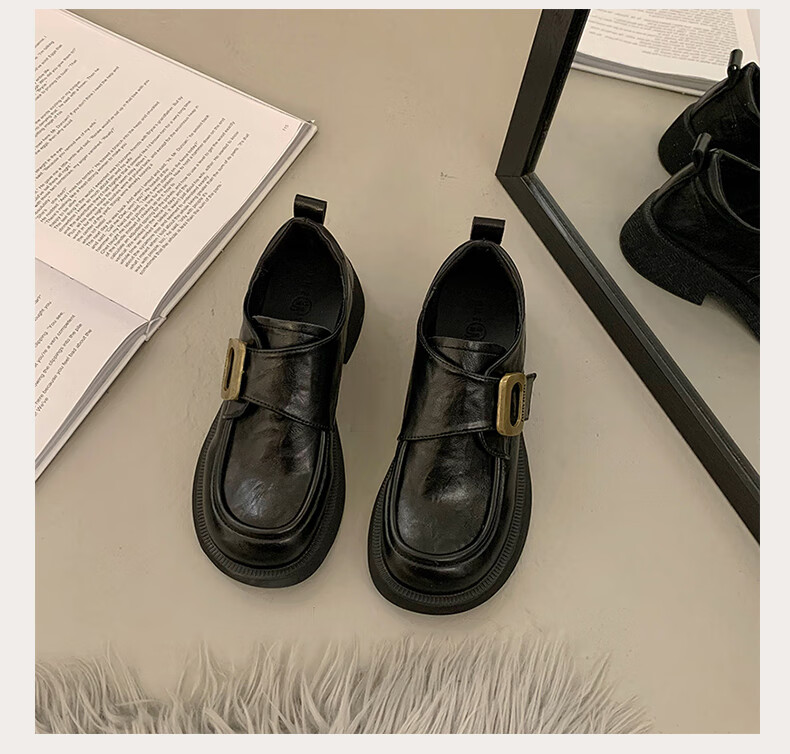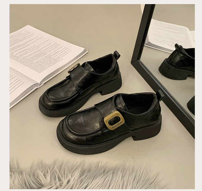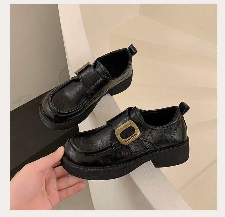 CAMILA KSENIA small leather shoes for women 2025 new versatile fashionable autumn non-slip thick sole retro soft British style soft sole loafers black 38