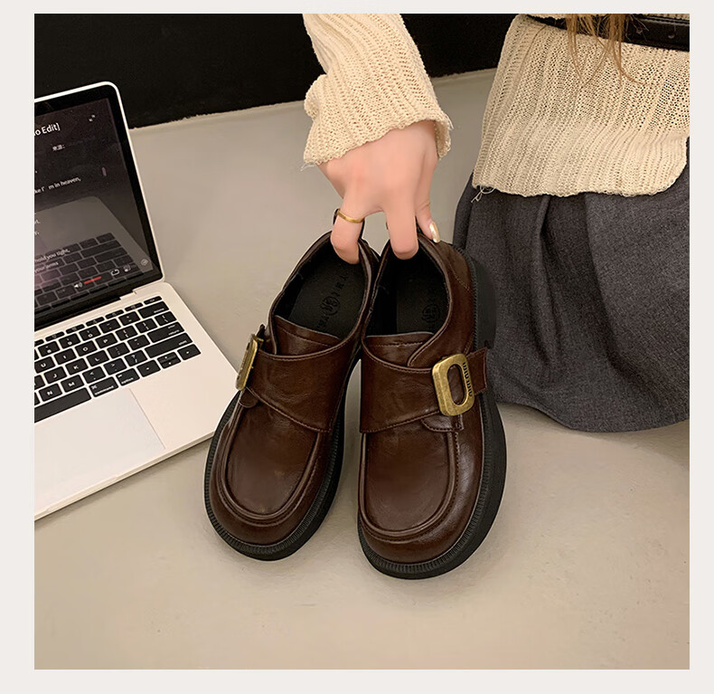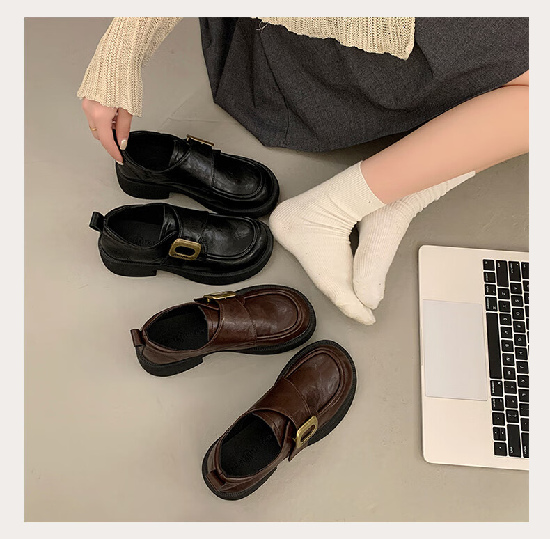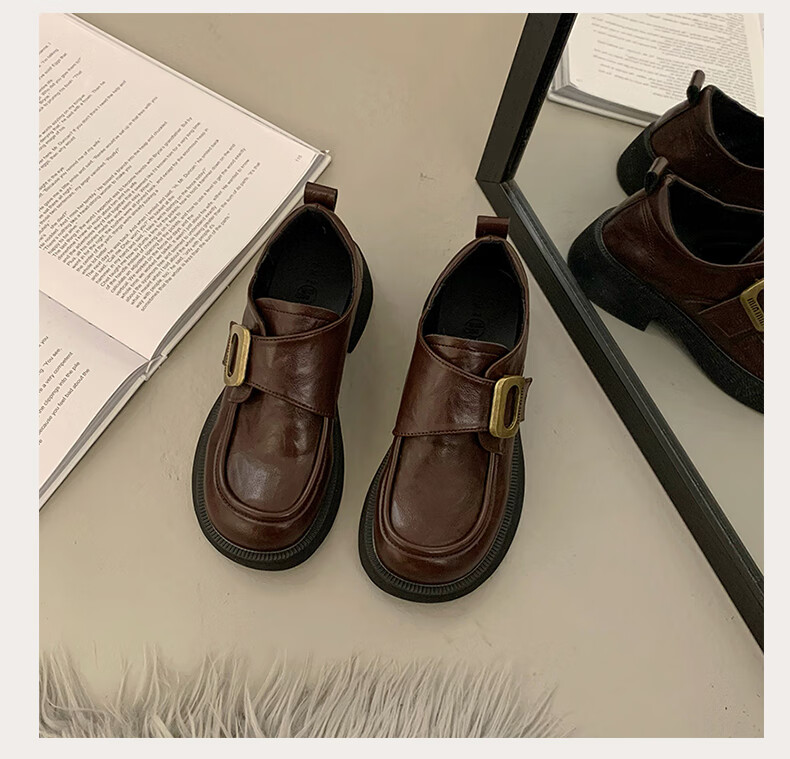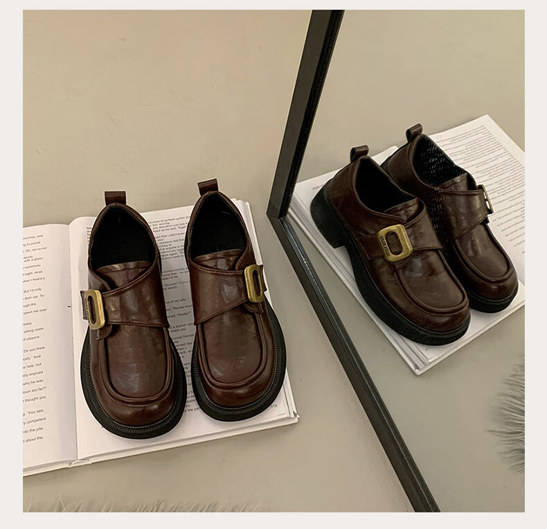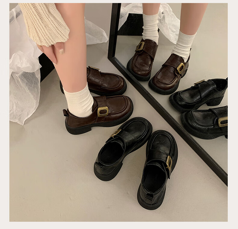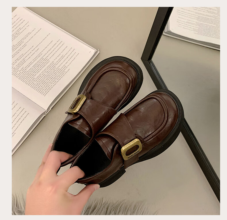 CAMILA KSENIA small leather shoes for women 2025 new versatile fashionable autumn non-slip thick sole retro soft British style soft sole loafers black 38