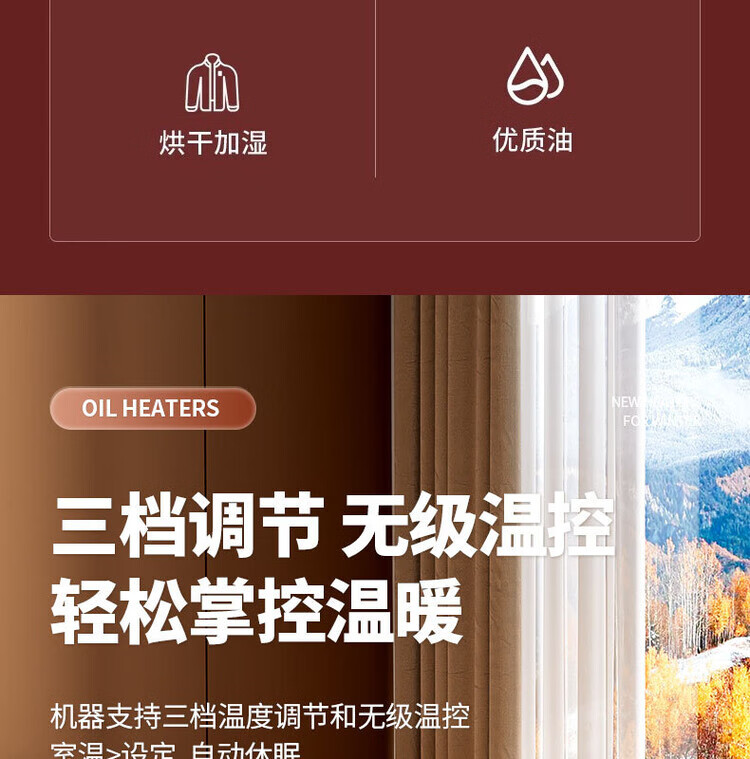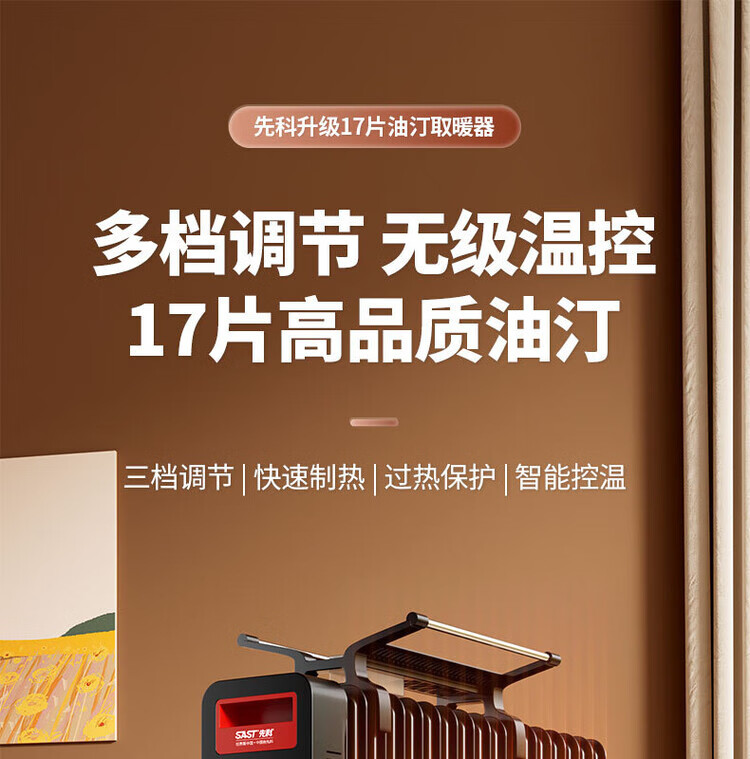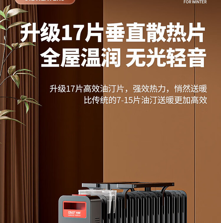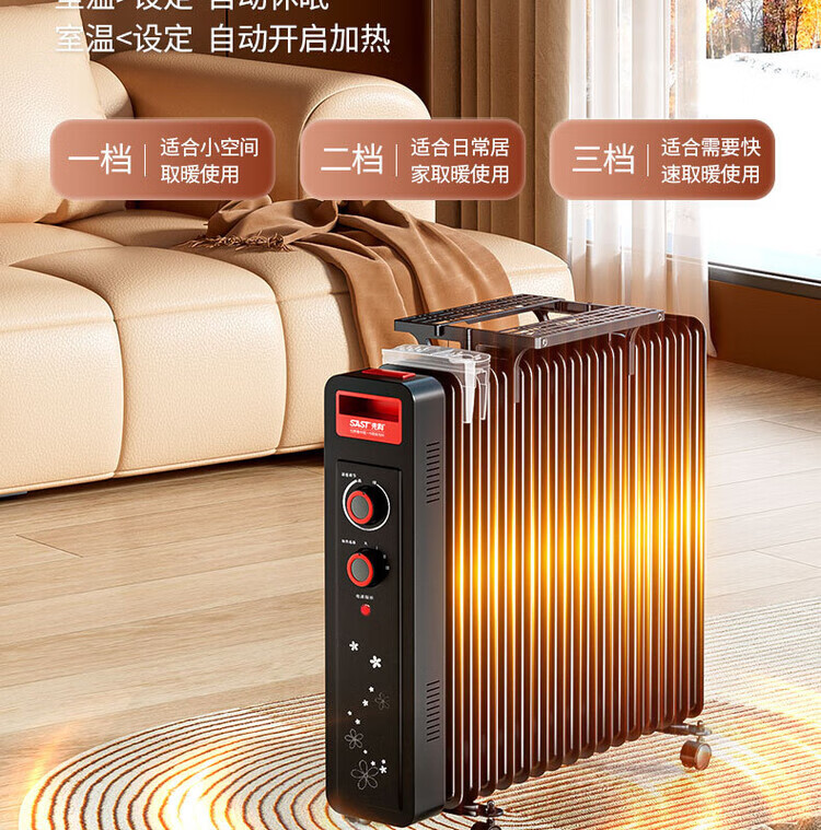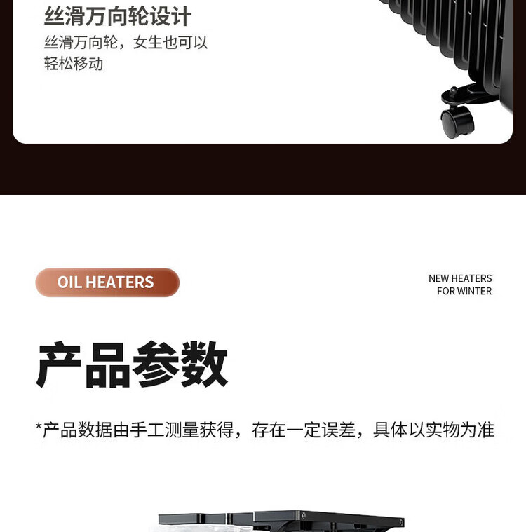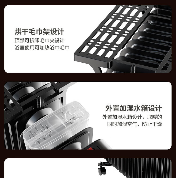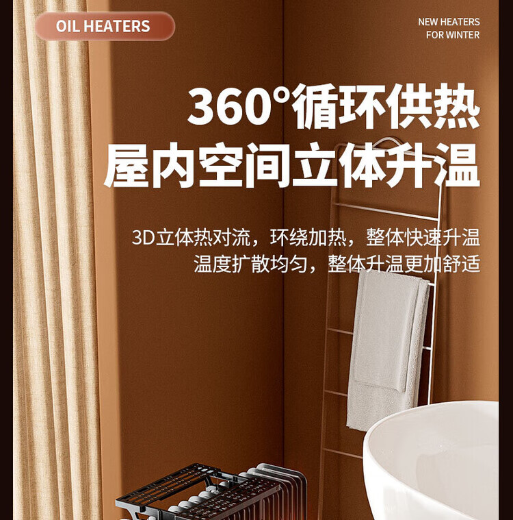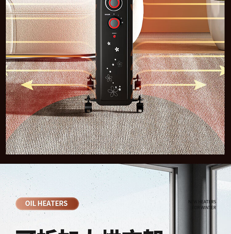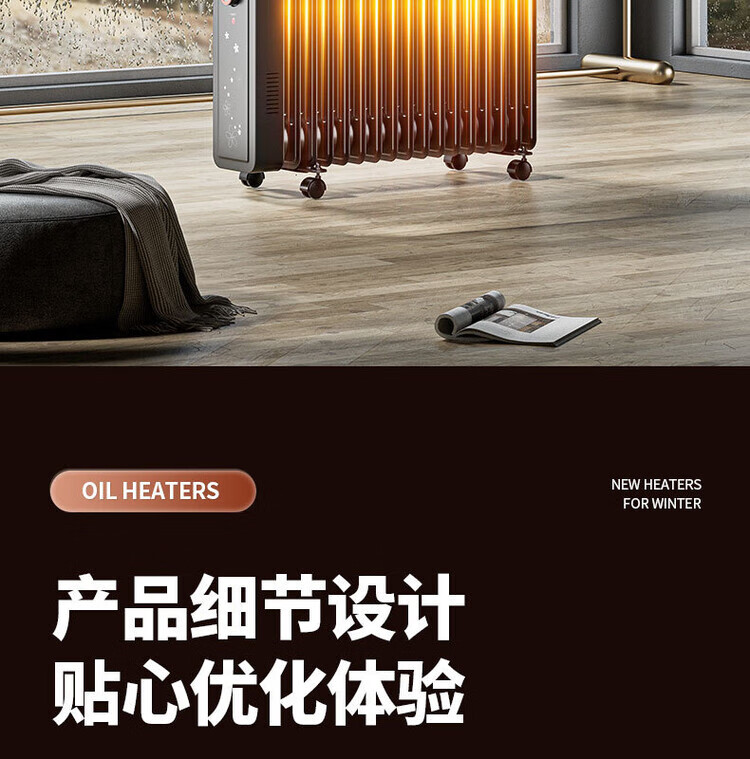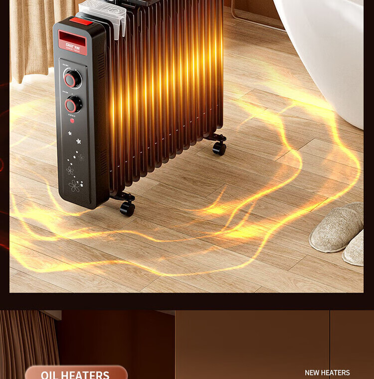 Xianke Electric Oil Heater Home Energy-Saving Constant Temperature Electric Heater Maternal and Infant Quick Heating Large Area Bedroom Radiator Black 9 Pieces Electric Oil Heater