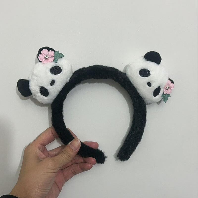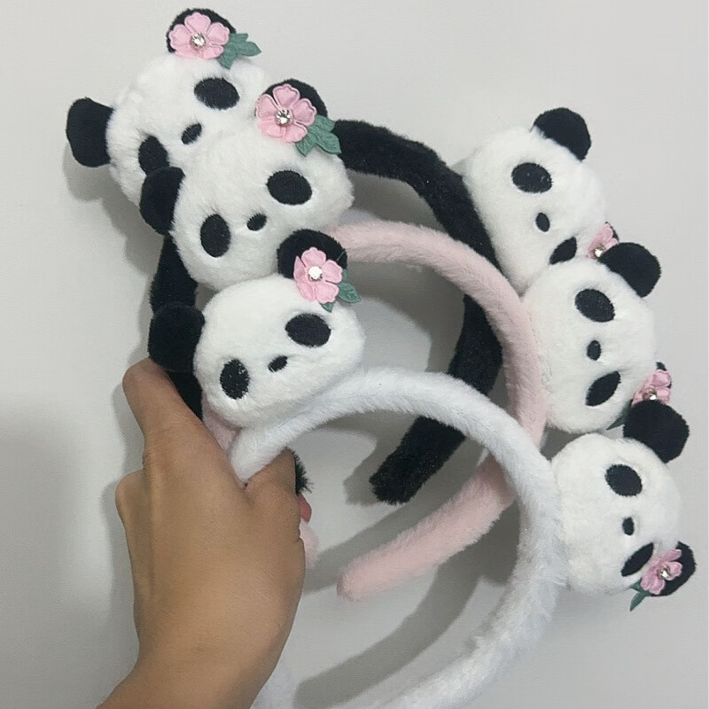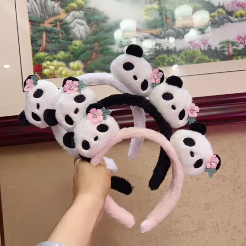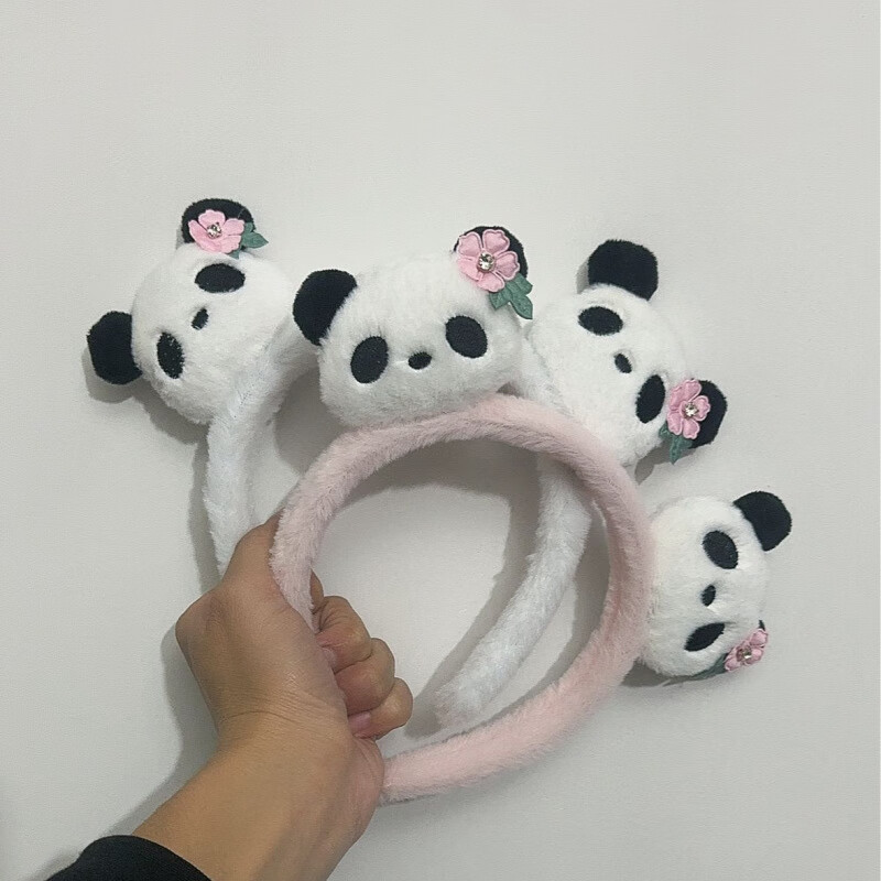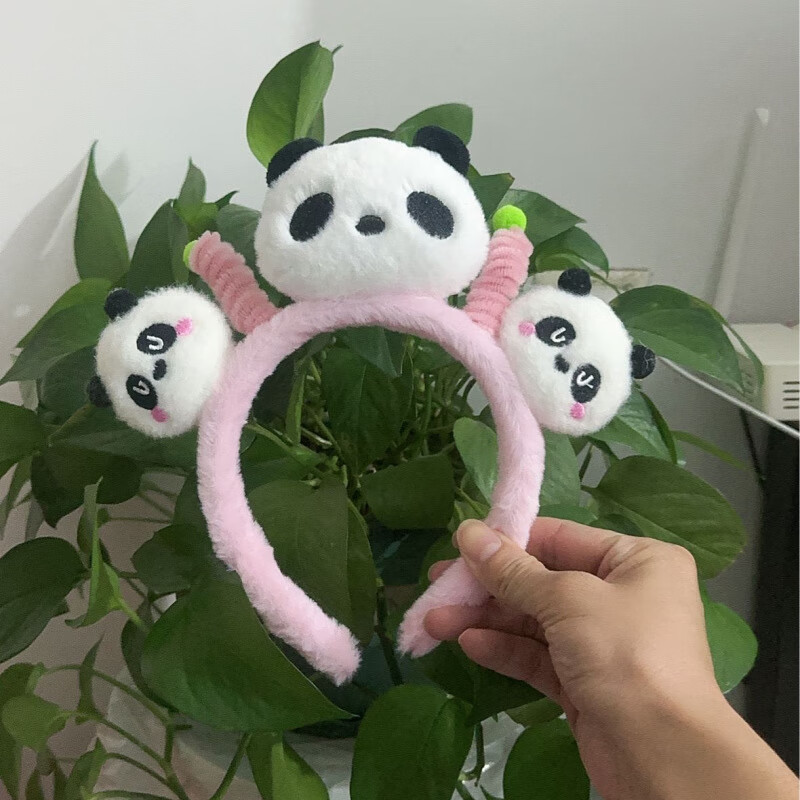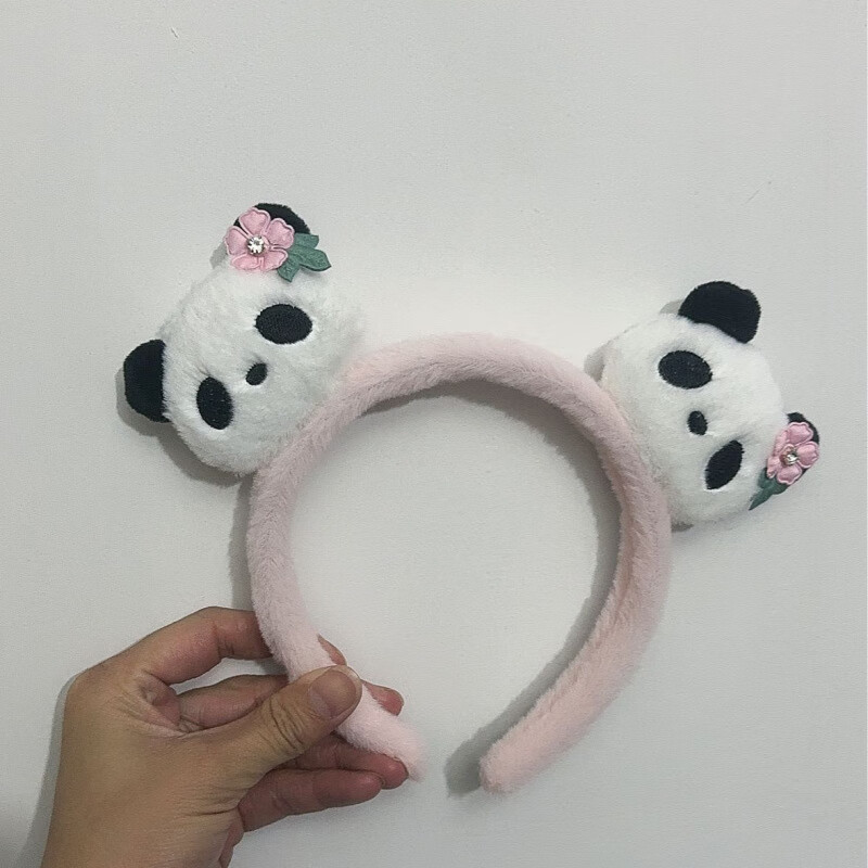 MOYAN Plush Face Wash Panda Huahua Headband Internet Celebrity 2025 New Hairpin Hair Bundle Headband Cute Children's Hairband Plush Huahua-Pink