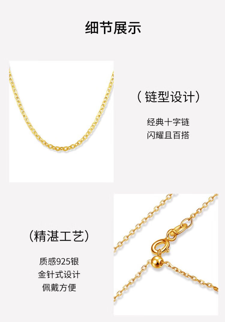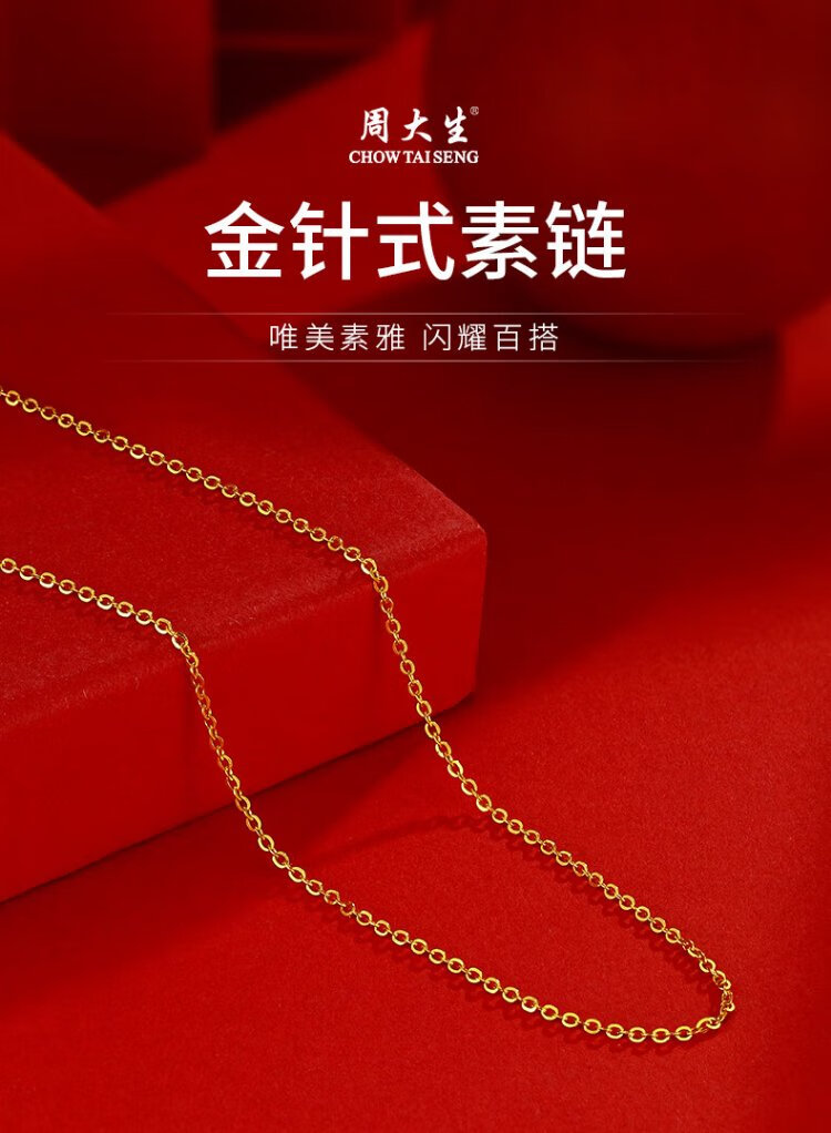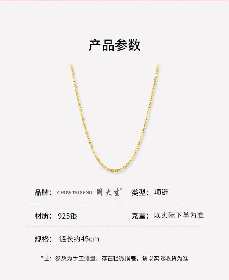 Chow Tai Sang Silver Necklace S925 Silver Ornament Clavicle Chain Women's Gold Jewelry New Year's Gift for Girlfriend Silver Gold-plated Pin Chain