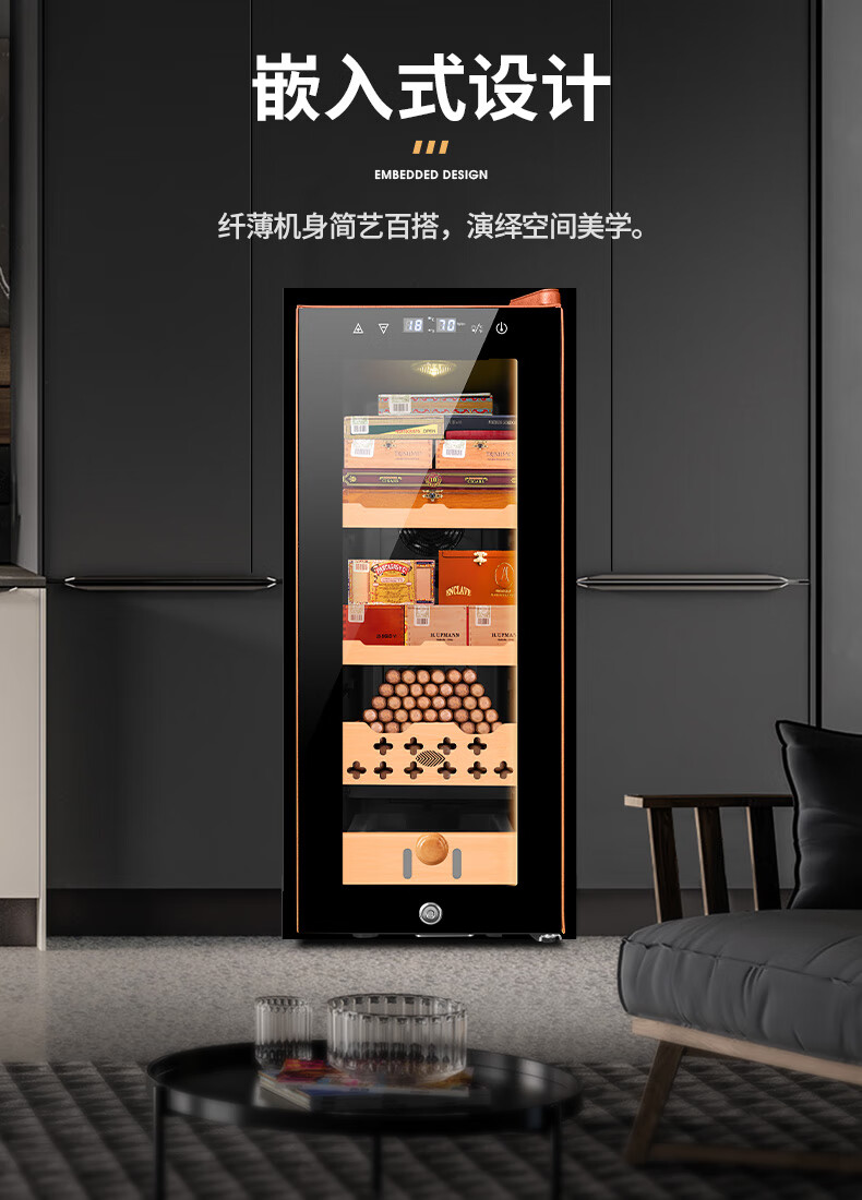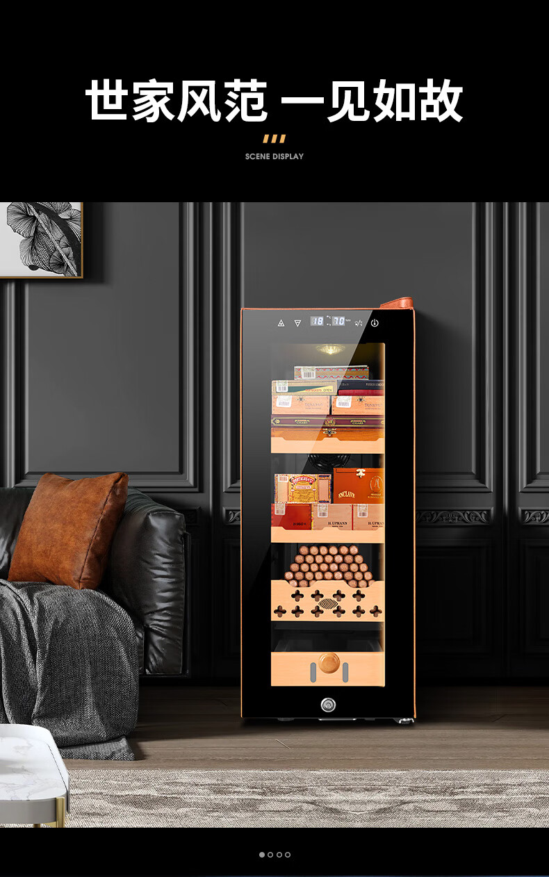 CIGARLOONG 35C cigar cabinet intelligent temperature control and humidity control Spanish cedar wood shelf alcohol moisturizing cabinet dual-core dual-core refrigeration household small mini energy-saving silent electronic cigar cabinet black