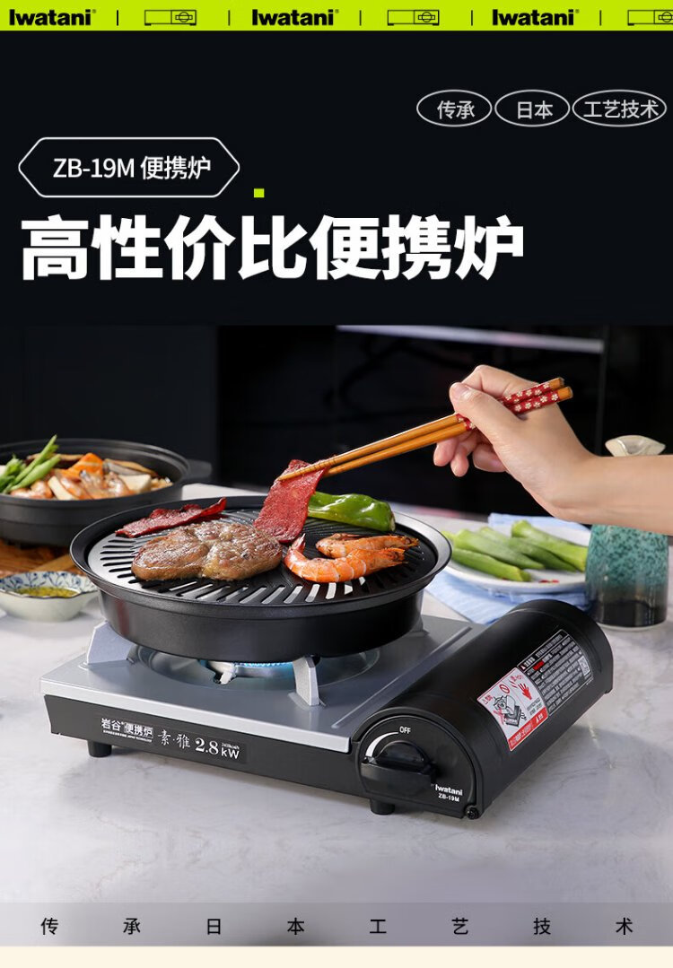 Iwatani portable cassette stove picnic camping barbecue stove household gas stove gas stove hot pot Iwatani portable cassette stove ZB-19M elegant classic model