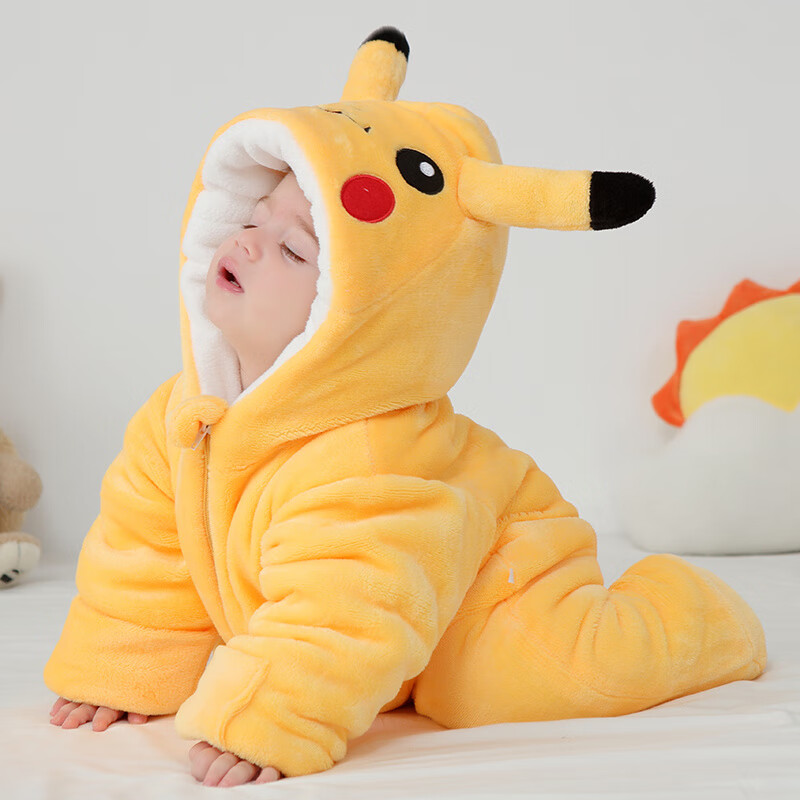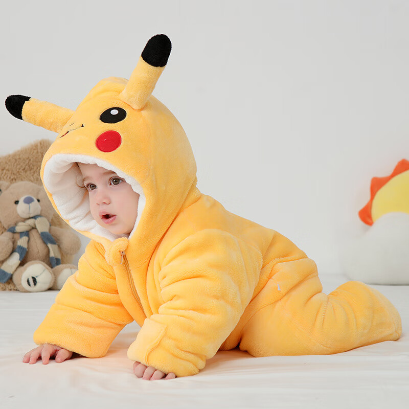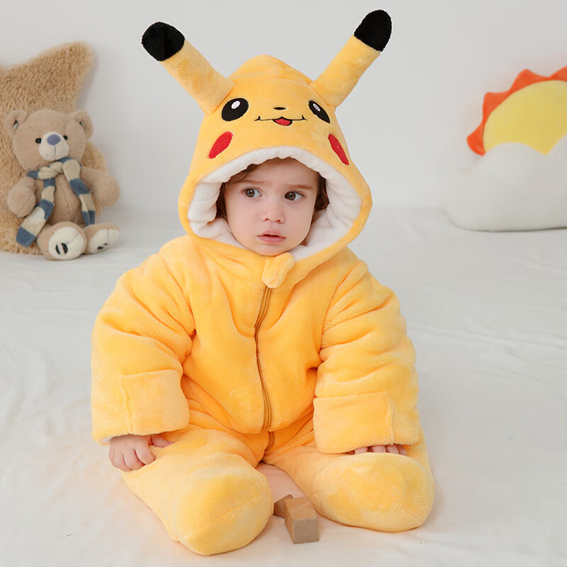 Disney (Disney) baby thermal jumpsuit thickened baby hoodie plus velvet outing clothing cartoon crawler with foot padded clothes for autumn and winter Elf winter style plus velvet and thickening-covers hands and feet Size 59 recommended for newborns