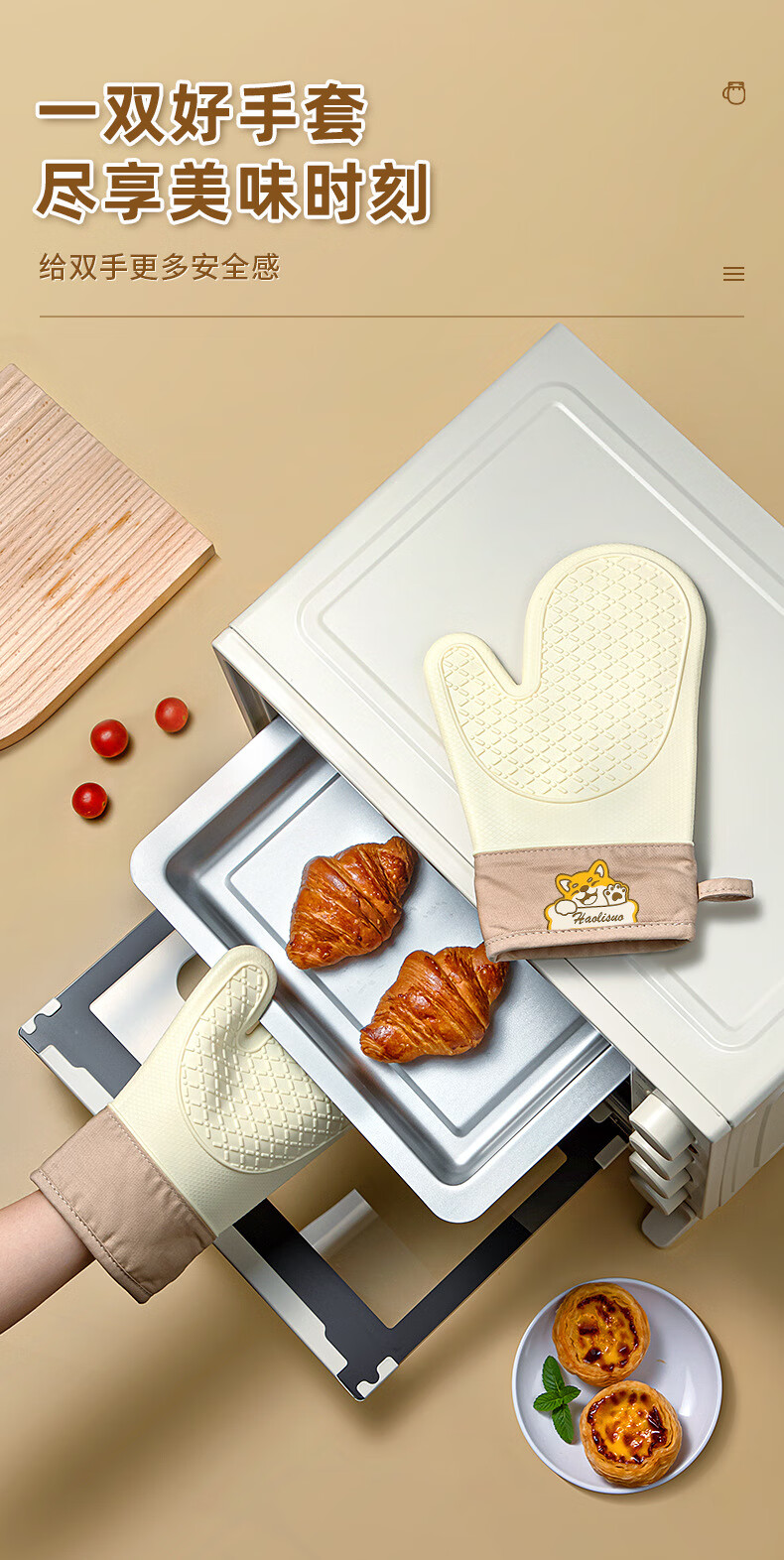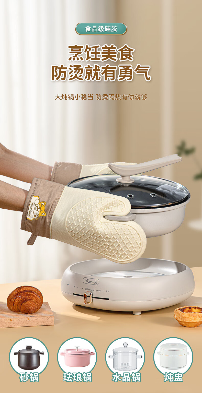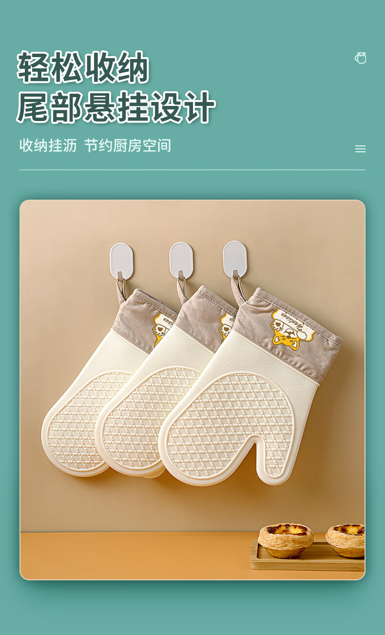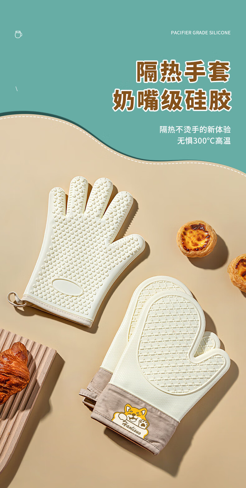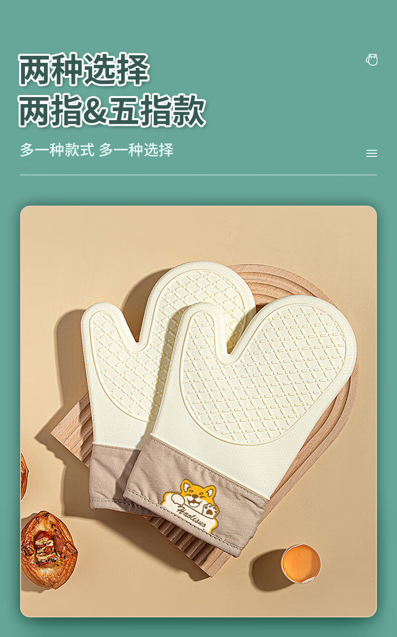 Xiderun silicone insulation gloves thickened non-slip high temperature oven gloves baking anti-scalding kitchen microwave oven special hand clip two fingers - gray Shiba Inu 1 piece