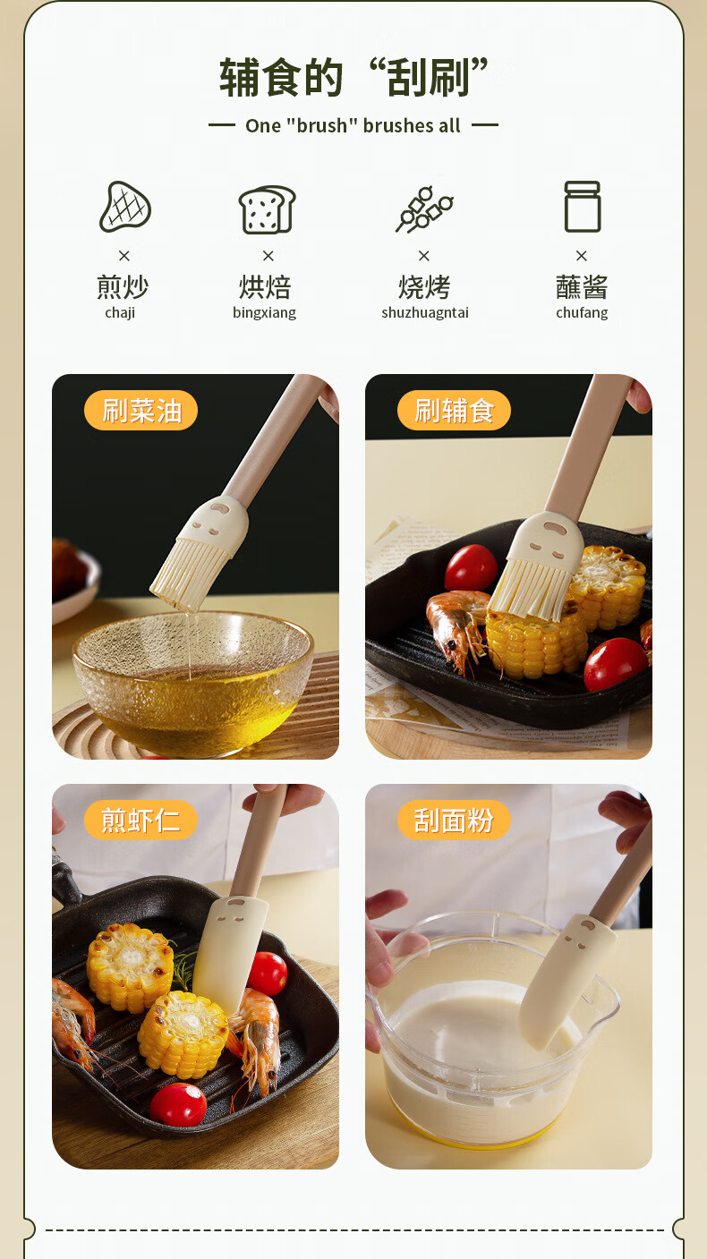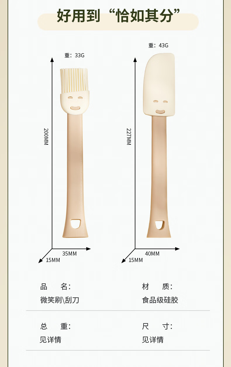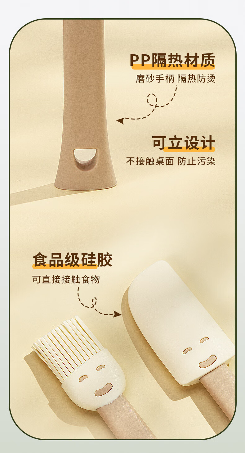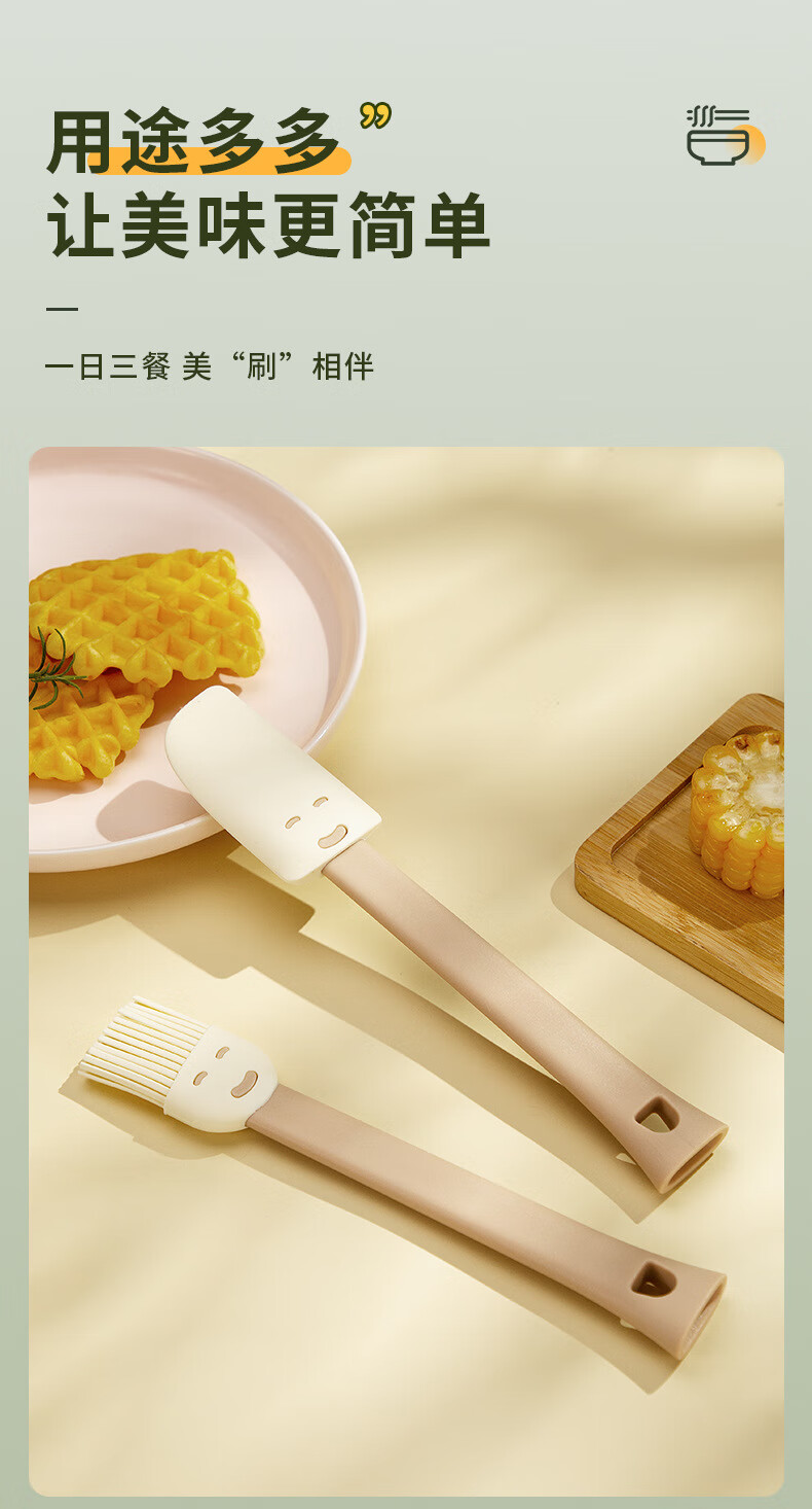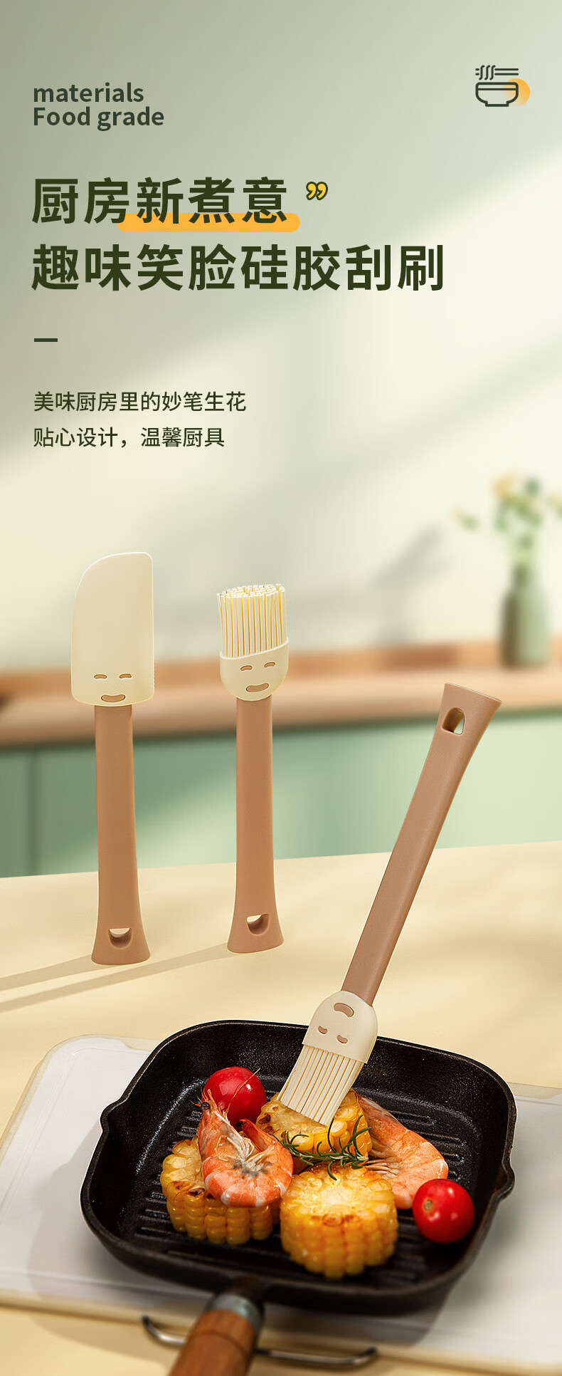 Xiderun Smiley Face Vertical Silicone Spatula Oil Brush Two-piece Set Home Baking Tools Cream Spatula Barbecue Brush Scraper Smiley Face Oil Brush Early Price