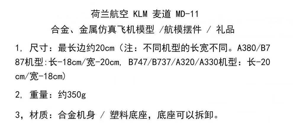 20CM McDonnell Douglas 11 aircraft model MD Dutch American Eastern Airlines UPS aviation alloy simulation static aircraft model ornaments 20CM alloy Eastern Airlines MD pulley + apron
