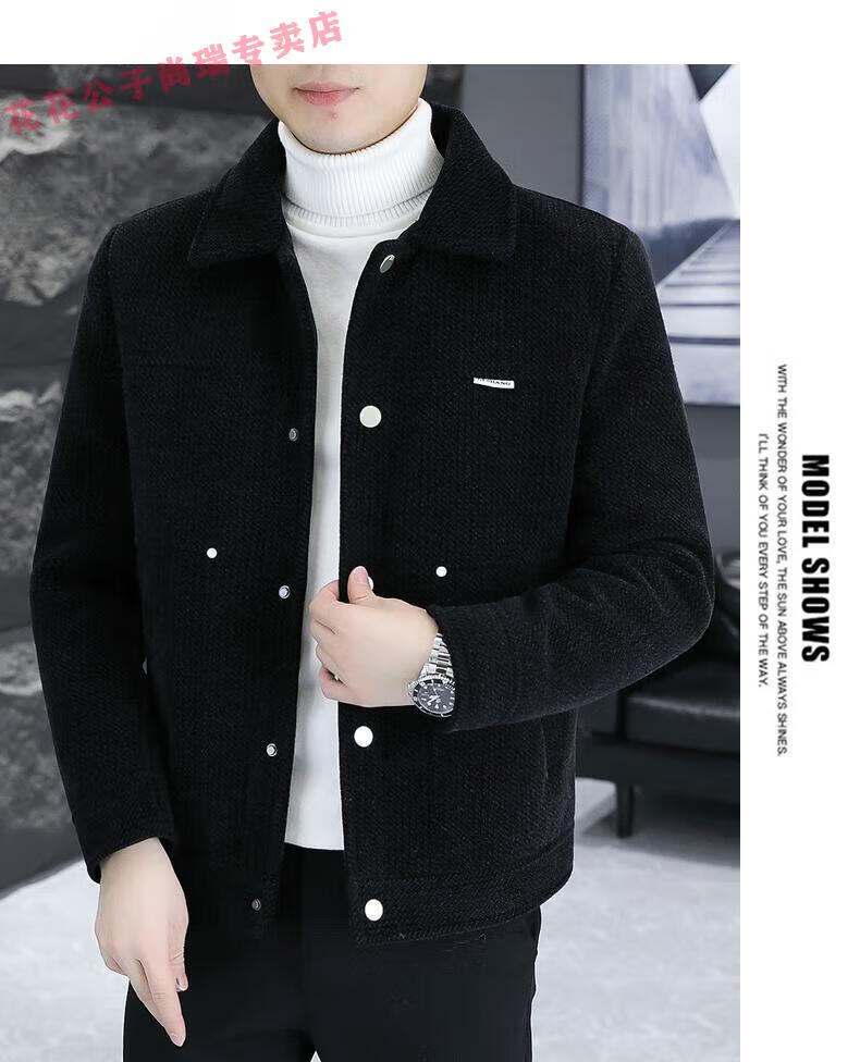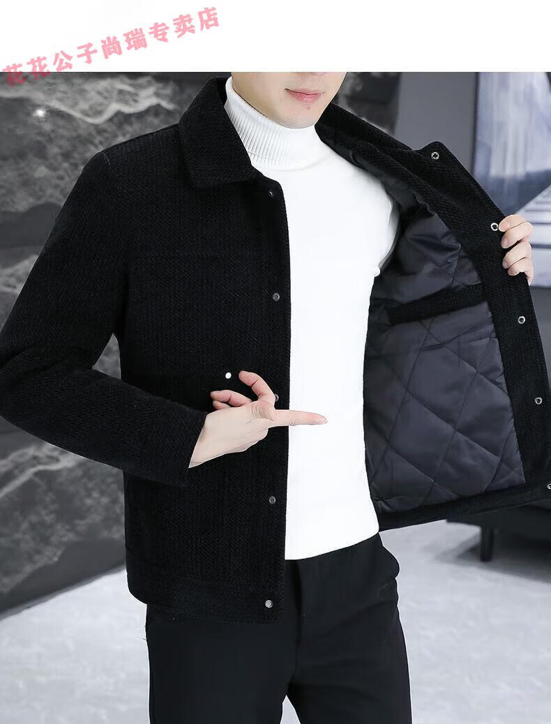 Playboy Autumn and Winter Cotton Thickened Jacket Men's Trendy Brand Casual Youth Short Top Lapel Handsome Men's Thick Work Jacket Black L