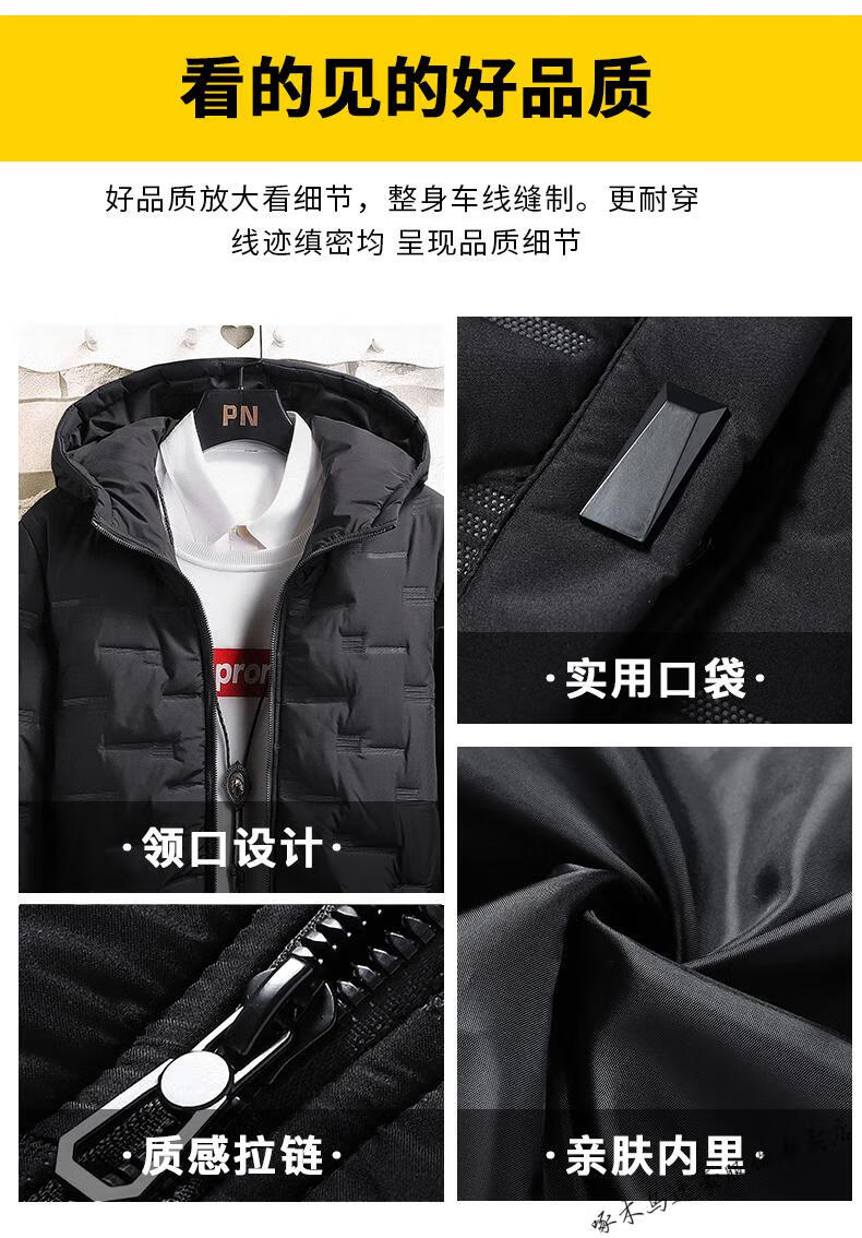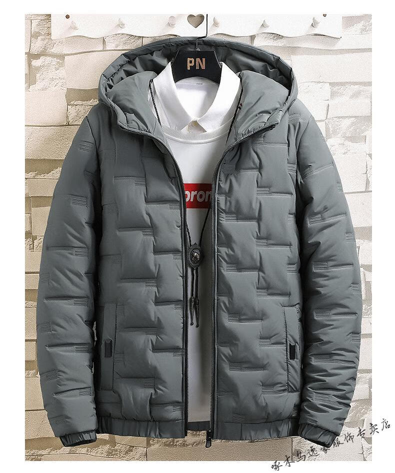 PLAYBOY brand men's clothing 2026 hooded men's winter jacket autumn and winter warm casual simple large size trendy black XL