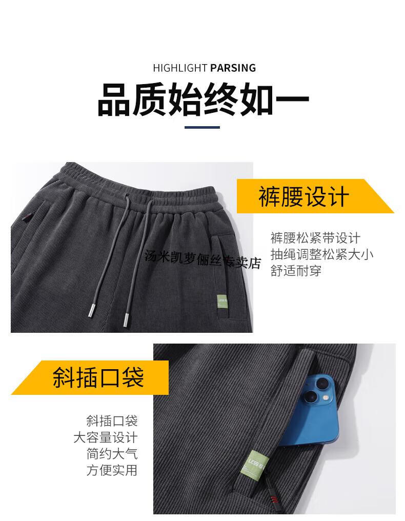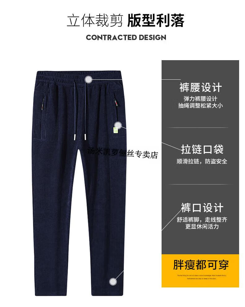 TOME BORNEK corduroy plus velvet pants men's winter thickened men's sports pants leggings sweatpants men's corduroy pants cold protection blue straight plus velvet 3XL (weight 155-175Jin Jin is equal to 0.5 kg)