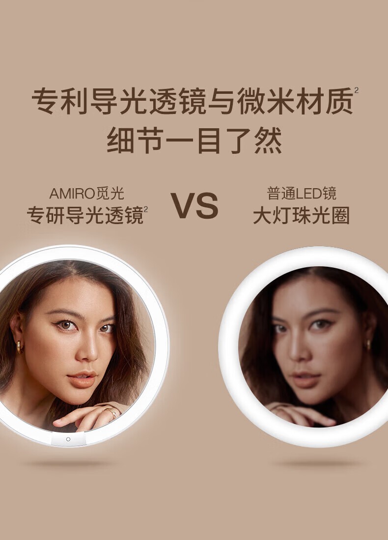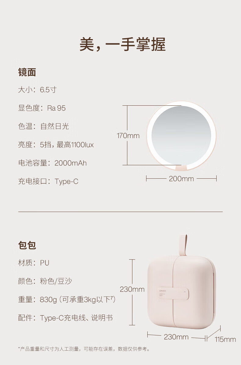 AMIRO bag makeup mirror with light led vanity mirror AML115J portable foldable smart beauty mirror pink