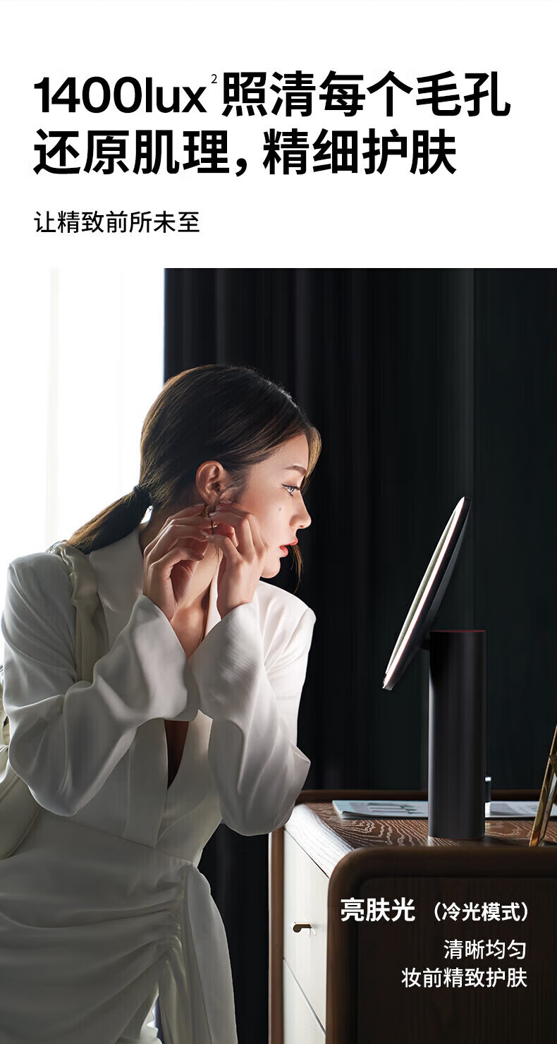 Miguang AMIRO makeup mirror with light led desktop dressing mirror O2 high-definition intelligent fill-in light dormitory beauty mirror small black mirror