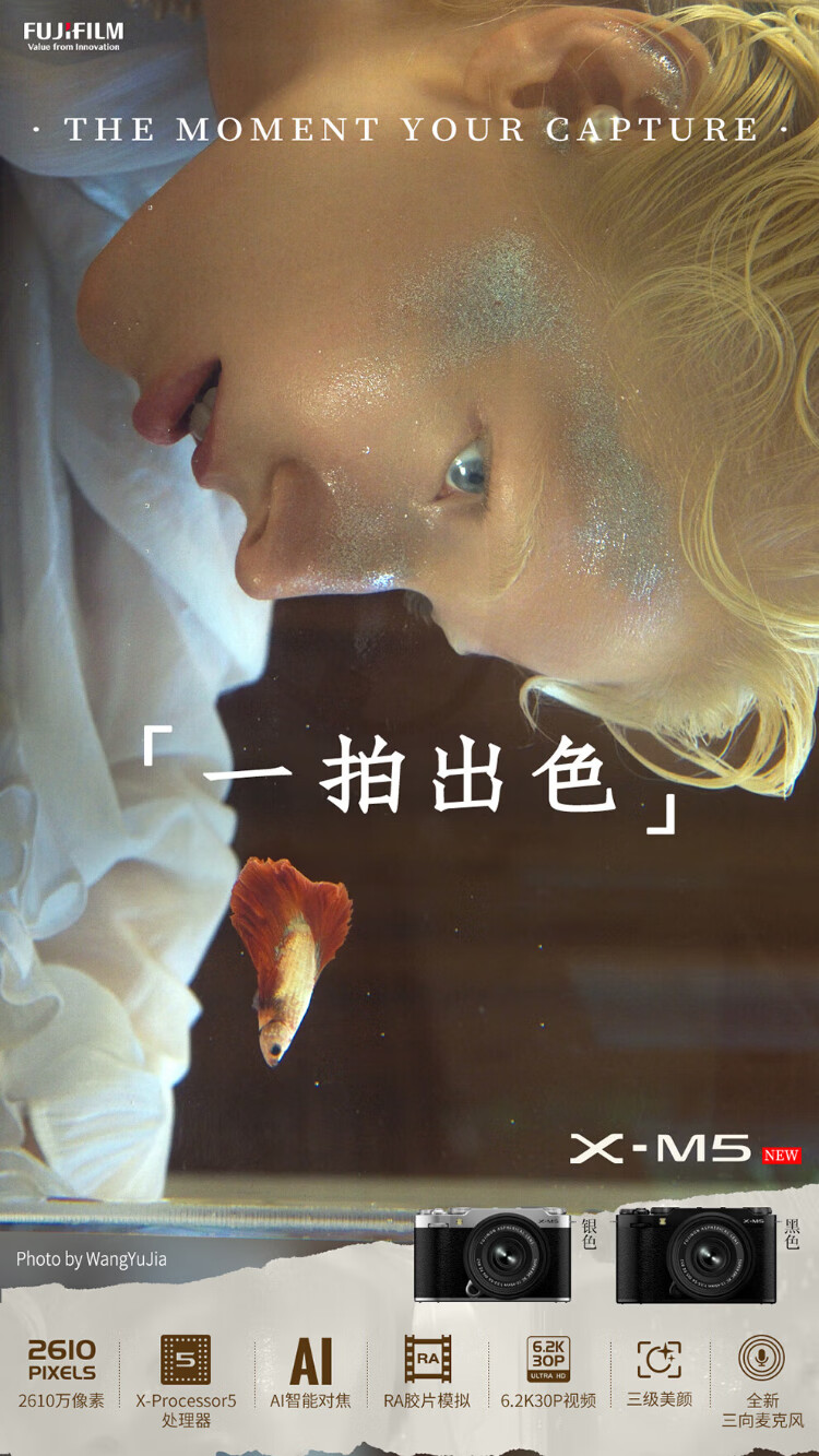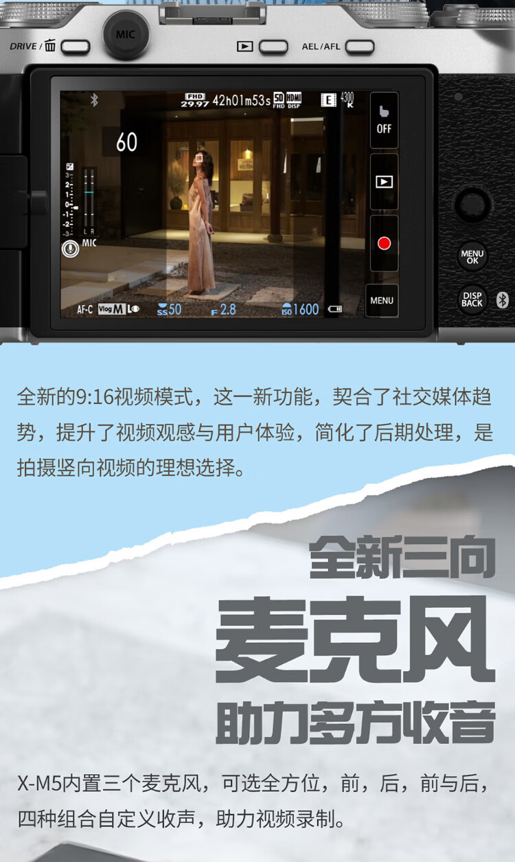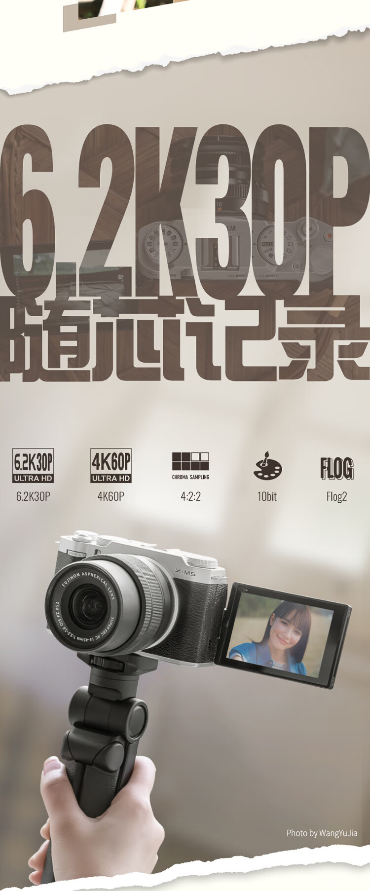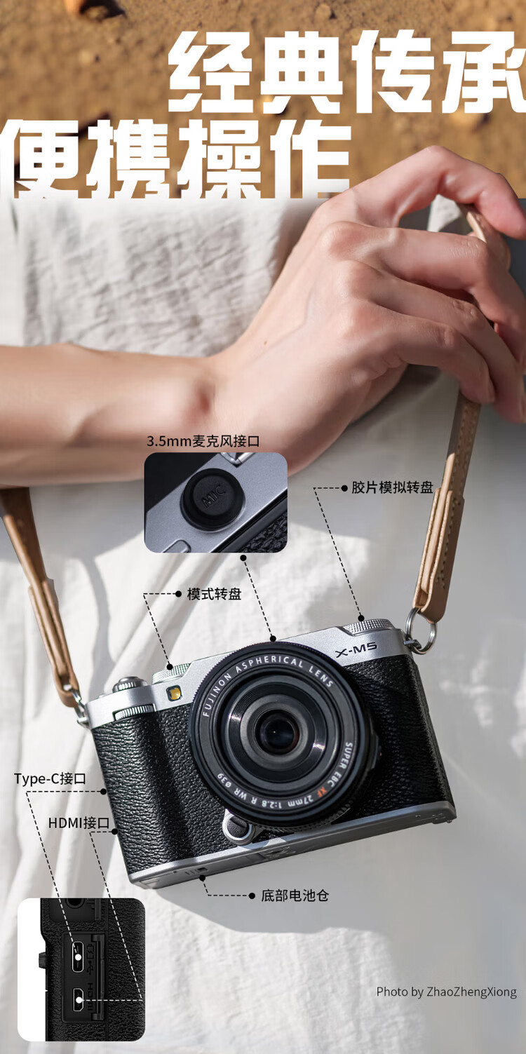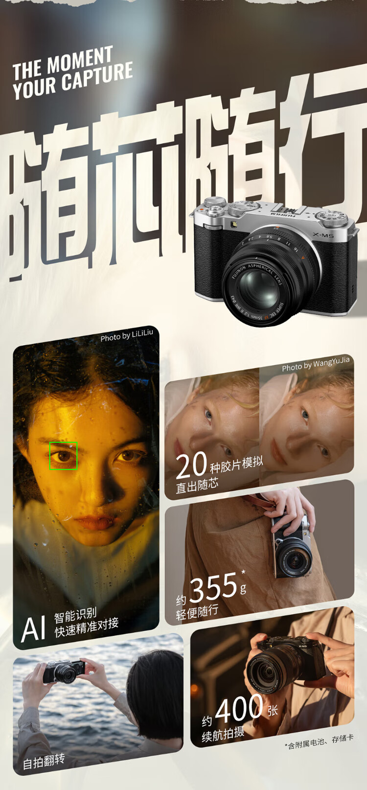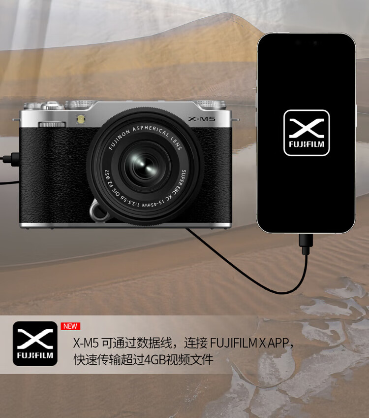 FUJIFILM X-M5 XM5 mirrorless mirrorless camera vlog camera lightweight AI smart focus 20 film simulations silver X-M5+XC15-45 lens set