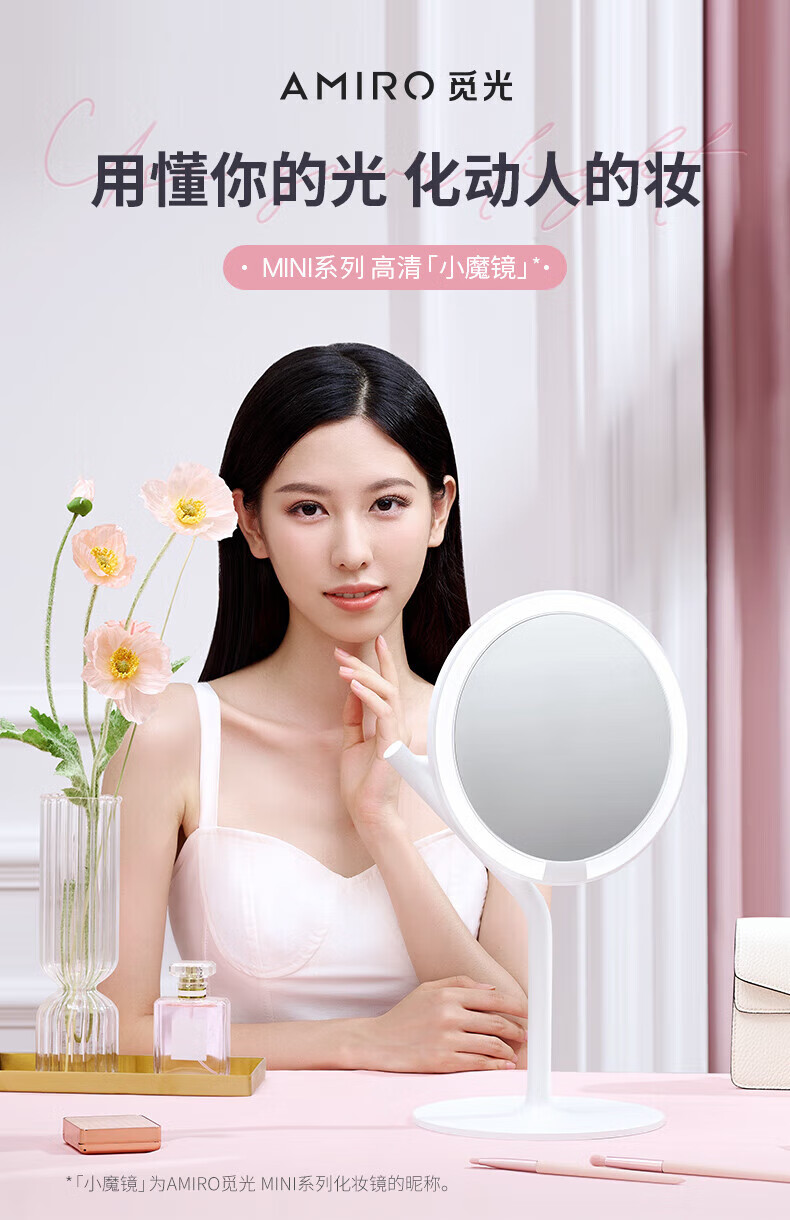 AMIRO makeup mirror with light led desktop dressing mirror mini2s smart light-filling beauty mirror for girlfriend and wife minimalist white
