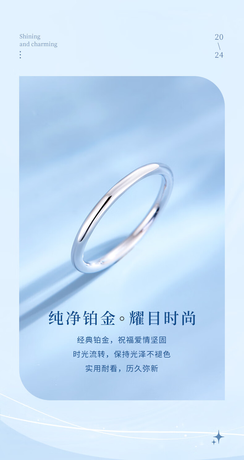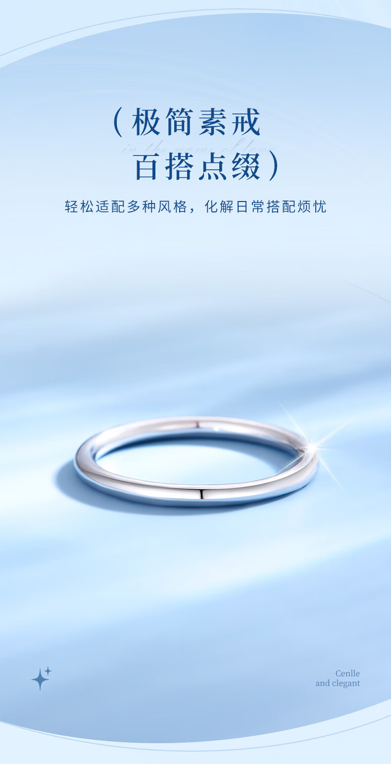 CHINA GOLD platinum ring small aperture platinum ring niche fashion women's ring practical birthday gift for girlfriend on Valentine's Day No. 15 aperture platinum ring about 1.6g