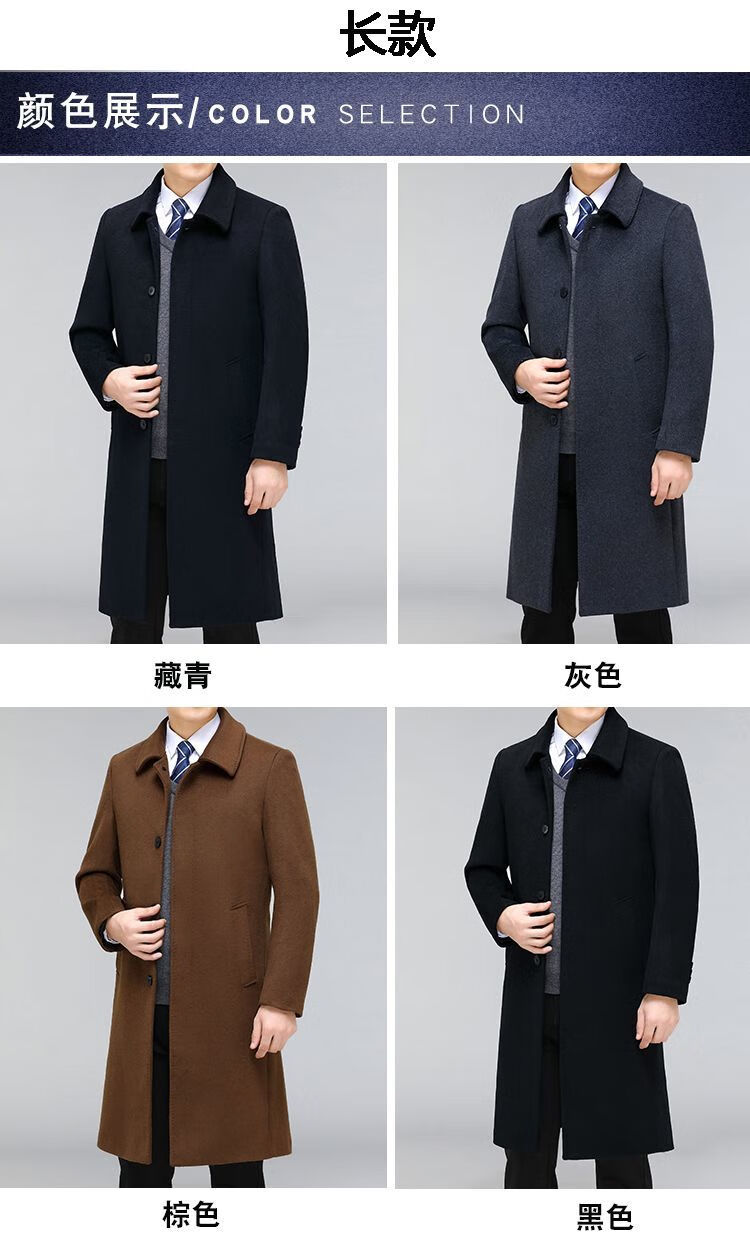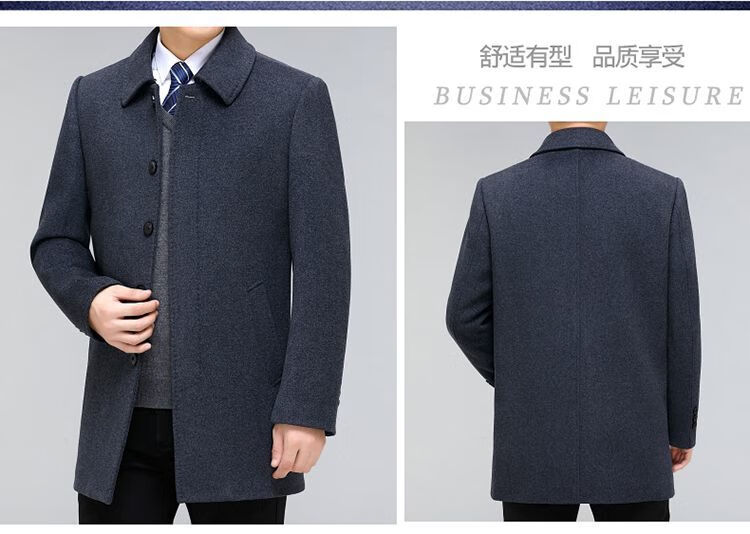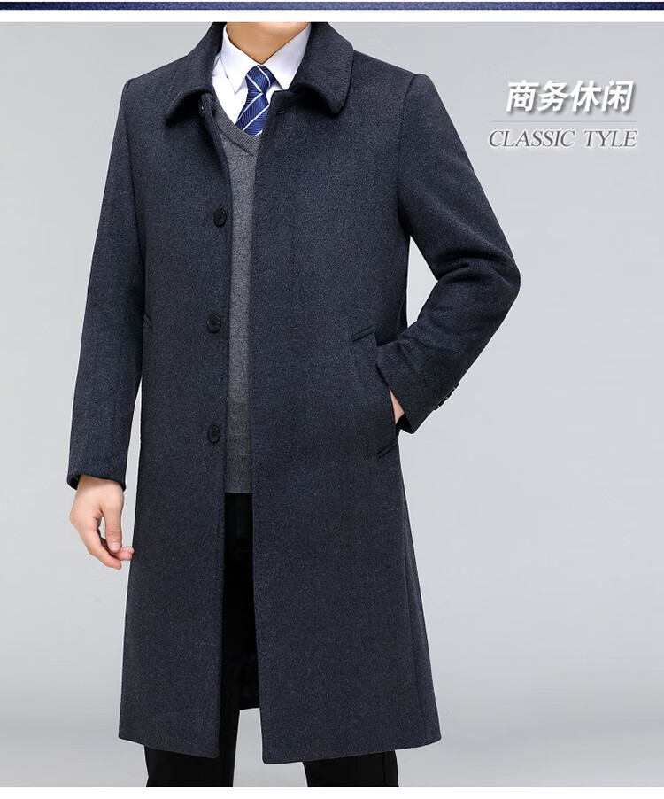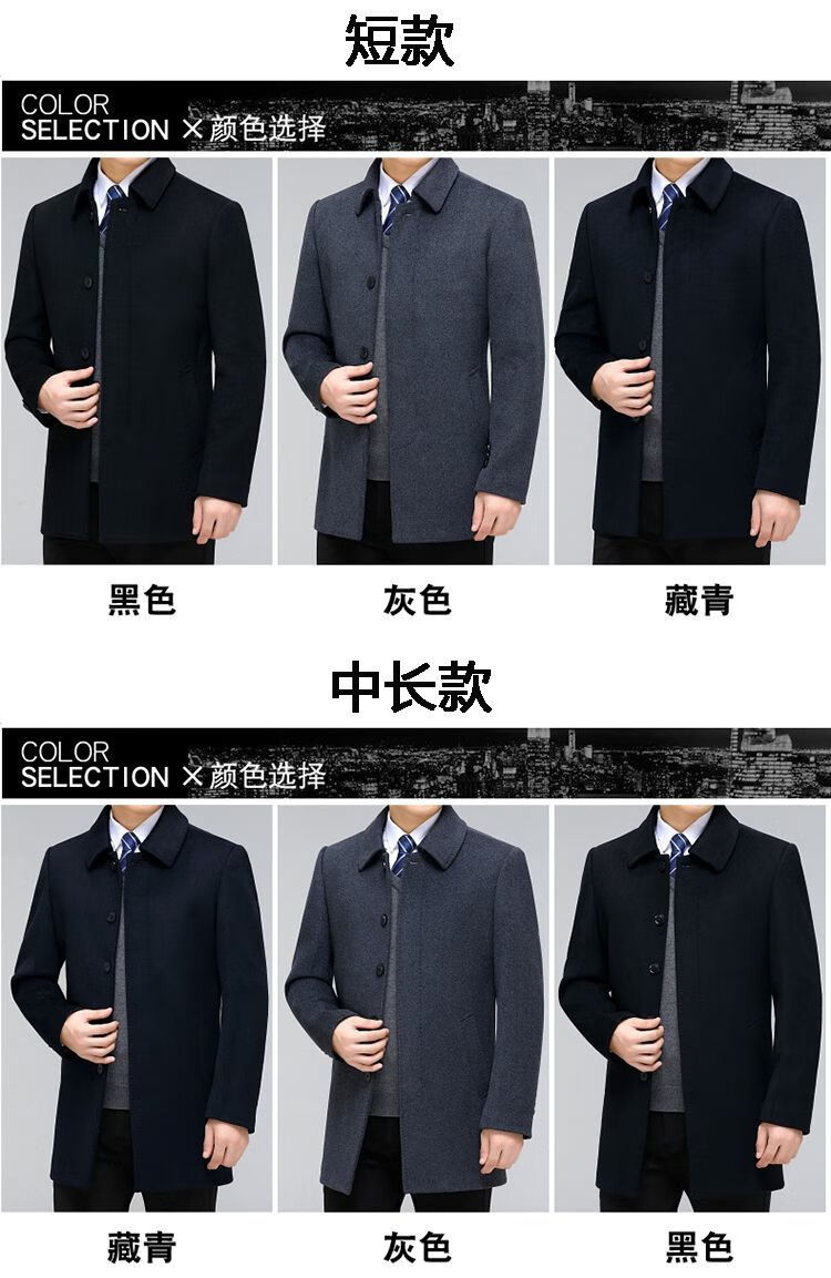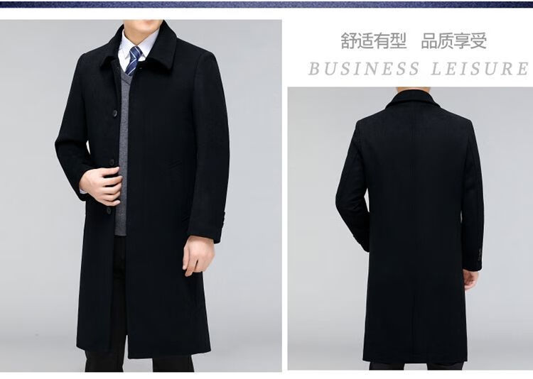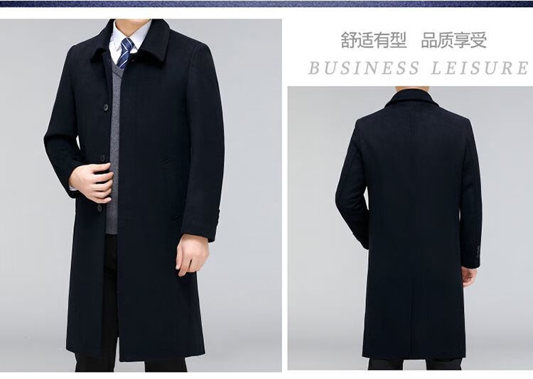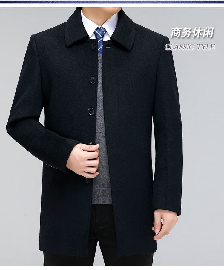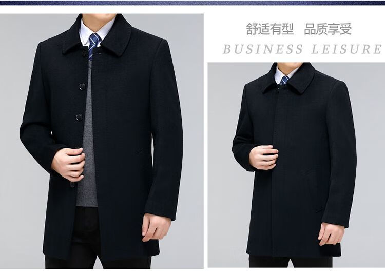 Pierre Cardin cashmere coat for middle-aged and older men, plus velvet and thickening, high-end middle-aged and elderly dad's mid-length woolen woolen winter coat, short navy blue, velvet and thickened lining 180/XL
