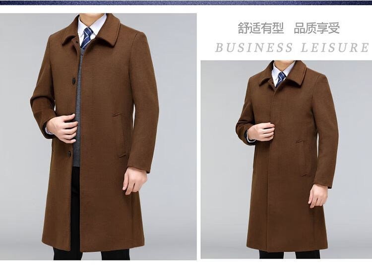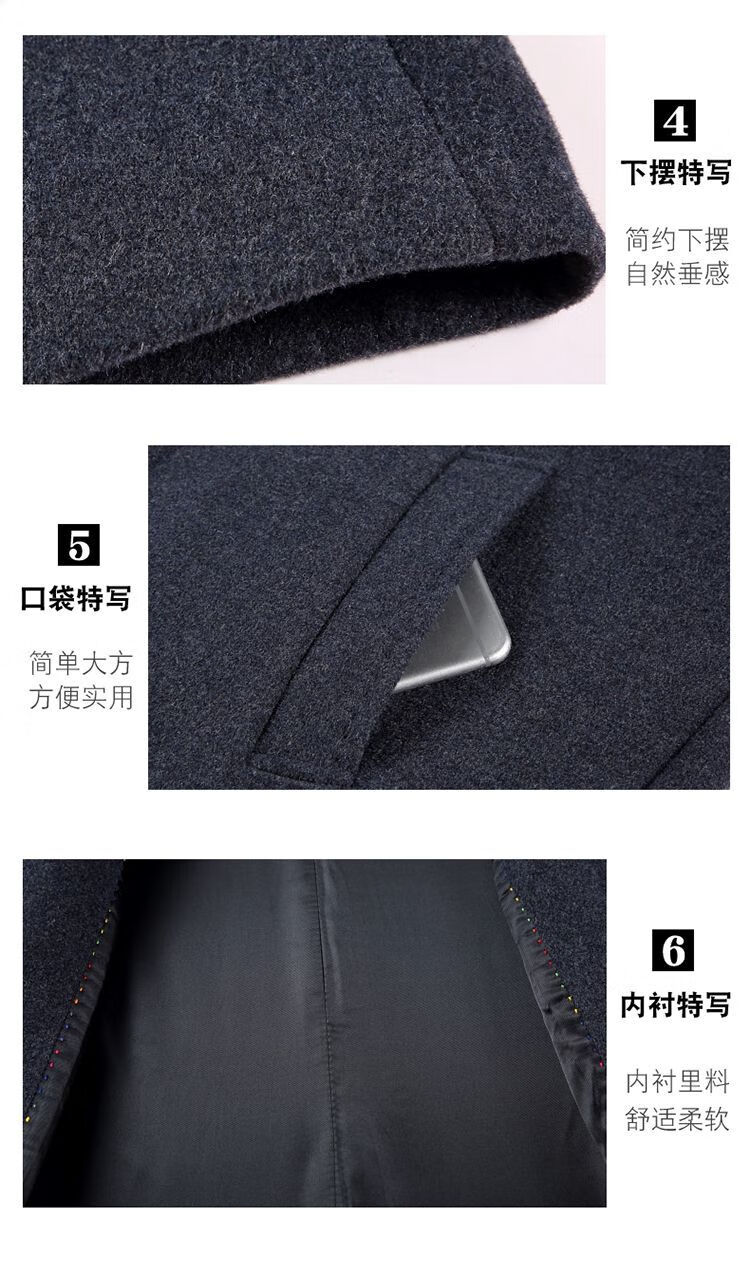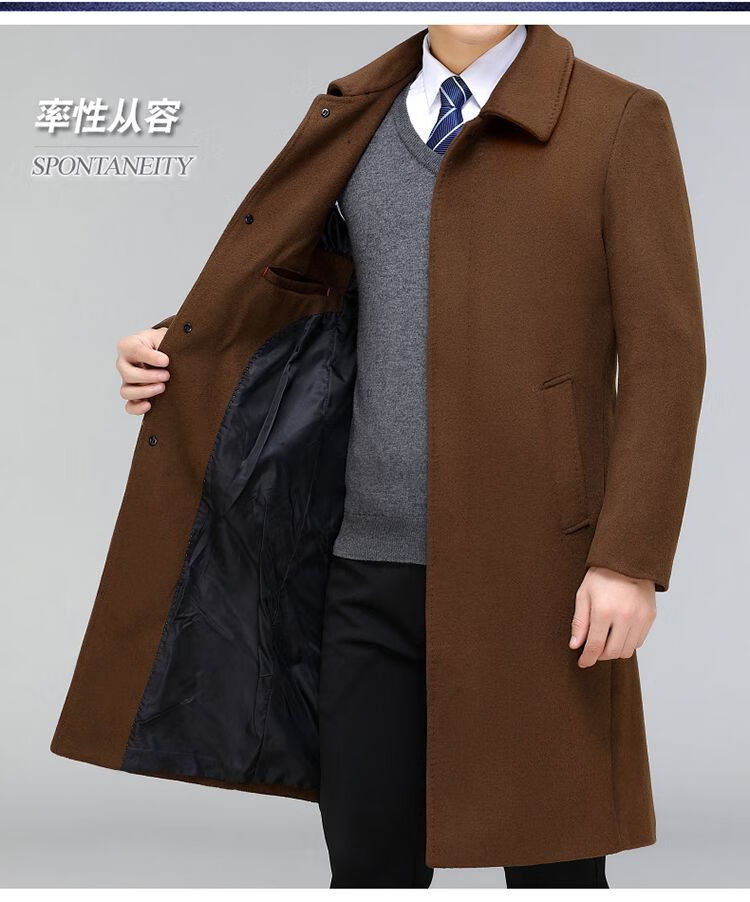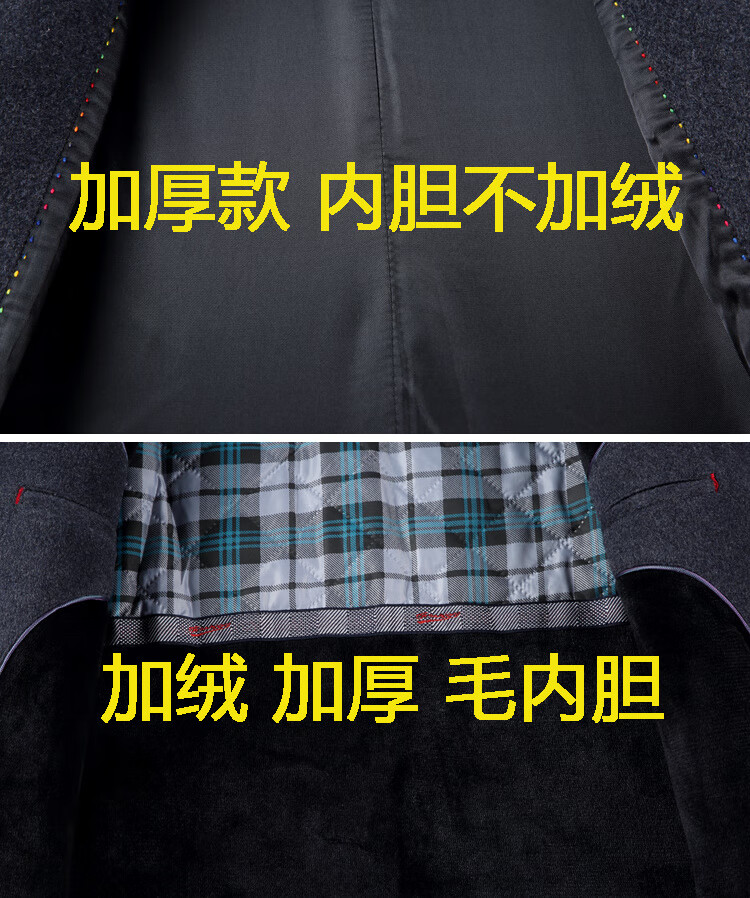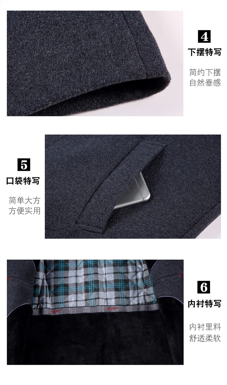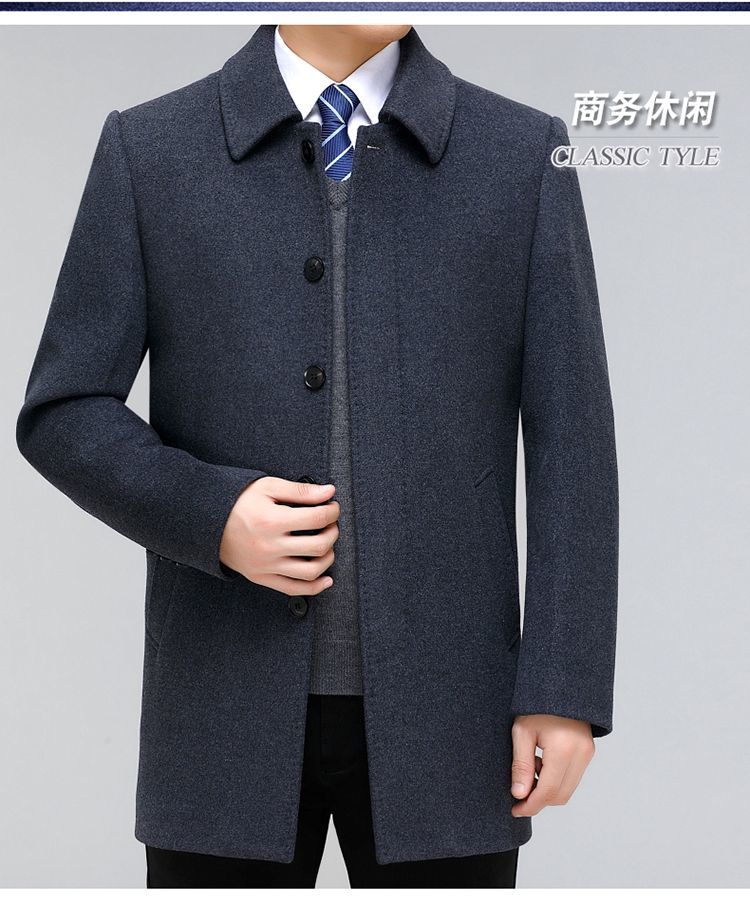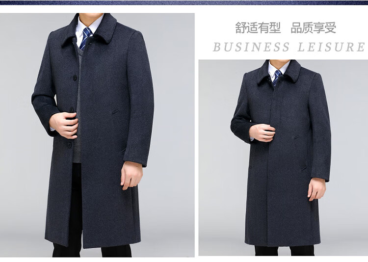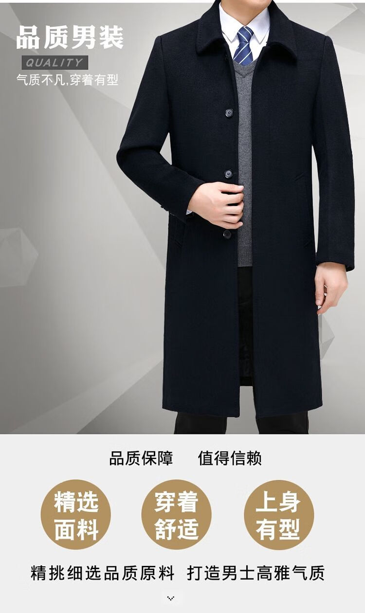 Pierre Cardin cashmere coat for middle-aged and older men, plus velvet and thickening, high-end middle-aged and elderly dad's mid-length woolen woolen winter coat, short navy blue, velvet and thickened lining 180/XL