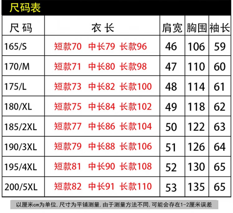 China (cm) 165 / 88-90 170 / 96-98 175 / 108-110 180 / 118-122 185 / 126-130
