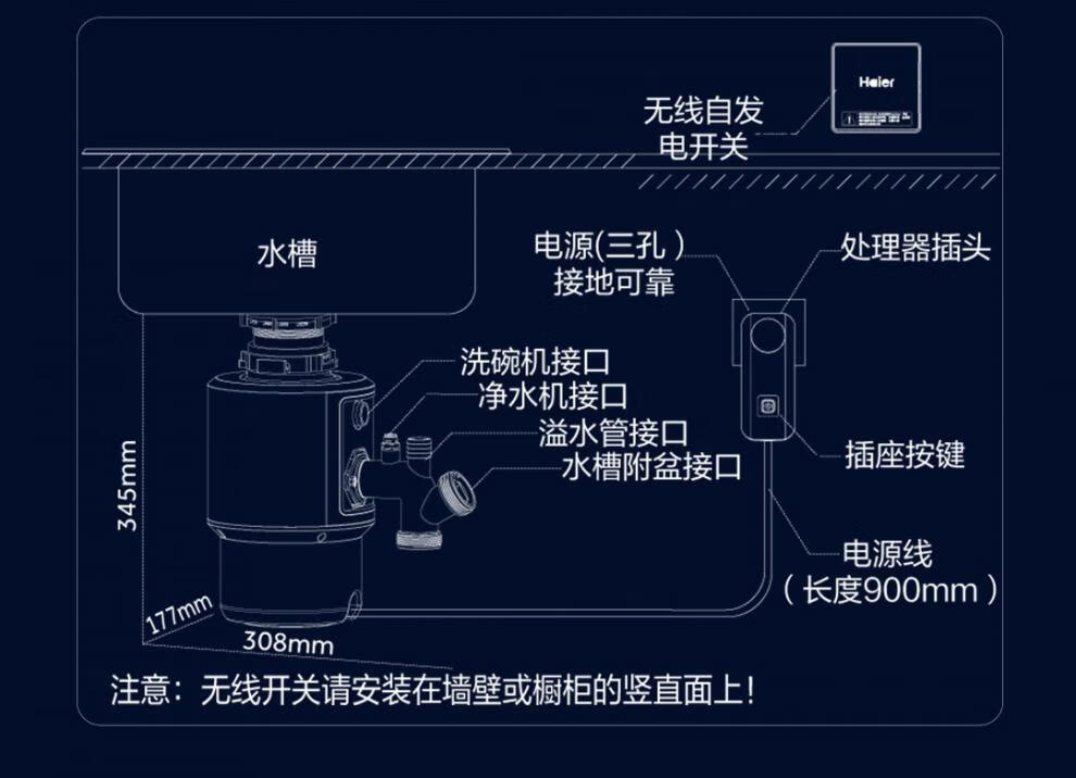 Haier food waste disposer kitchen household wireless dining sink grinder LD660-Pro LD660-Pro